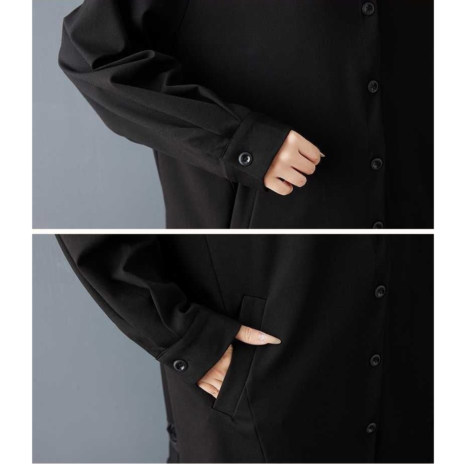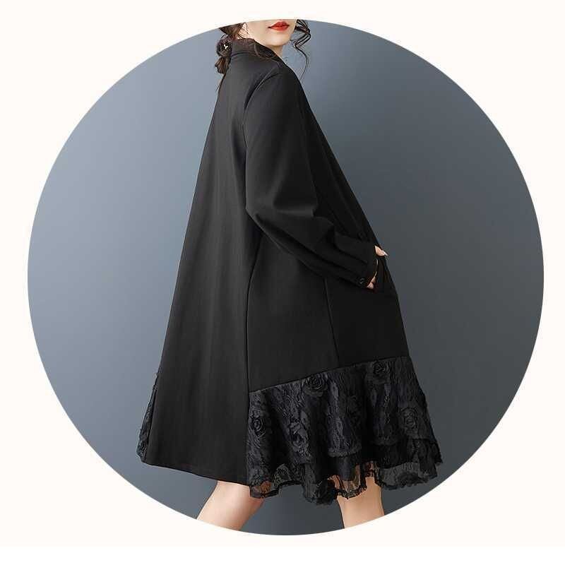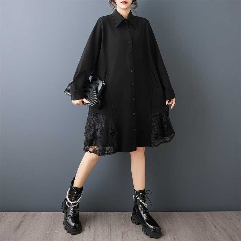 BLACK LACE STITCHED MINI SHIRT DRESS 1color M-15831