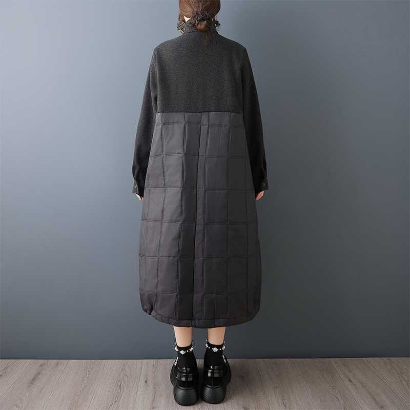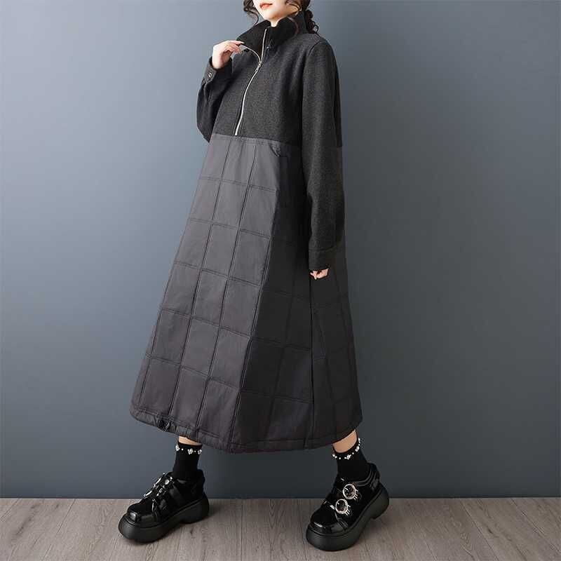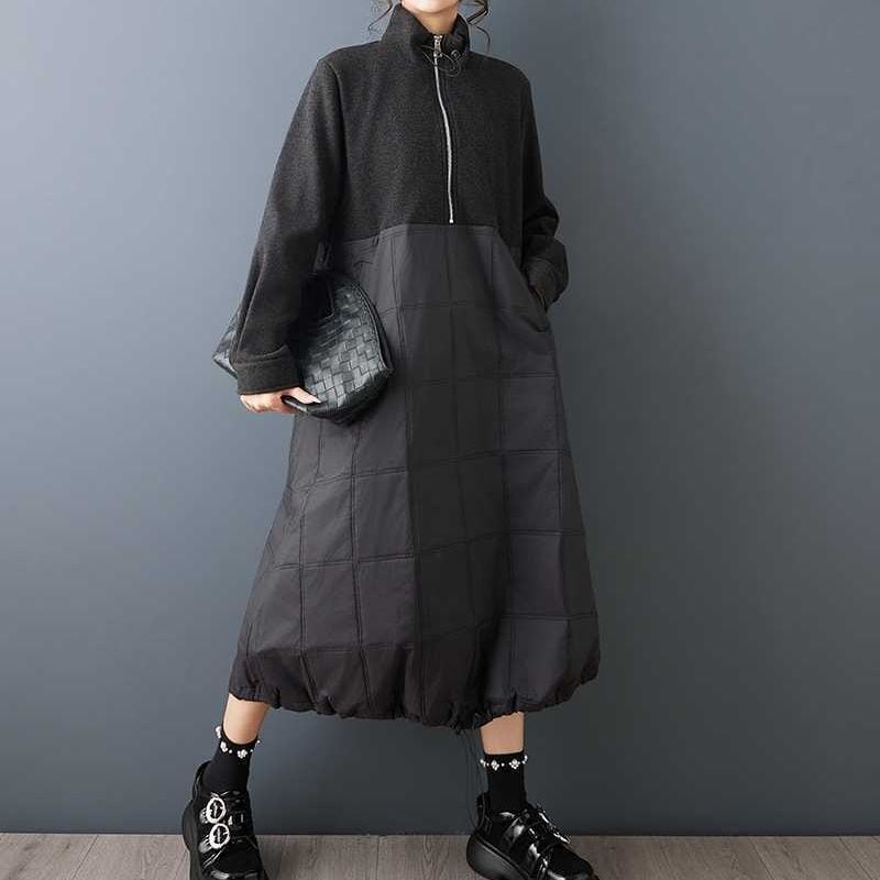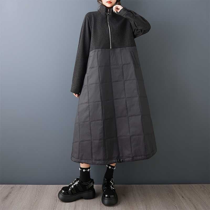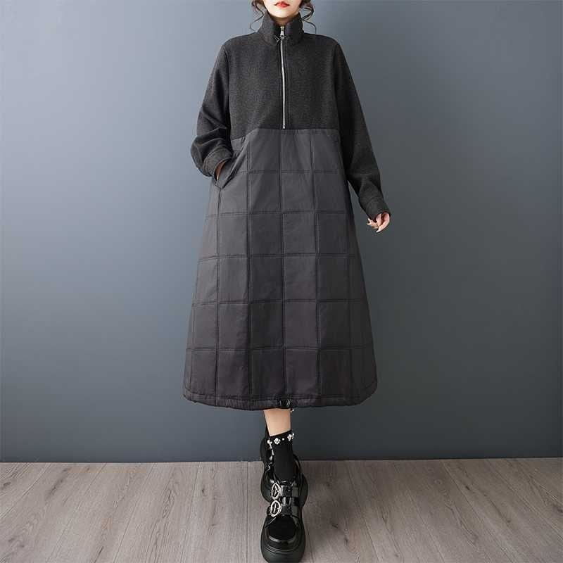 STAND COLLAR HALFZIP QUILTING STITCH PULLOVER WARM DRESS 1color M-15843