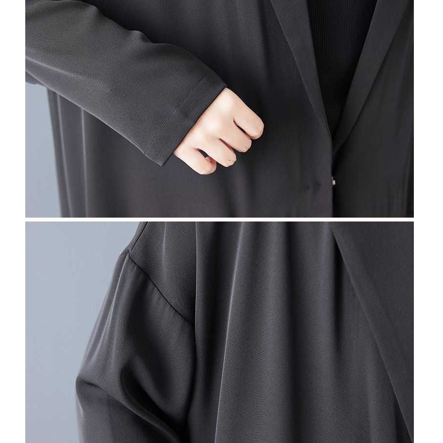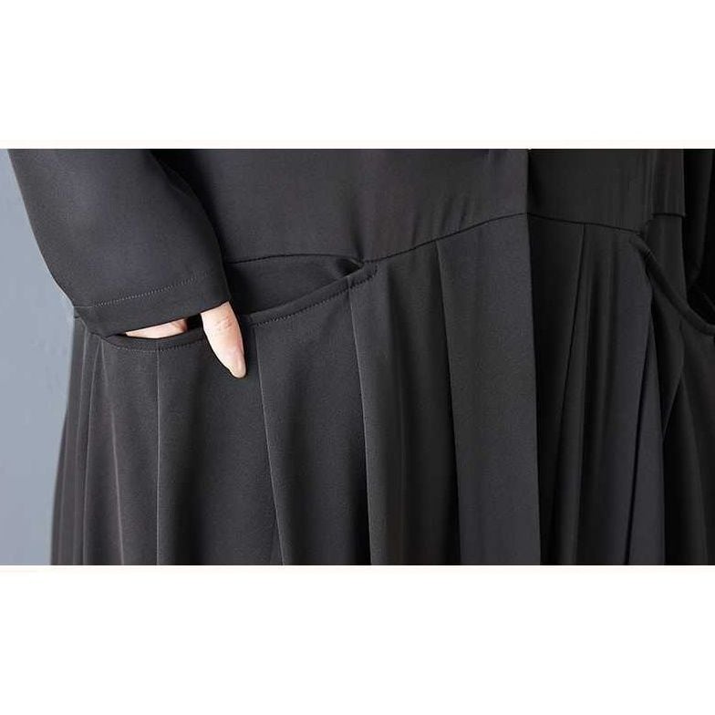 BLACK LAPELED V-NECK A-LINE MAXI COAT 1color M-15847