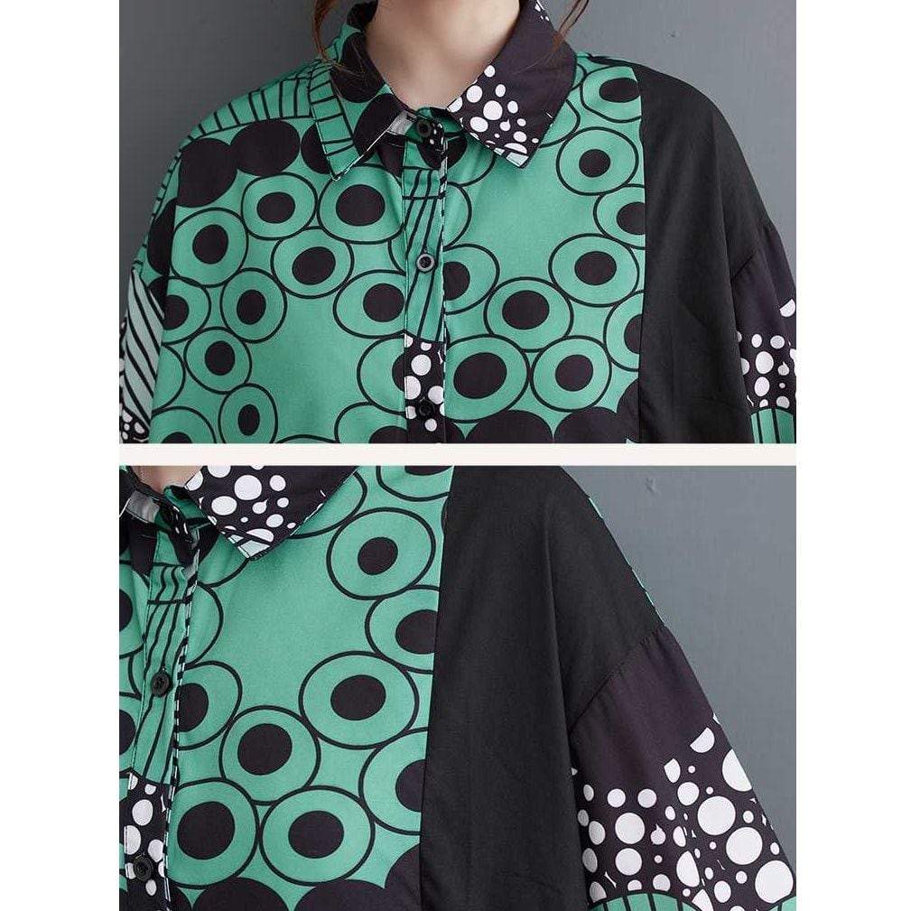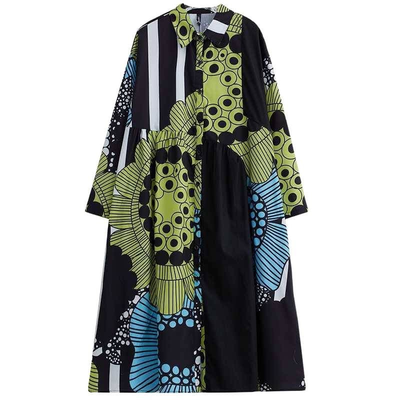 PRINT A-LINE MIDI DESIGN SHIRT DRESS 2colors M-15850