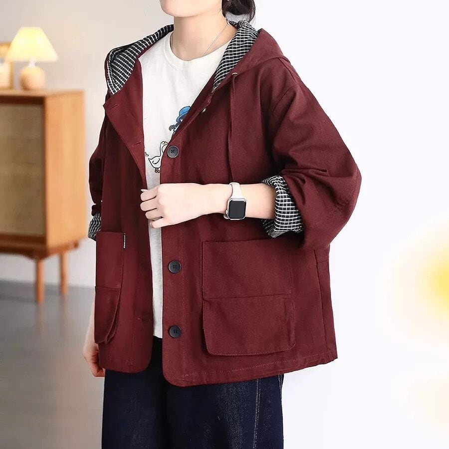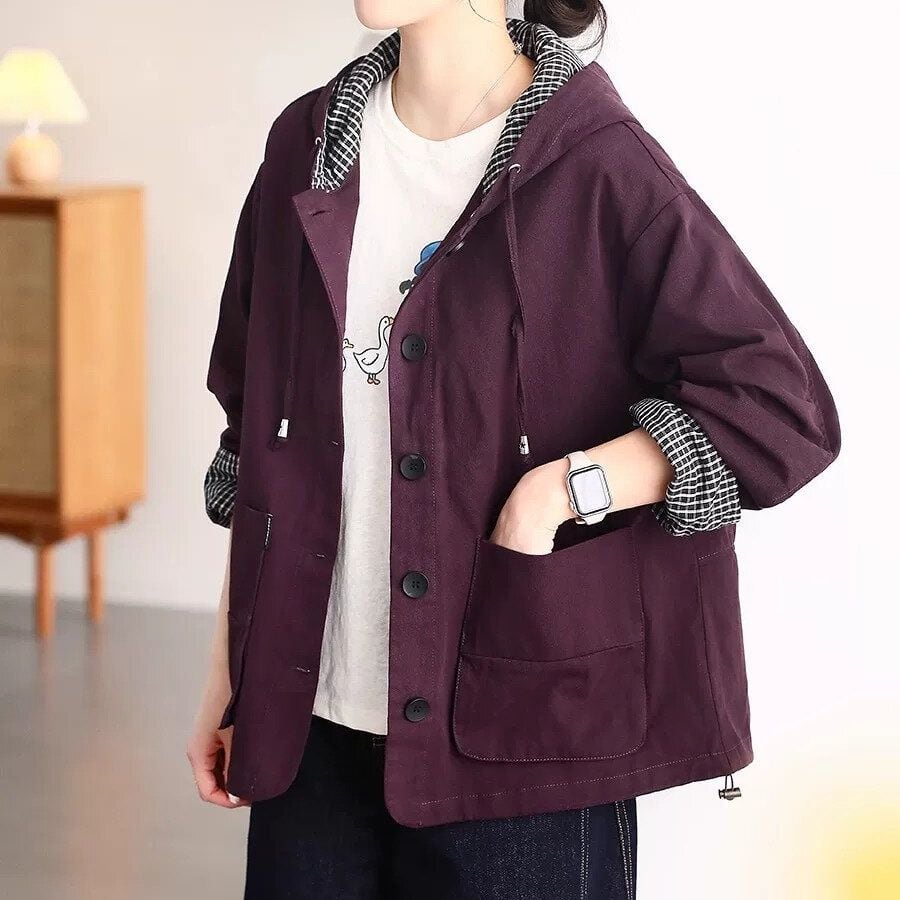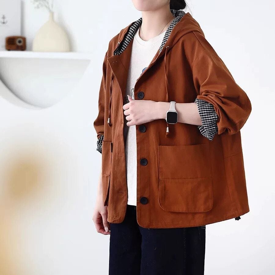 フードの内側やロールアップした袖口からのぞくチェック柄のライニングがアクセントになった、フード付き・長袖・ショート丈のカジュアルジャケットです。フードにはドローストリング、裾にはドローコードが付いています。シンプルなデザインで、コーディネートしやすいです。色は全4色から選べます。 SIZE:※測り方によって2-3cmの差が生じる場合がございます。 【M】バスト120cm 肩幅50cm 袖丈56cm 着丈66cm 【L】バスト124cm 肩幅51cm 袖丈57cm 着丈67cm 【XL】バスト128cm 肩幅52cm 袖丈58cm 着丈68cm 【2XL】バスト132cm 肩幅53cm 袖丈59cm 着丈69cm COLOR:Orange、Clairet、Purple、Black 素材:ポリエステル、その他 モデル着用サイズ:L モデル情報:身長161cm 体重49kg STYLE CALENDAR:春◎ 夏〇 秋◎ 冬〇 お届けについて こちらの商品は海外店舗より直接発送となる為、 ご決済から到着までは、多くの場合【10日-2週間前後】でお届けしております。 ※在庫状況や輸送の混雑により、4週間前後かかる場合がございます。 注意事項 ・商品在庫切れにより注文キャンセルとさせていただく恐れもございますので、予めご了承くださいませ。 ・仕入れ工場を変えることがあるため、記載サイズと若干異なる場合がございます。 ・商品の色味は、お手持ちのスマートフォンの画面によって実物と若干異なる場合がございます。 ・イメージ違いやサイズ交換等、お客さまご都合による交換・返品はご遠慮ください。 送料について 全国一律580円(沖縄県は1,500円) ※10,000円以上のご注文で沖縄県を含む全国送料無料。 お支払い方法について ・クレジットカード決済(VISA/Mastercard/JCB/アメリカン・エクスプレス/ Diners Club) ・コンビニ決済/Pay-easy ※前払いのお支払い方法 ・Pay ID あと払い(コンビニ払い、口座振替) ※あと払いのお支払い方法 ・キャリア決済(d払い/au PAY(auかんたん決済)/ソフトバンク・ワイモバイルまとめて支払い) 管理番号:M-15879