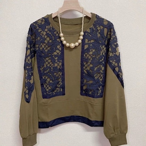 コントラストカラーのレースのスティッチがお洒落な、ラウンドネックのスウェットシャツです。レースと同じカラーの裾には、ドローコードが付いてシルエットを調節できます。着心地が良いガーリーな印象のカジュアルアイテムです。色は全3色から選べます。