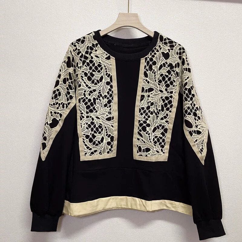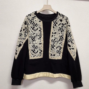 LACE STITCHED DRAWCORD HEM DESIGN SWEAT SHIRT 3colors M-15882
