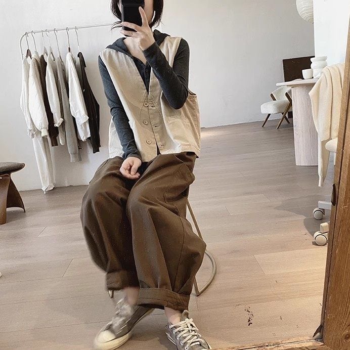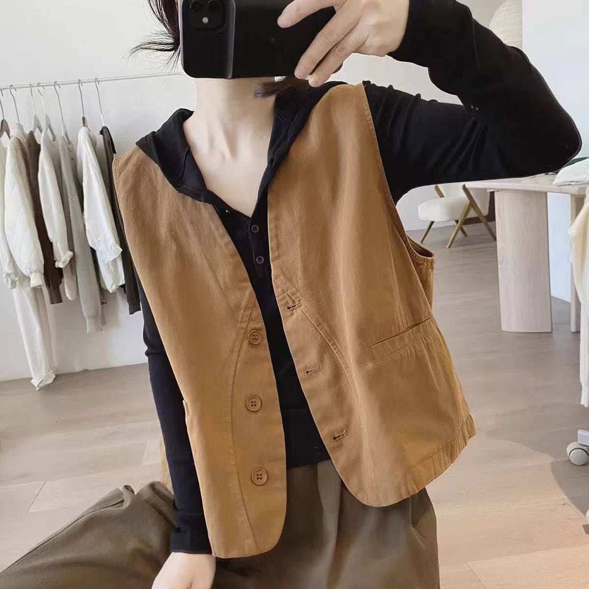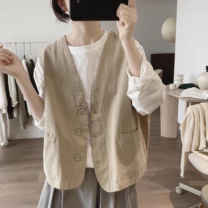 単色のシンプルなデザインで合わせやすい、襟なしVネックのコットンベストジャケットです。ボタンラインを囲むような曲線のスティッチがキュートな、春や秋のファッションにぴったりのカジュアルアイテムです。色は全4色から選べます。 SIZE:※測り方によって2-3cmの差が生じる場合がございます。 【M】バスト114cm 肩幅39cm 着丈54cm 【L】バスト118cm 肩幅40cm 着丈55cm 【XL】バスト122cm 肩幅41cm 着丈56cm 【2XL】バスト126cm 肩幅42cm 着丈57cm COLOR:White、Beige、Light Khaki、Navy 素材:ポリエステル、その他 モデル着用サイズ:L モデル情報:身長161cm 体重49kg STYLE CALENDAR:春◎ 夏〇 秋◎ 冬〇 お届けについて こちらの商品は海外店舗より直接発送となる為、 ご決済から到着までは、多くの場合【10日-2週間前後】でお届けしております。 ※在庫状況や輸送の混雑により、4週間前後かかる場合がございます。 注意事項 ・商品在庫切れにより注文キャンセルとさせていただく恐れもございますので、予めご了承くださいませ。 ・仕入れ工場を変えることがあるため、記載サイズと若干異なる場合がございます。 ・商品の色味は、お手持ちのスマートフォンの画面によって実物と若干異なる場合がございます。 ・イメージ違いやサイズ交換等、お客さまご都合による交換・返品はご遠慮ください。 送料について 全国一律580円(沖縄県は1,500円) ※10,000円以上のご注文で沖縄県を含む全国送料無料。 お支払い方法について ・クレジットカード決済(VISA/Mastercard/JCB/アメリカン・エクスプレス/ Diners Club) ・コンビニ決済/Pay-easy ※前払いのお支払い方法 ・Pay ID あと払い(コンビニ払い、口座振替) ※あと払いのお支払い方法 ・キャリア決済(d払い/au PAY(auかんたん決済)/ソフトバンク・ワイモバイルまとめて支払い) 管理番号:M-15883