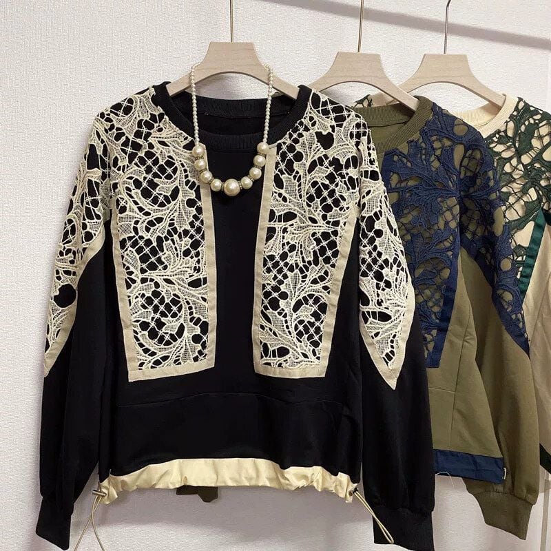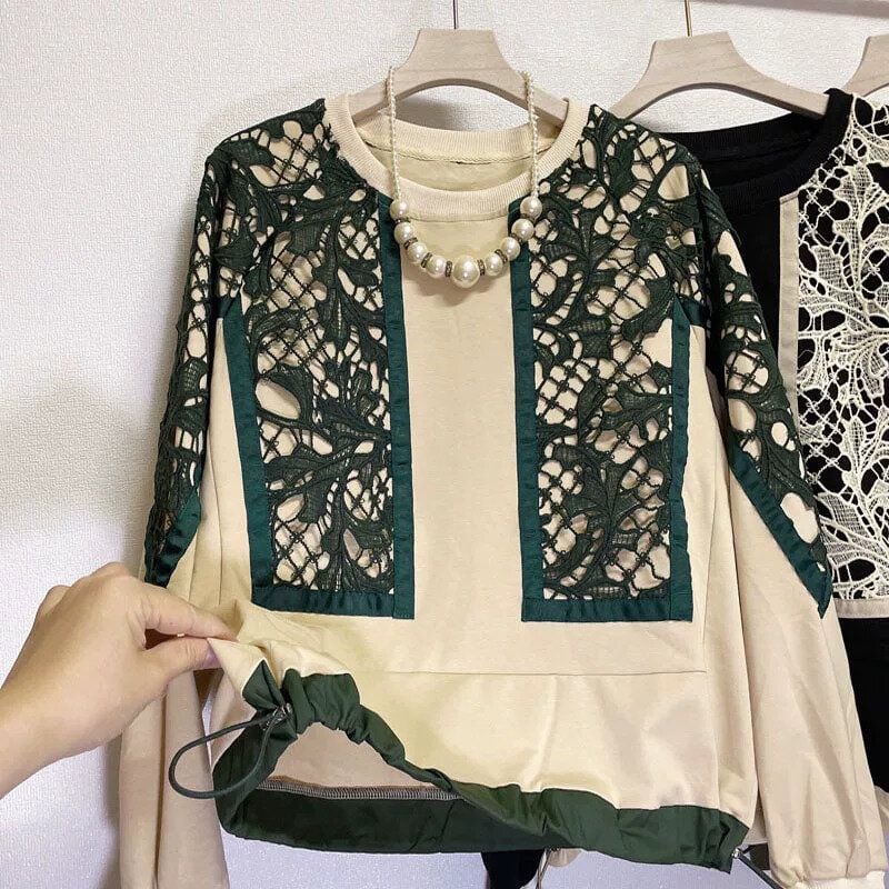LACE STITCHED DRAWCORD HEM DESIGN SWEAT SHIRT 8colors M-15887