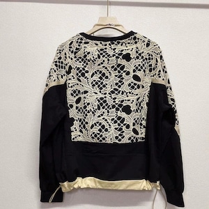 コントラストカラーのレースのスティッチがお洒落な、ラウンドネックのスウェットシャツです。裾にはドローコードが付いて、シルエットを調節できます。着心地が良いガーリーな印象のカジュアルアイテムです。デザイン・色は全8色から選べます。