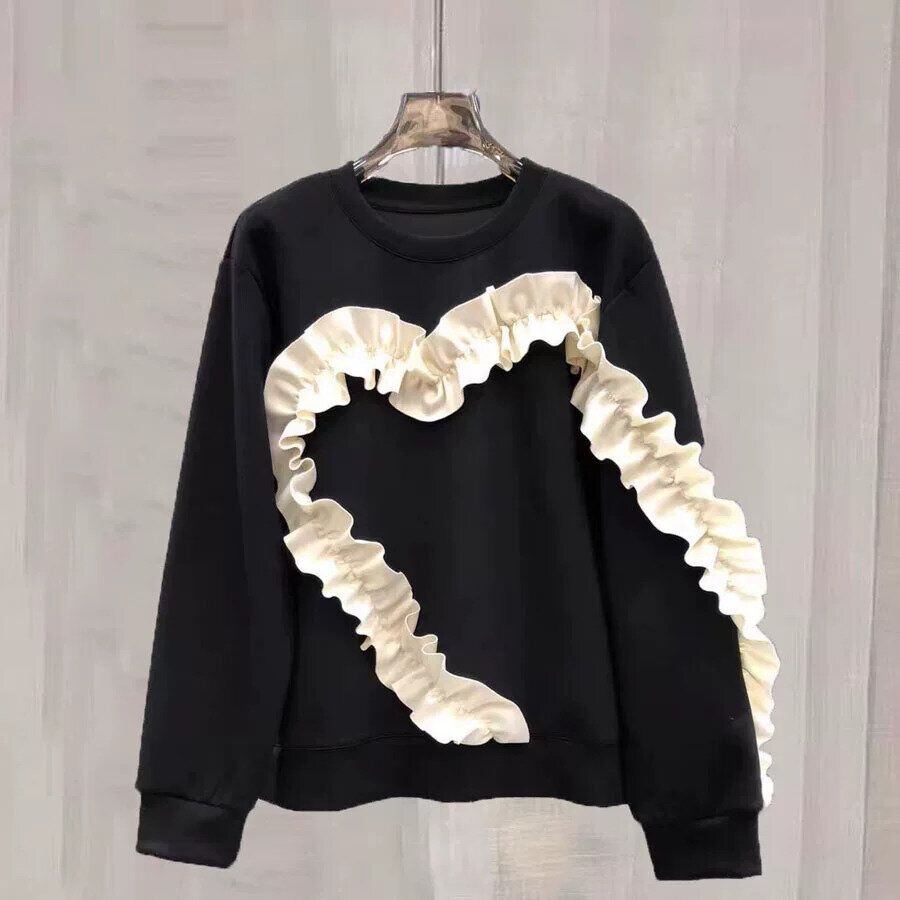 FRILL LINED ROUND NECK SWEAT SHIRT 3colors M-15893