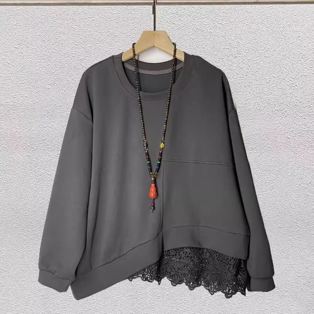 斜めの裾にスティッチされたちらりと覗くレースがキュートな、ラウンドネックのスウェットシャツです。ドロップショルダーのゆったりとしたシルエットと単色デザインで合わせやすい、着心地の良いカジュアルアイテムです。色は5色から選べます。 SIZE:※測り方によって2-3cmの差が生じる場合がございます。 【FREE SIZE】バスト120cm 着丈61cm COLOR:Light Purple、Purple、Black、Navy、Gray 素材:ポリエステル、その他 STYLE CALENDAR:春〇 夏〇 秋◎ 冬〇 お届けについて こちらの商品は海外店舗より直接発送となる為、 ご決済から到着までは、多くの場合【10日-2週間前後】でお届けしております。 ※在庫状況や輸送の混雑により、4週間前後かかる場合がございます。 注意事項 ・商品在庫切れにより注文キャンセルとさせていただく恐れもございますので、予めご了承くださいませ。 ・仕入れ工場を変えることがあるため、記載サイズと若干異なる場合がございます。 ・商品の色味は、お手持ちのスマートフォンの画面によって実物と若干異なる場合がございます。 ・イメージ違いやサイズ交換等、お客さまご都合による交換・返品はご遠慮ください。 送料について 全国一律580円(沖縄県は1,500円) ※10,000円以上のご注文で沖縄県を含む全国送料無料。 お支払い方法について ・クレジットカード決済(VISA/Mastercard/JCB/アメリカン・エクスプレス/ Diners Club) ・コンビニ決済/Pay-easy ※前払いのお支払い方法 ・Pay ID あと払い(コンビニ払い、口座振替) ※あと払いのお支払い方法 ・キャリア決済(d払い/au PAY(auかんたん決済)/ソフトバンク・ワイモバイルまとめて支払い) 管理番号:M-15913