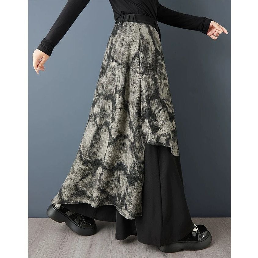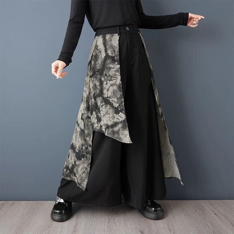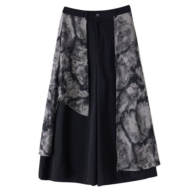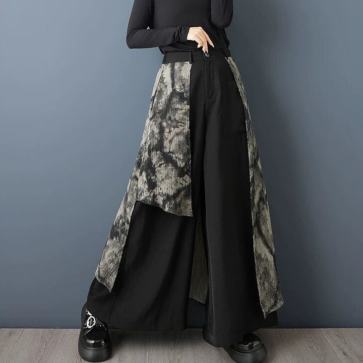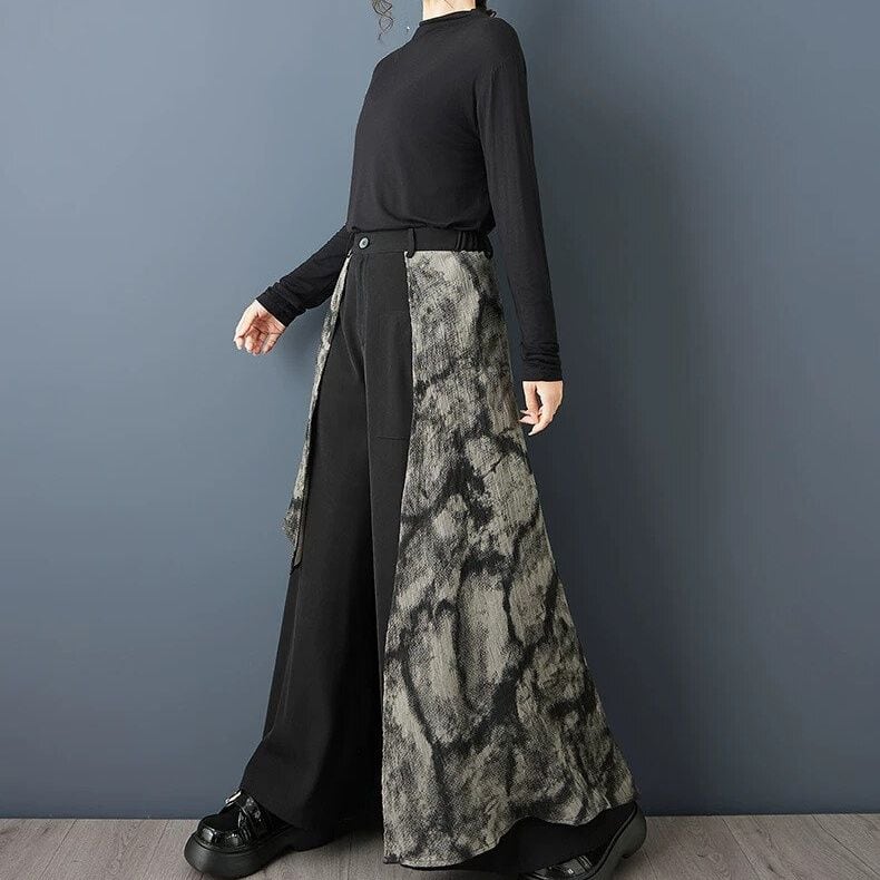 ASYMMETRIC PRINT FLAP WIDE LEG PANTS 1color M-15948