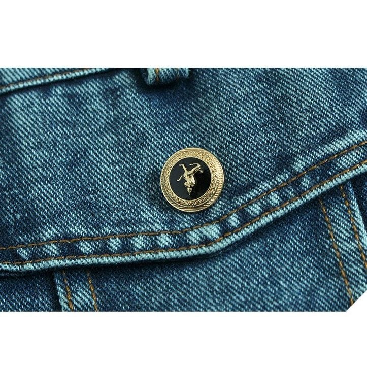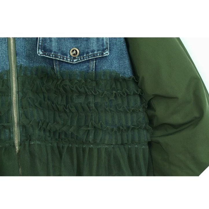 DENIM STITCHED MESH FRILL V-NECK FULLZIP DESIGN JACKET 3colors M-15961