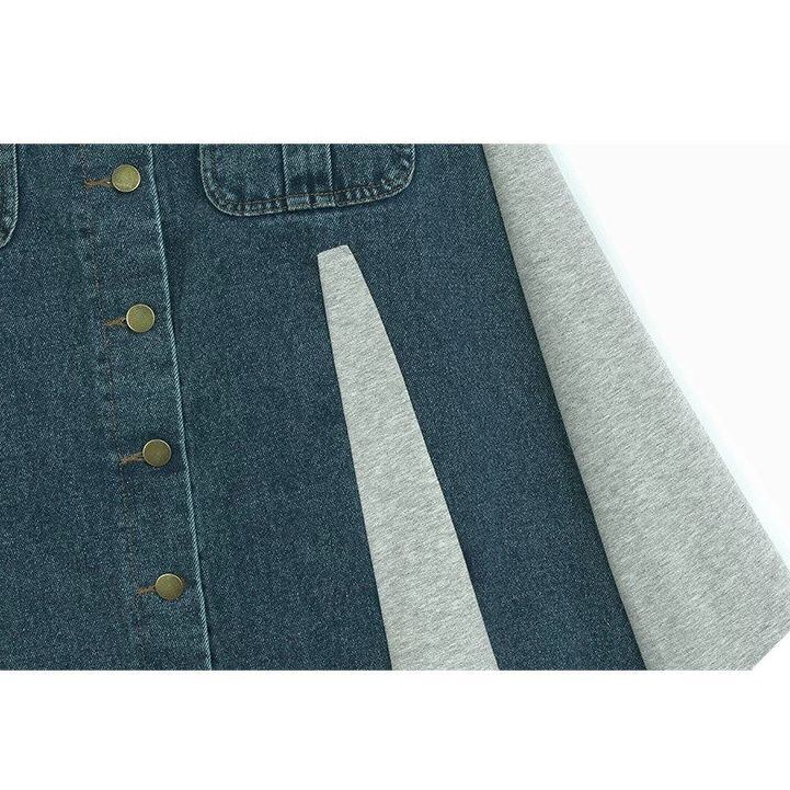 COLOR BLOCK STITCH A-LINE MIDI DENIM SKIRT 3colors M-15962