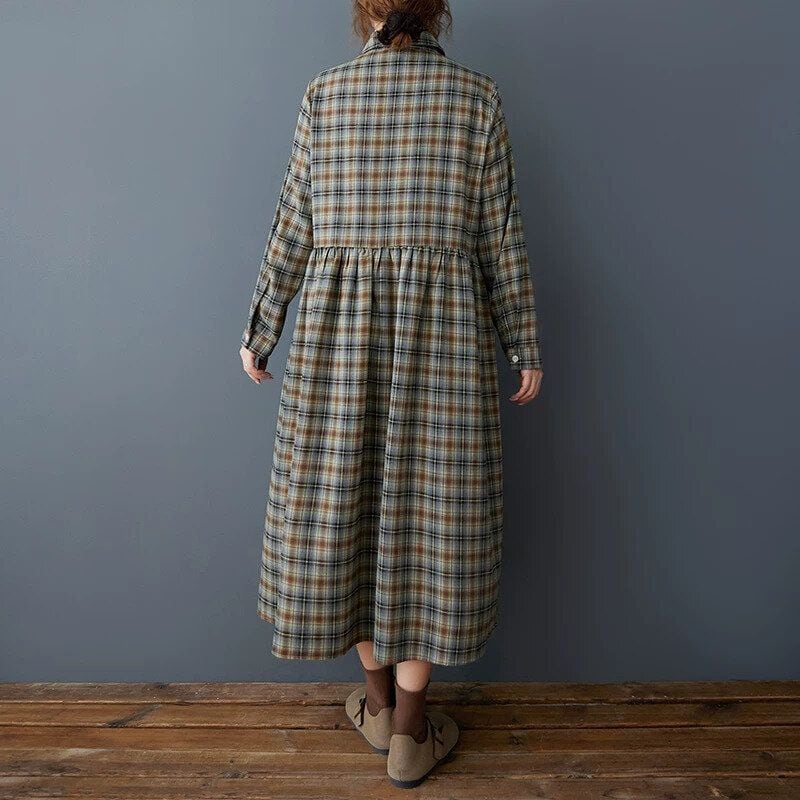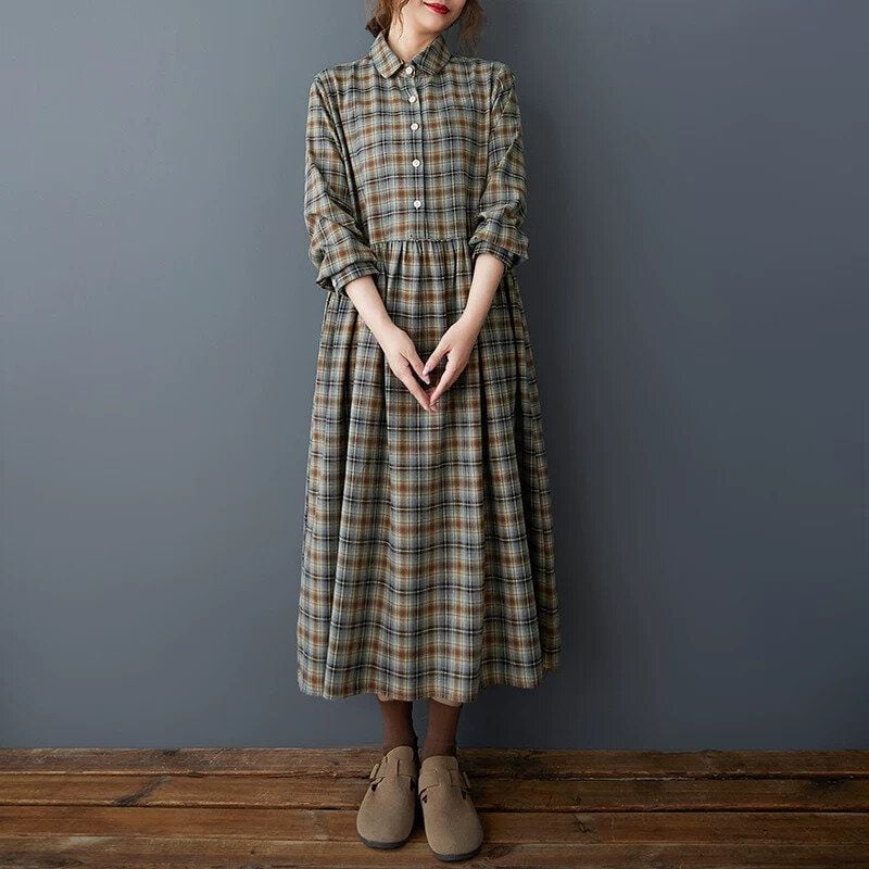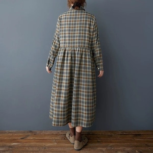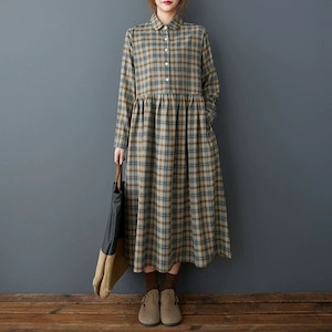 RETRO CHECKERED MIDI SHIRT DRESS 1color M-15973