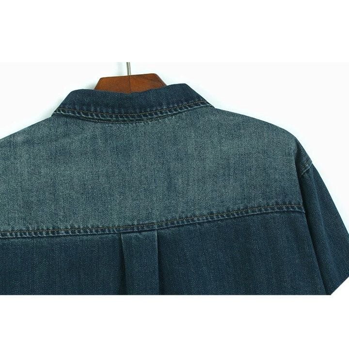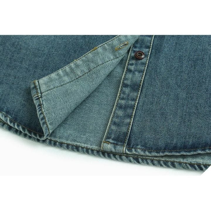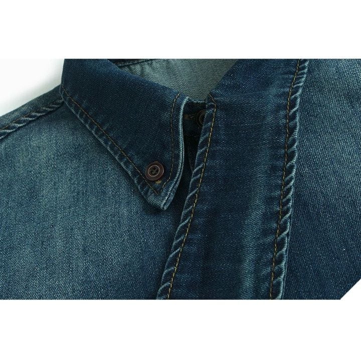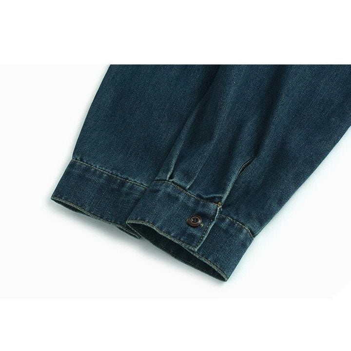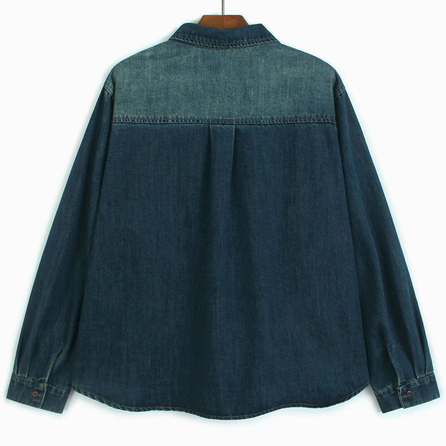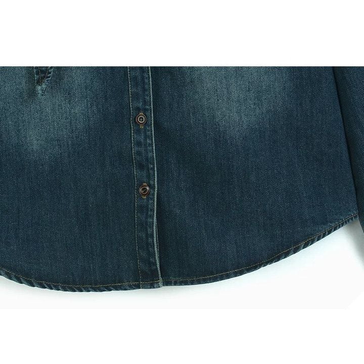 ASYMMETRIC DESIGN COLLAR DENIM SHIRT 2colors M-15979
