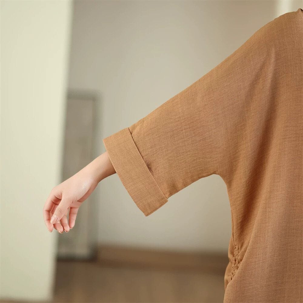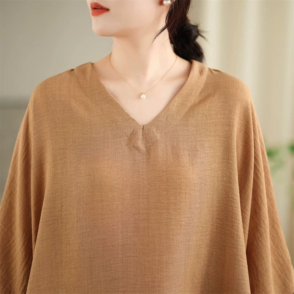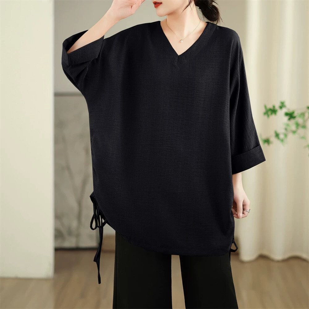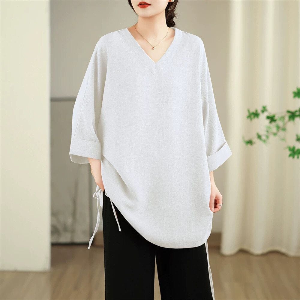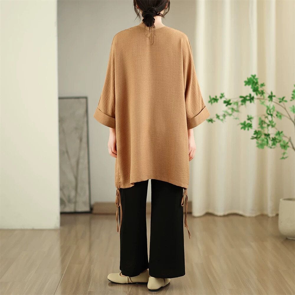 さらりと滑らかな単色素材でできた、Vネック・7分袖・チュニック丈のプルオーバーデザイントップです。ゆったりとしたオーバーサイズで、サイドのドローストリングでシルエットをアレンジできます。色は4色から選べます。 SIZE:※測り方によって2-3cmの差が生じる場合がございます。 【FREE SIZE】バスト140cm 裄丈52cm 着丈80cm COLOR:White、Black,、Blue、Khaki 素材:ポリエステル、その他 モデル着用サイズ:L モデル情報:身長161cm 体重49kg STYLE CALENDAR:春◎ 夏◎ 秋〇 冬△ お届けについて こちらの商品は海外店舗より直接発送となる為、 ご決済から到着までは、多くの場合【10日-2週間前後】でお届けしております。 ※在庫状況や輸送の混雑により、4週間前後かかる場合がございます。 注意事項 ・商品在庫切れにより注文キャンセルとさせていただく恐れもございますので、予めご了承くださいませ。 ・仕入れ工場を変えることがあるため、記載サイズと若干異なる場合がございます。 ・商品の色味は、お手持ちのスマートフォンの画面によって実物と若干異なる場合がございます。 ・イメージ違いやサイズ交換等、お客さまご都合による交換・返品はご遠慮ください。 送料について 全国一律580円(沖縄県は1,500円) ※10,000円以上のご注文で沖縄県を含む全国送料無料。 お支払い方法について ・クレジットカード決済(VISA/Mastercard/JCB/アメリカン・エクスプレス/ Diners Club) ・コンビニ決済/Pay-easy ※前払いのお支払い方法 ・Pay ID あと払い(コンビニ払い、口座振替) ※あと払いのお支払い方法 ・キャリア決済(d払い/au PAY(auかんたん決済)/ソフトバンク・ワイモバイルまとめて支払い) 管理番号:M-15982