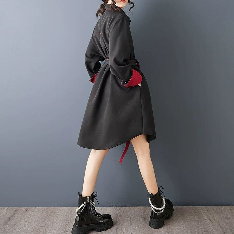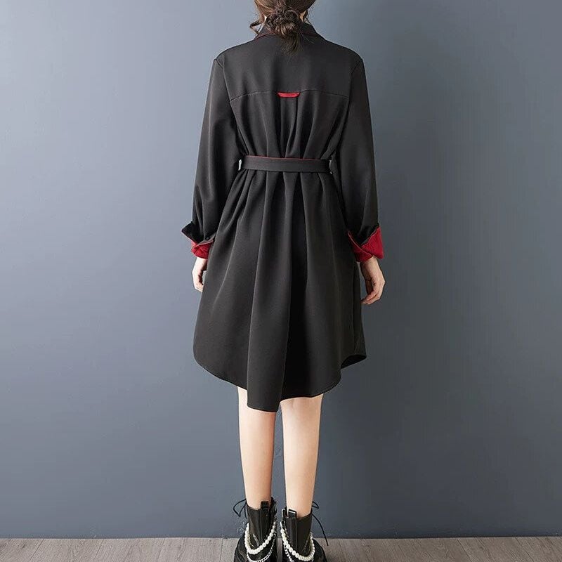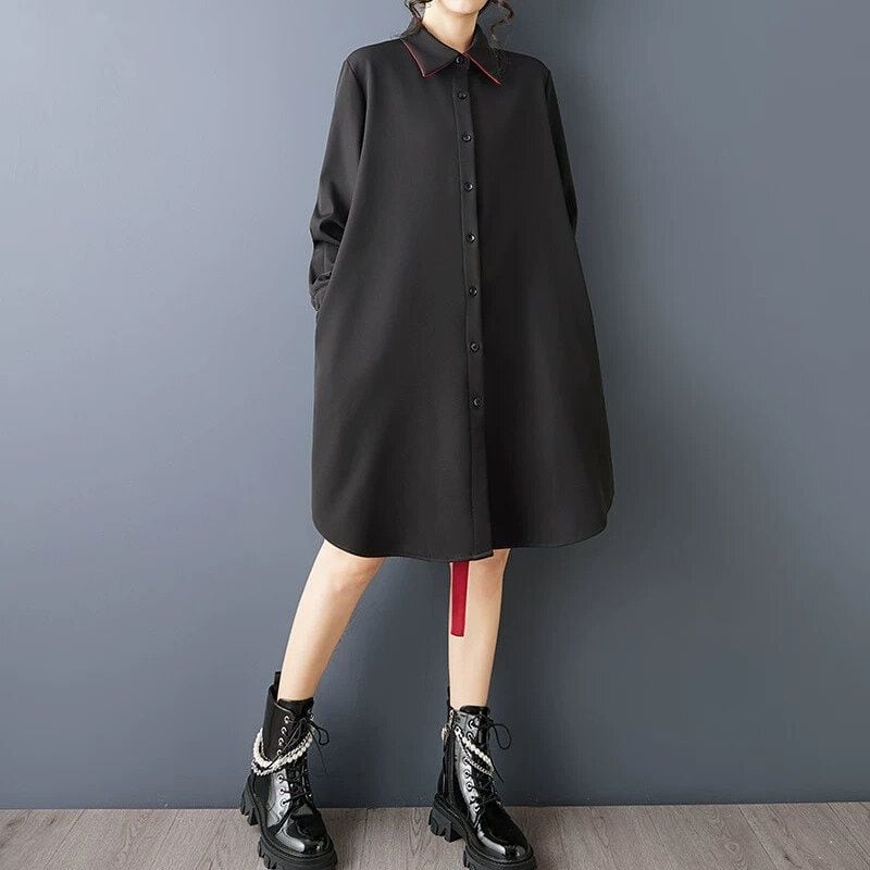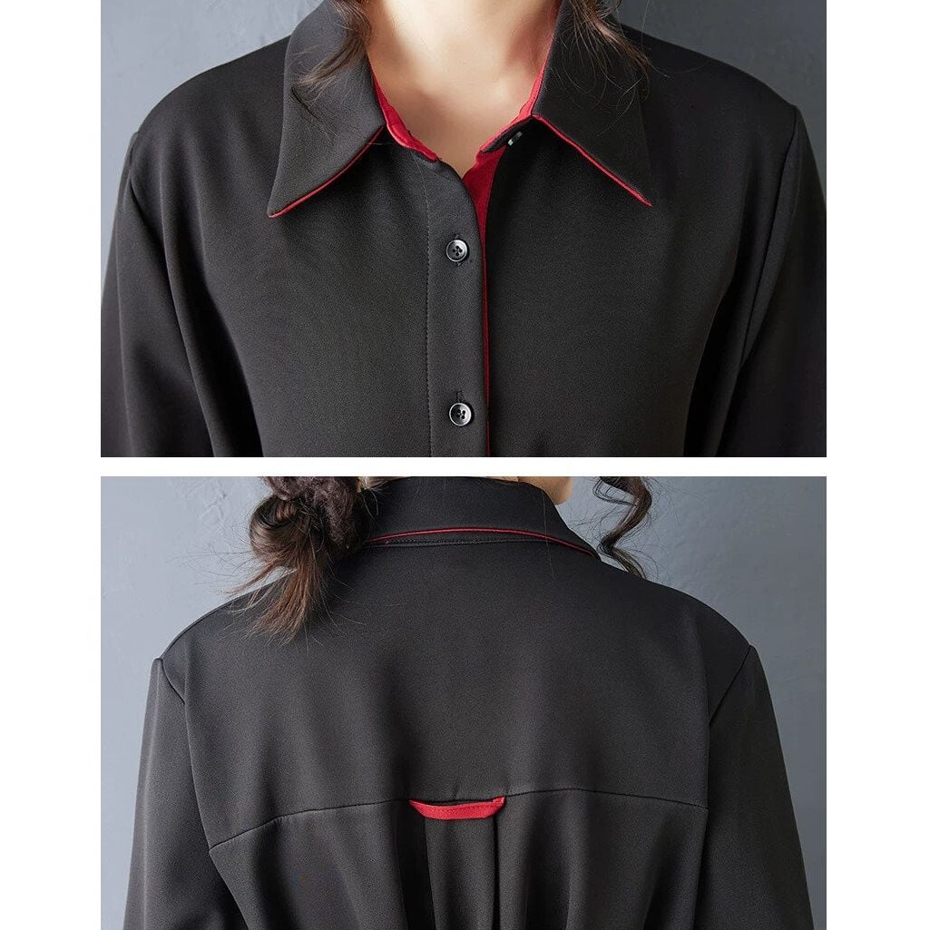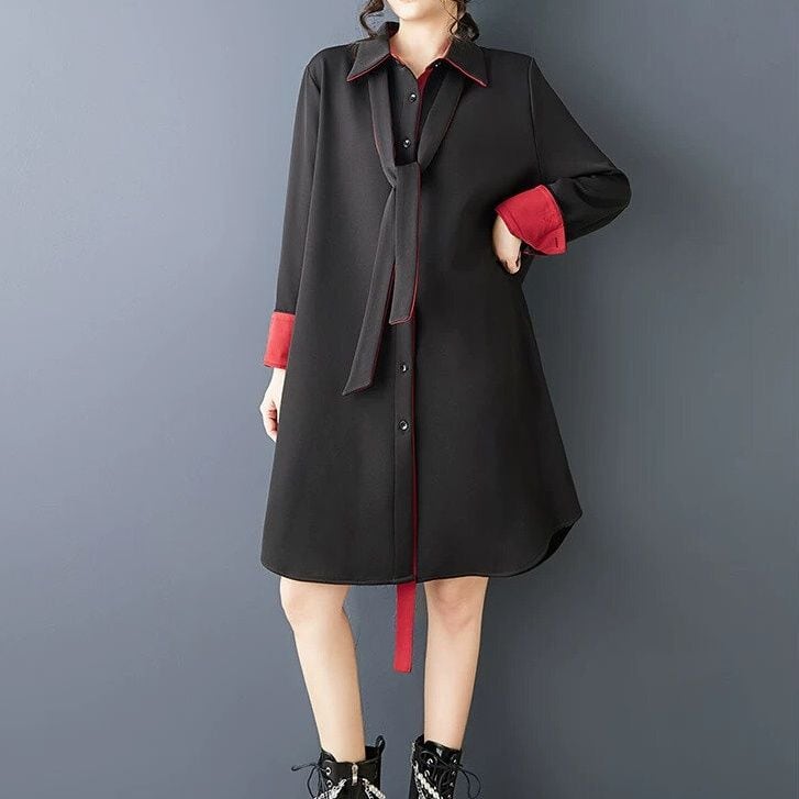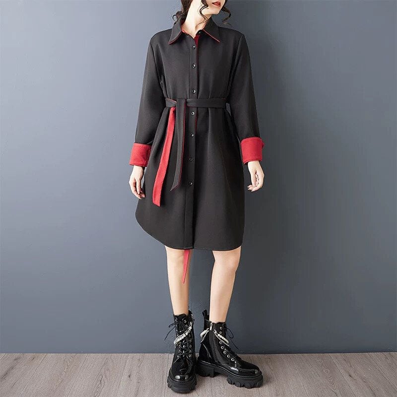 BLACK RED CONTRAST DESIGN MINI SHIRT DRESS 1color M-15984