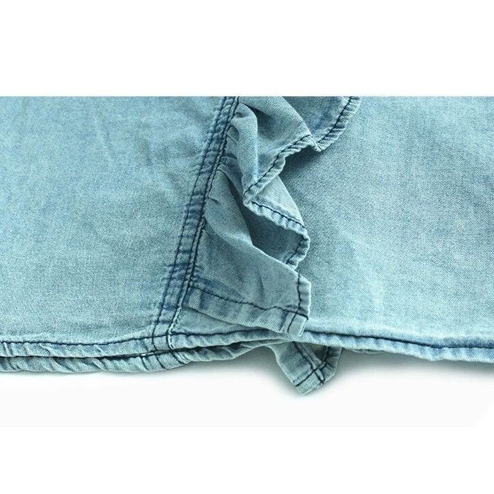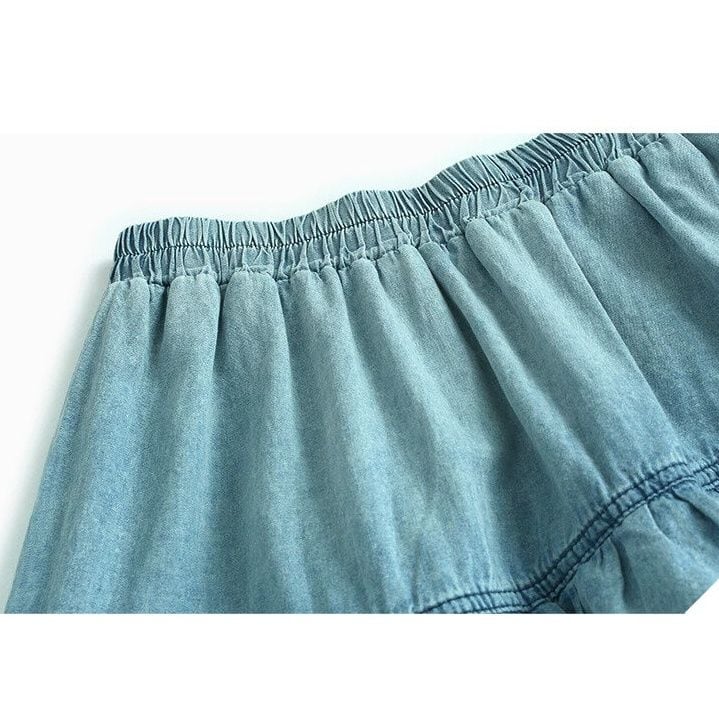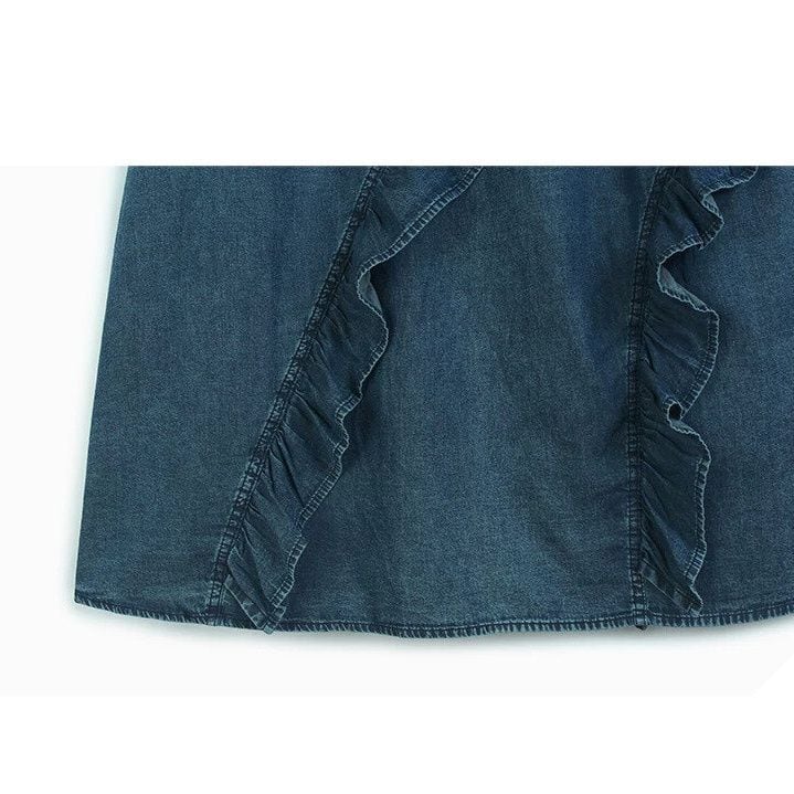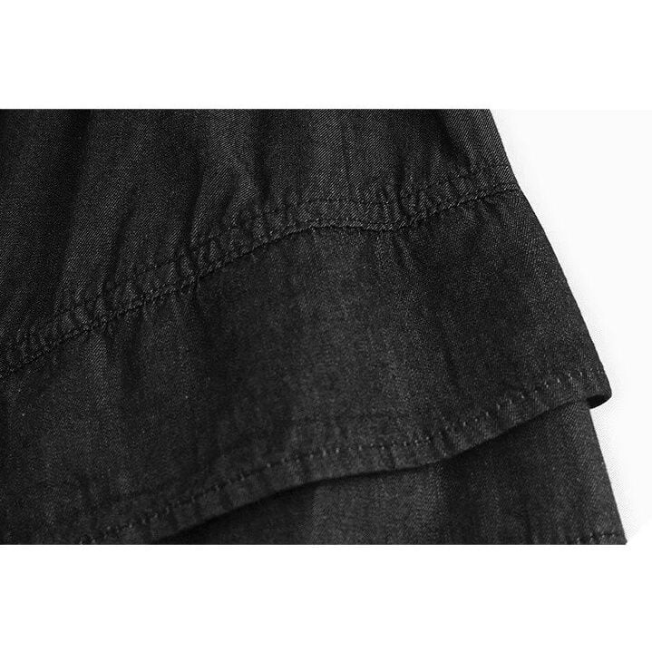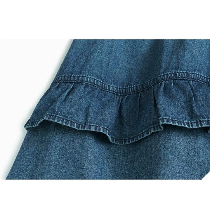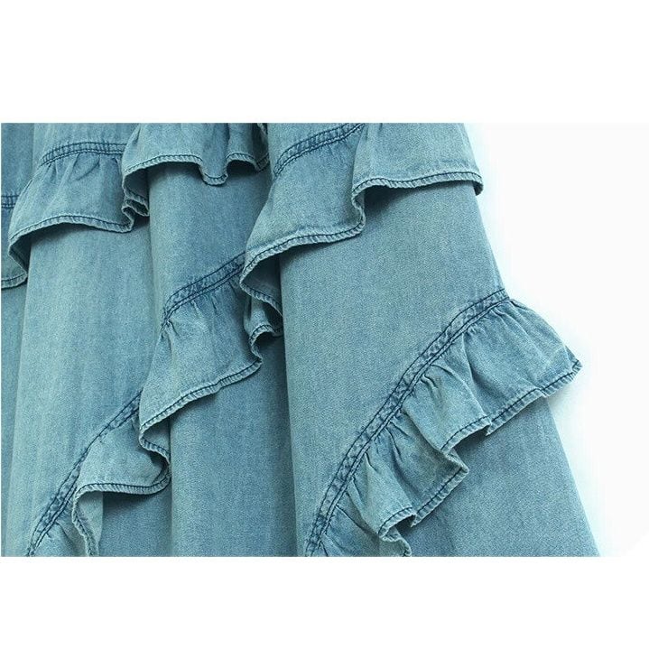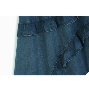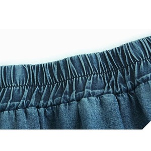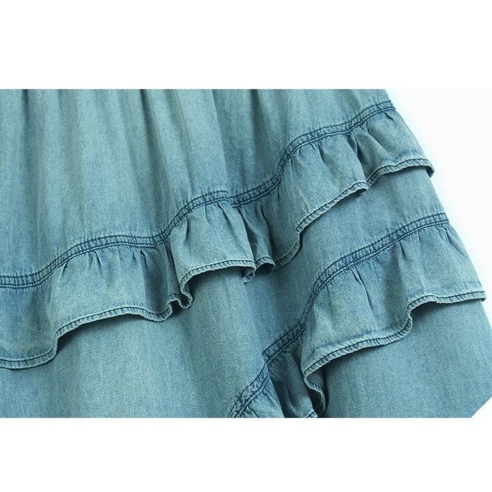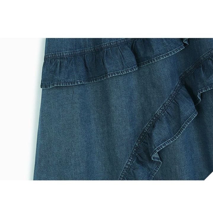ELASTIC WAIST FRILL LINED A-LINE LONG DENIM SKIRT 3colors M-15997
