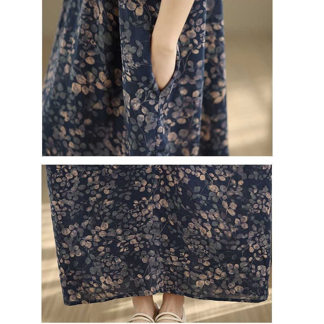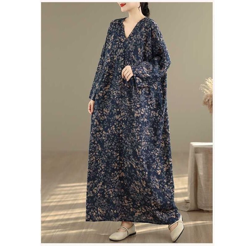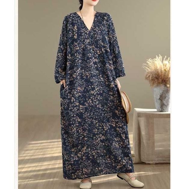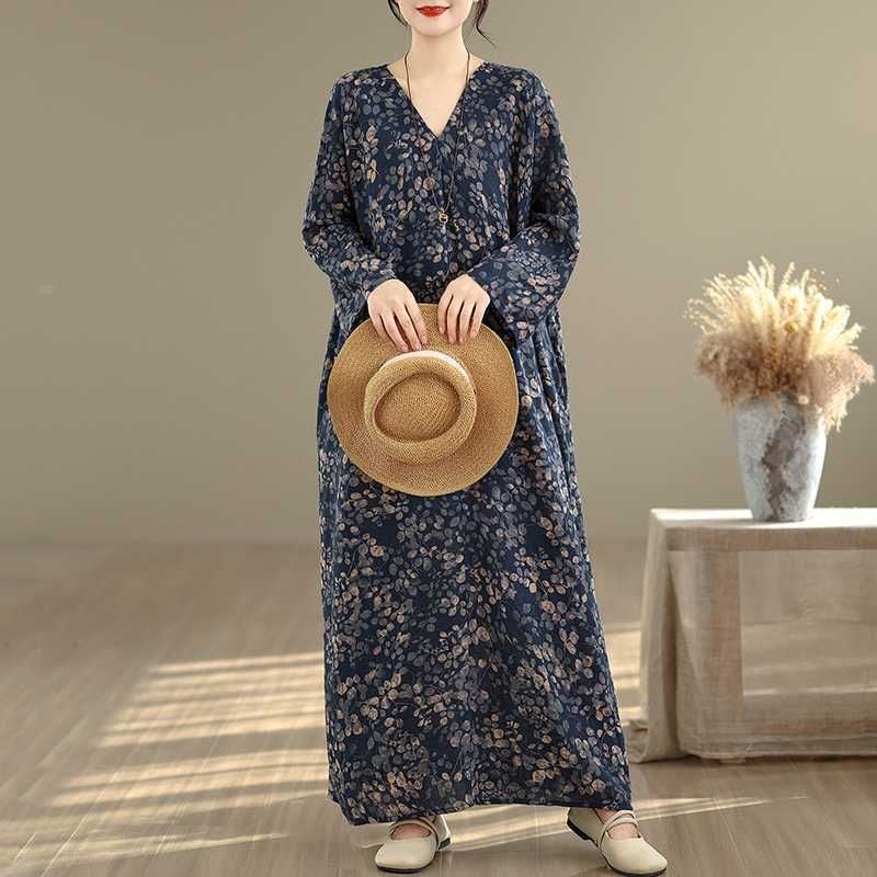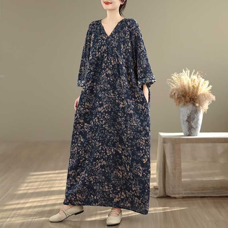 BOTANICAL PRINT V-NECK MAXI PULLOVER DRESS 1color M-16029