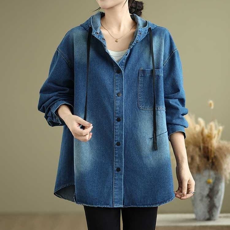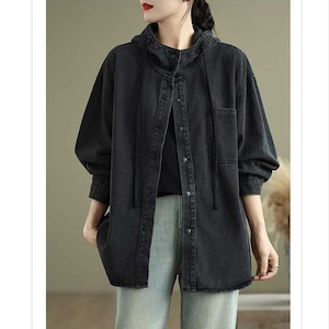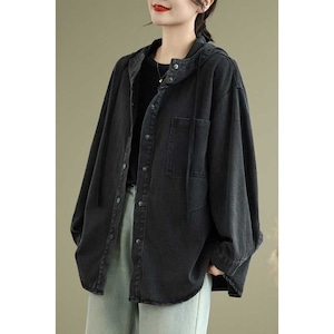 HOODED SNAP BUTTON DENIM SHIRT JACKET 2colors M-16053
