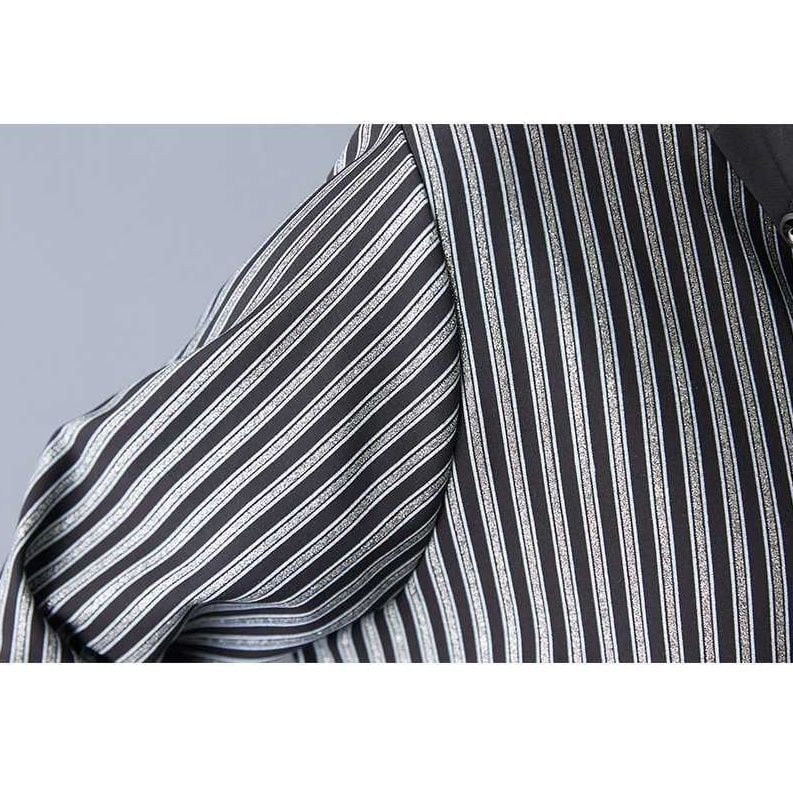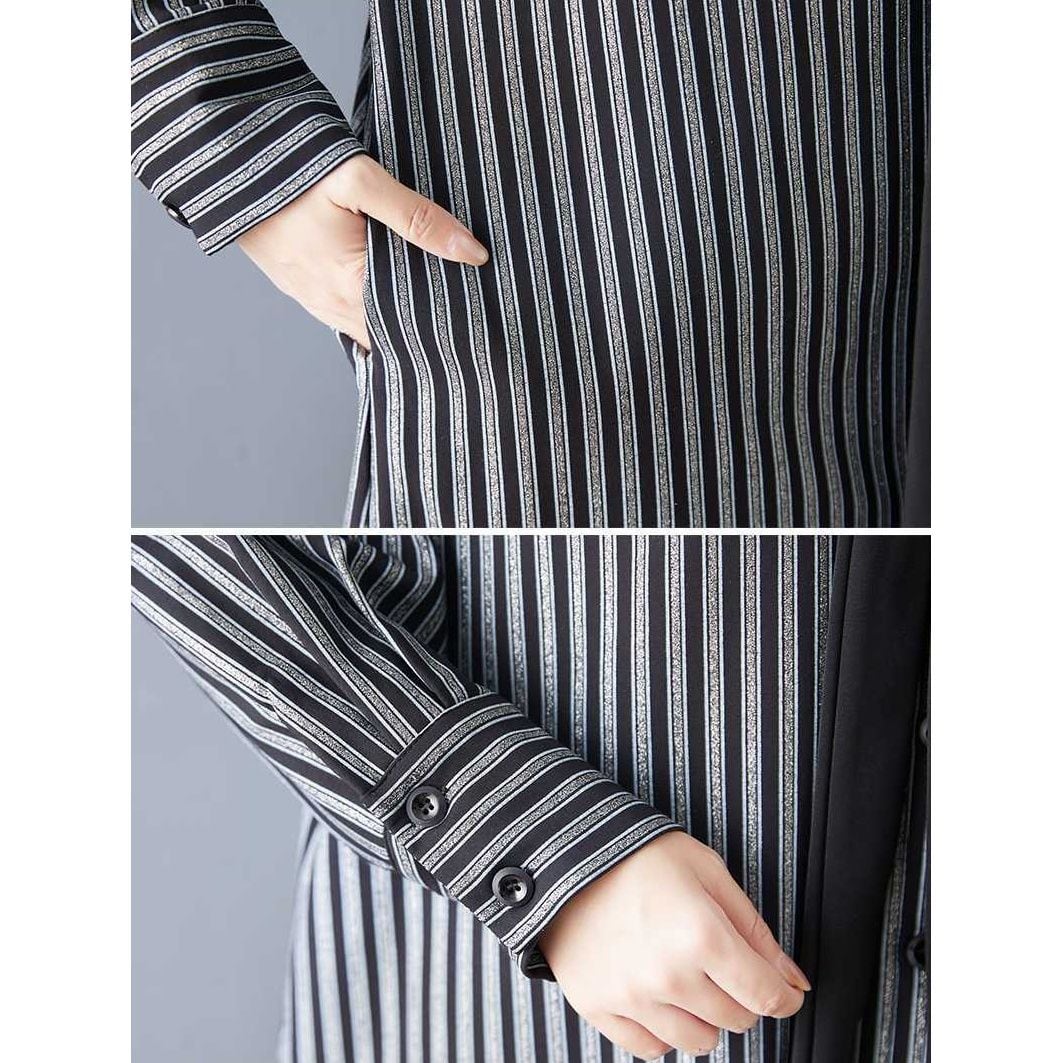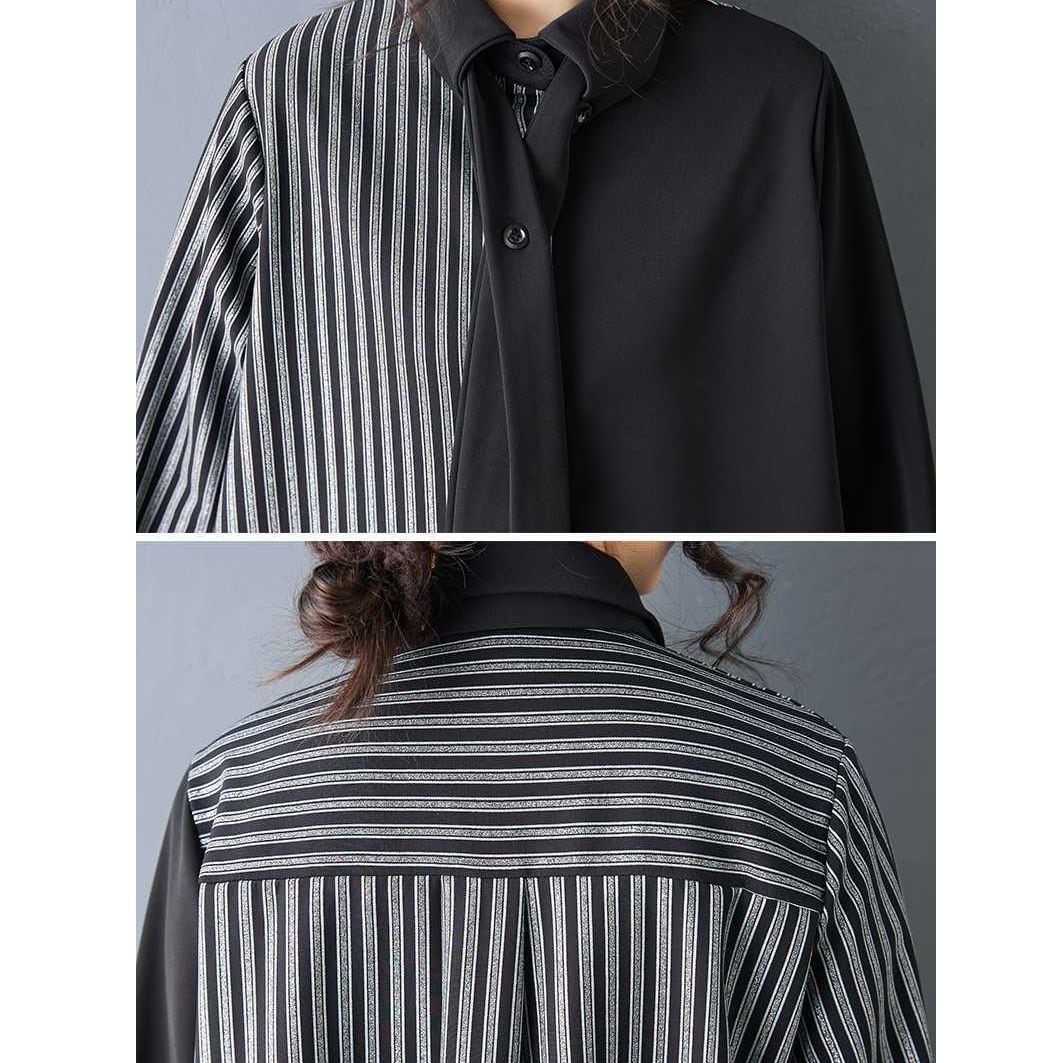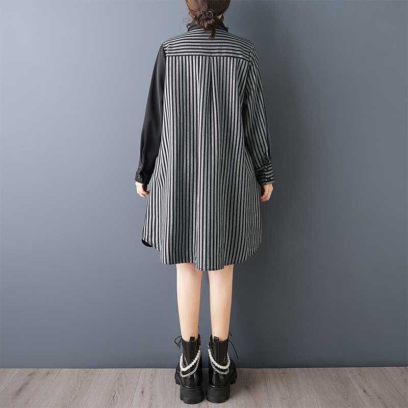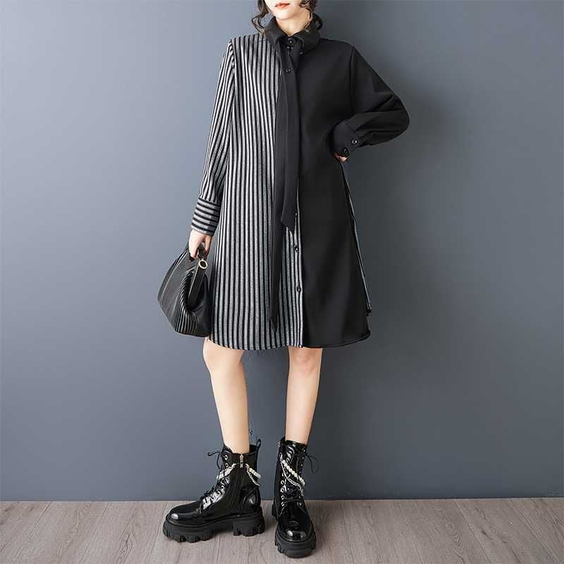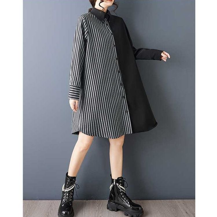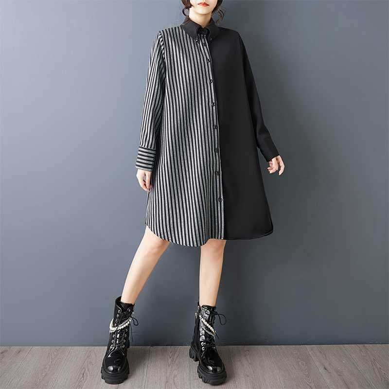 BLACK STRIPE ASYMMETRIC DESIGN A-LINE MINI SHIRT DRESS 1color M-16054