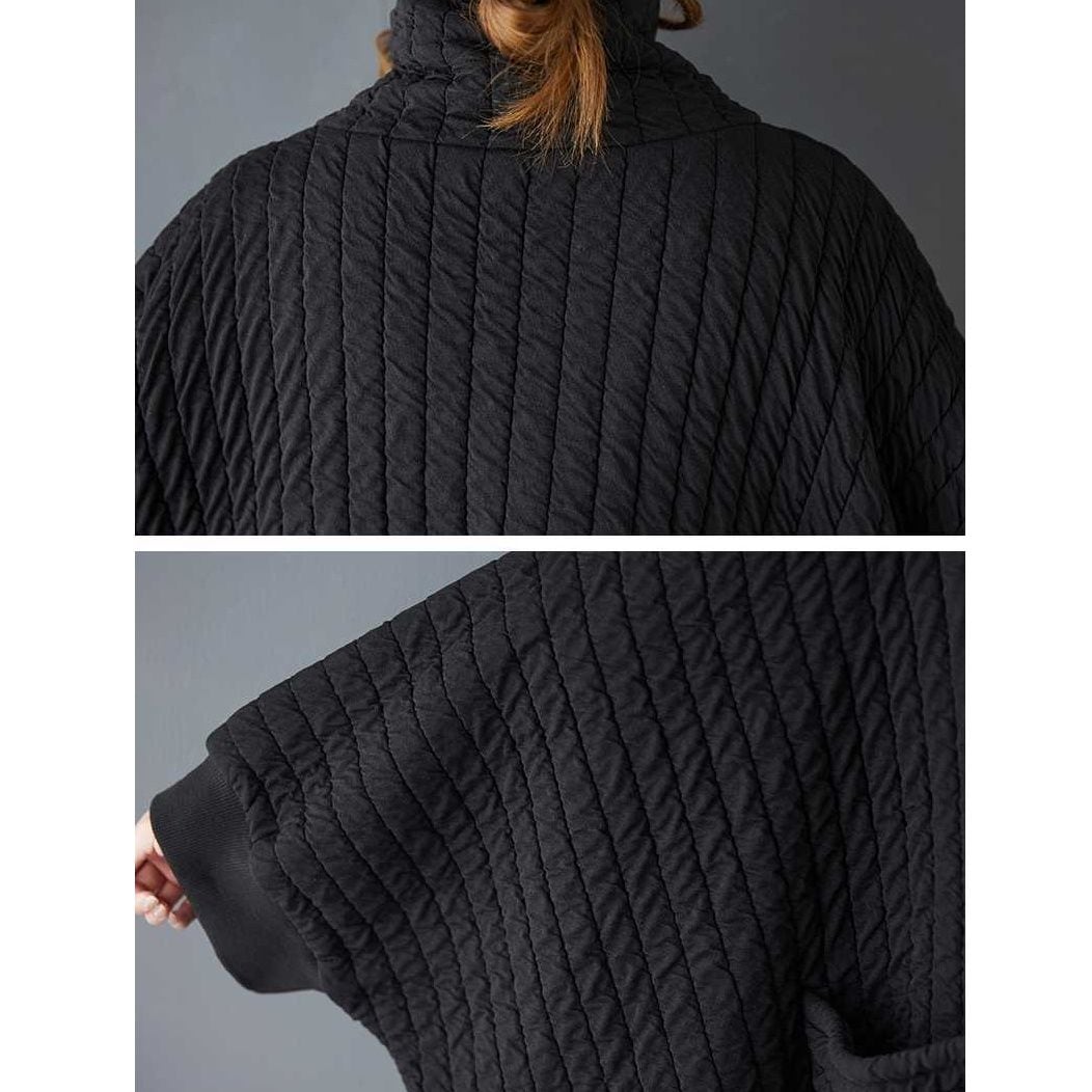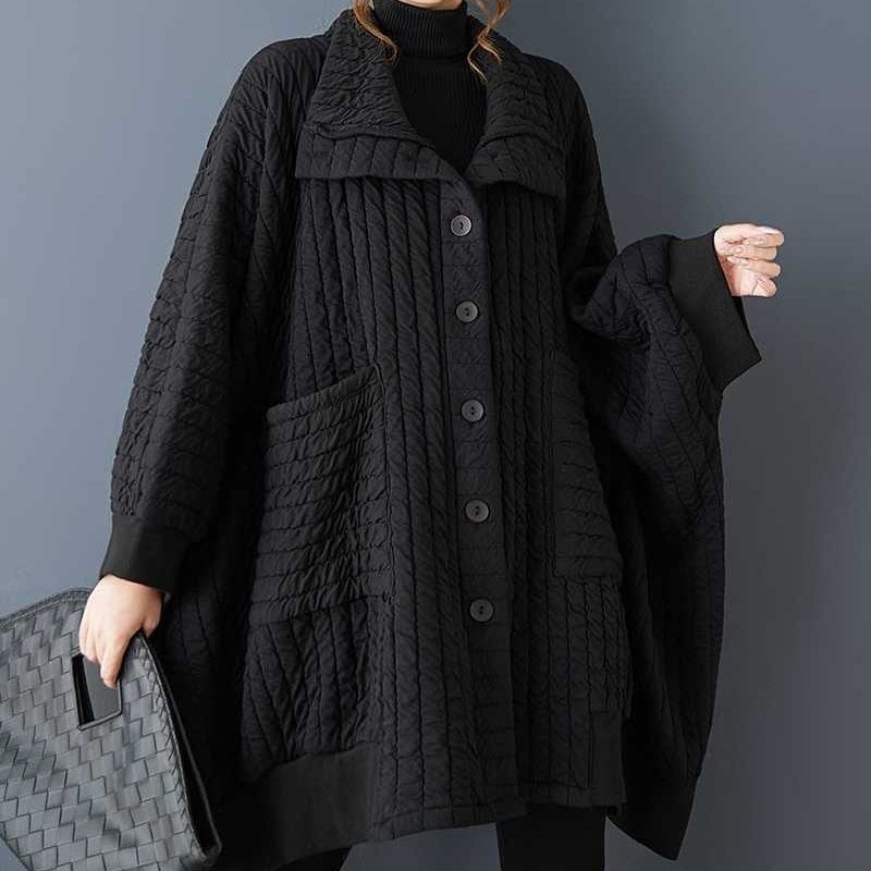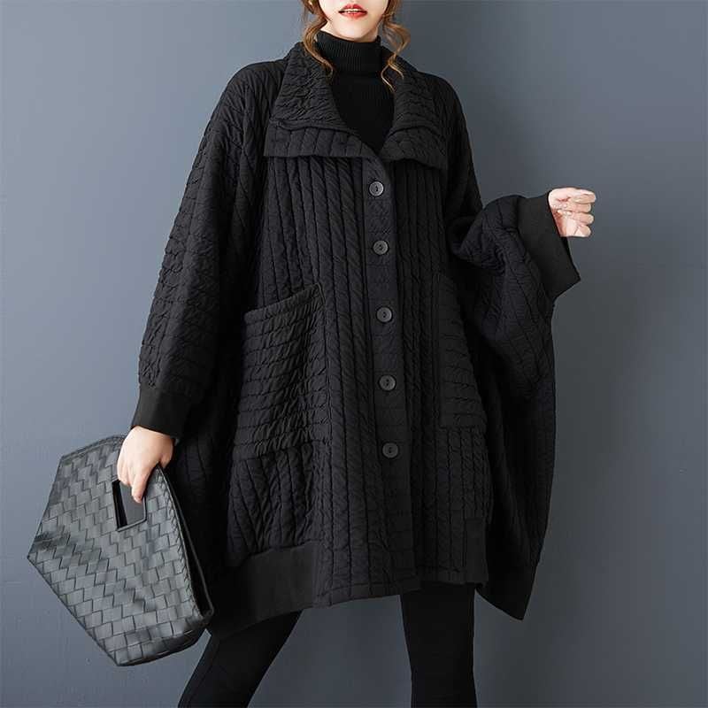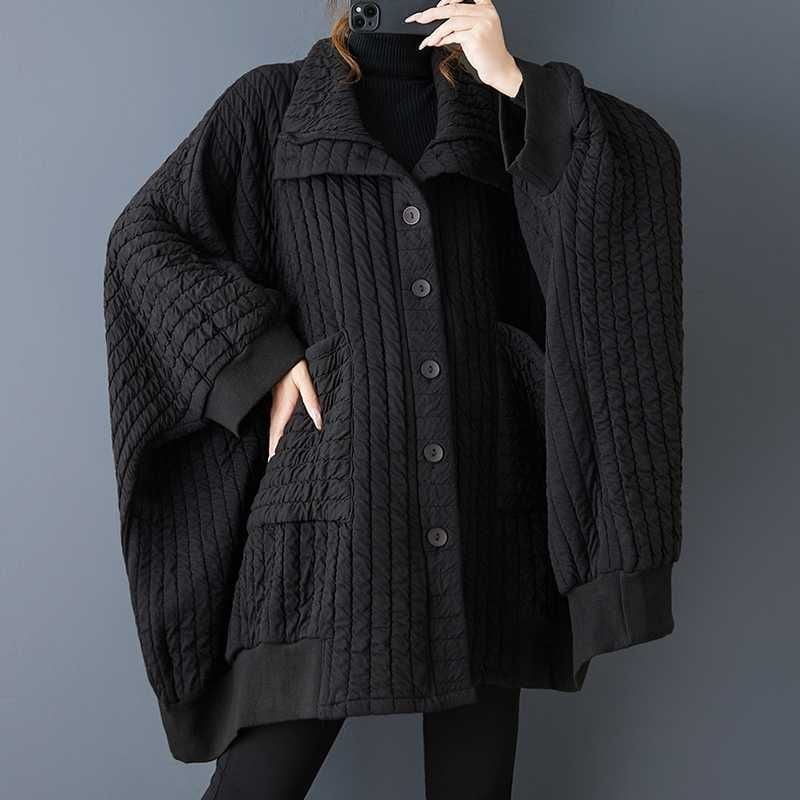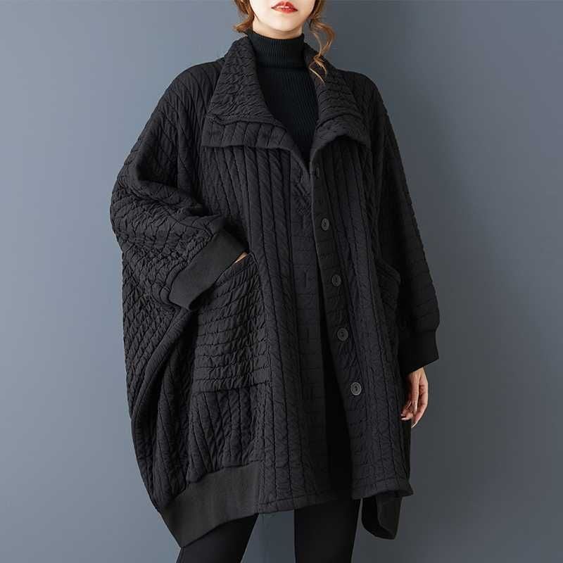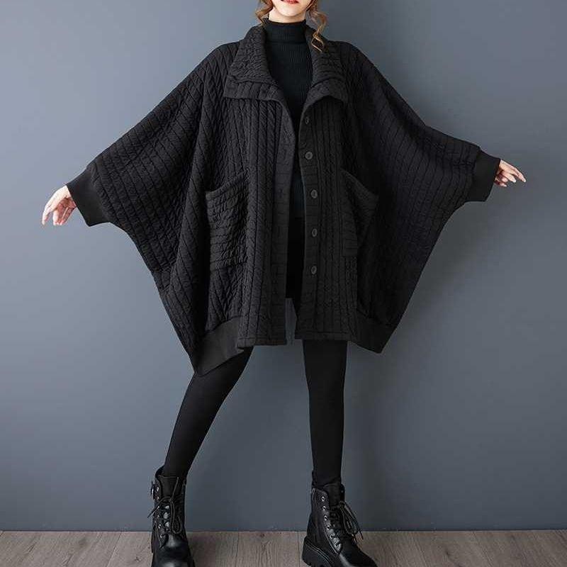 BLACK QUILTING BAT SLEEVES WIDE CARDIGAN COAT 1color M-16062