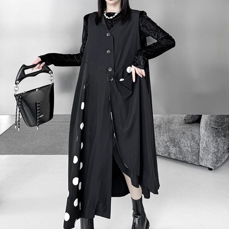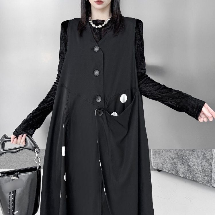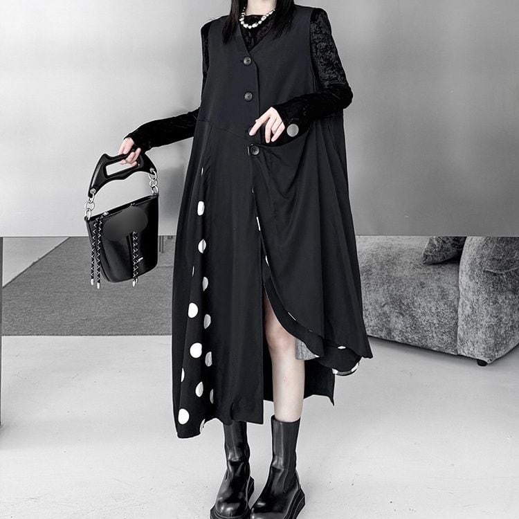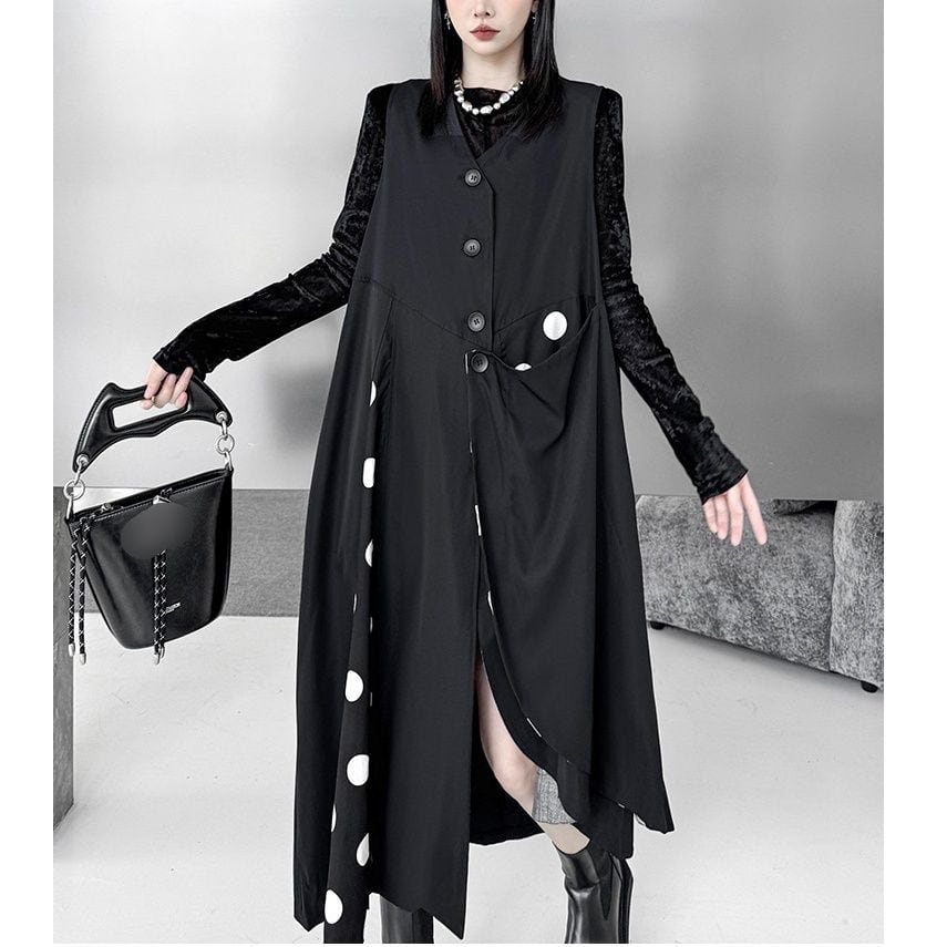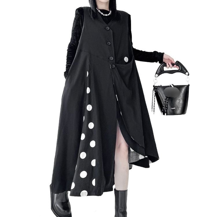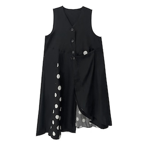 BLACK DOT STITCH V-NECK ASYMMETRIC VEST DRESS 1color M-16083