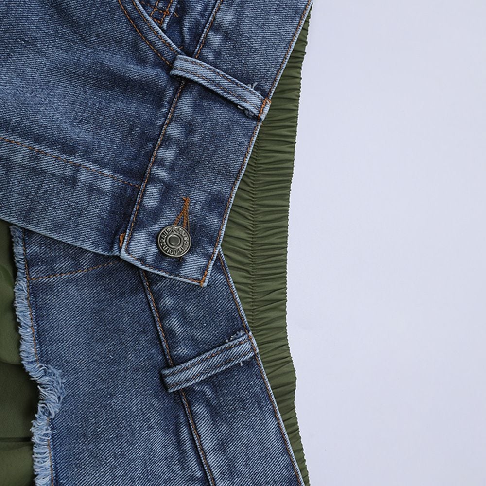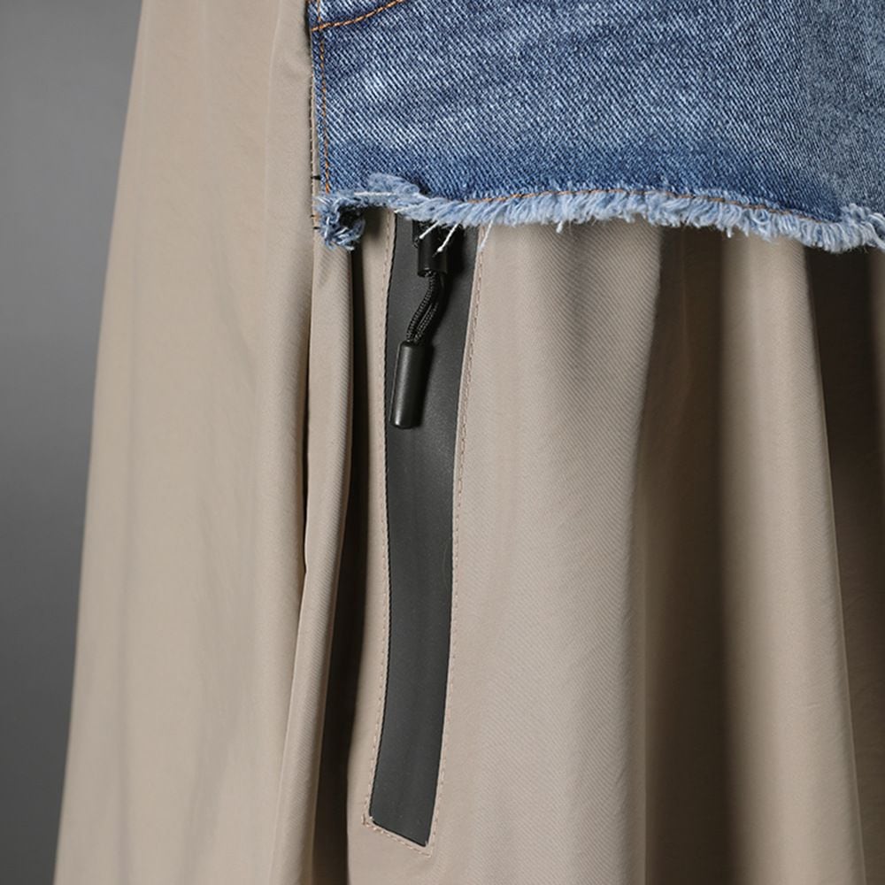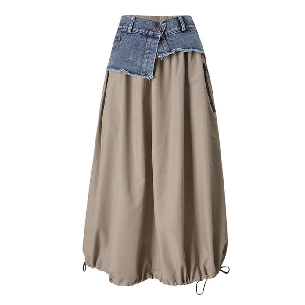 DENIM STITCHED A-LINE DRAWCORD HEM LONG CASUAL SKIRT 2colors M-16097