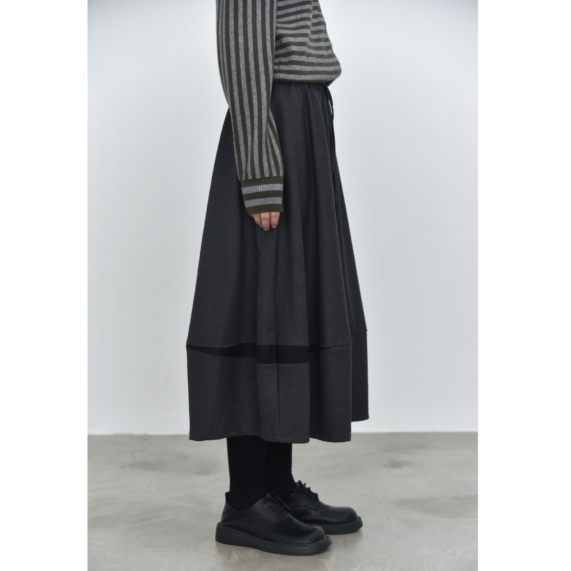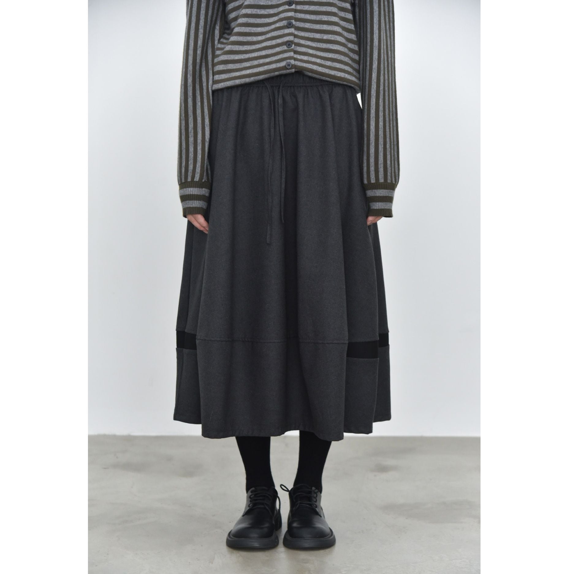 DRAWSTRING WAIST A-LINE MIDI DESIGN SKIRT 4colors M-16103