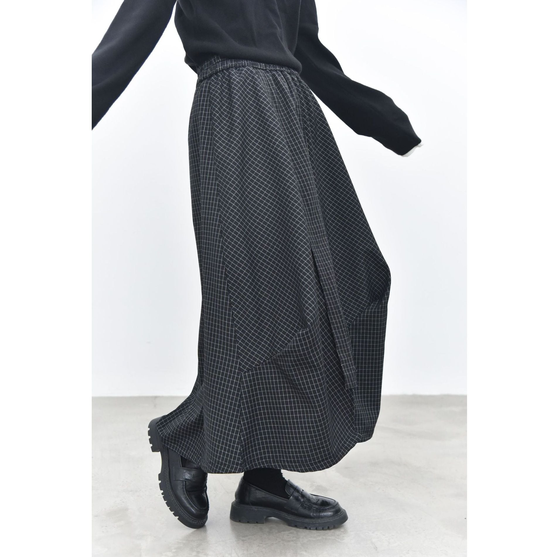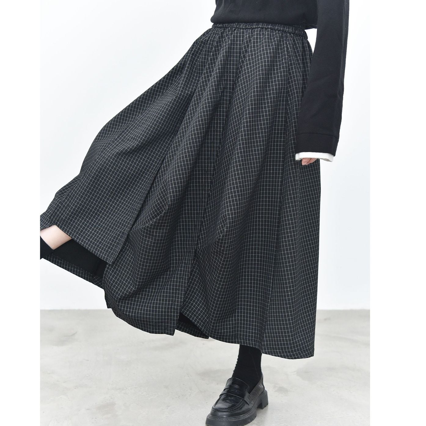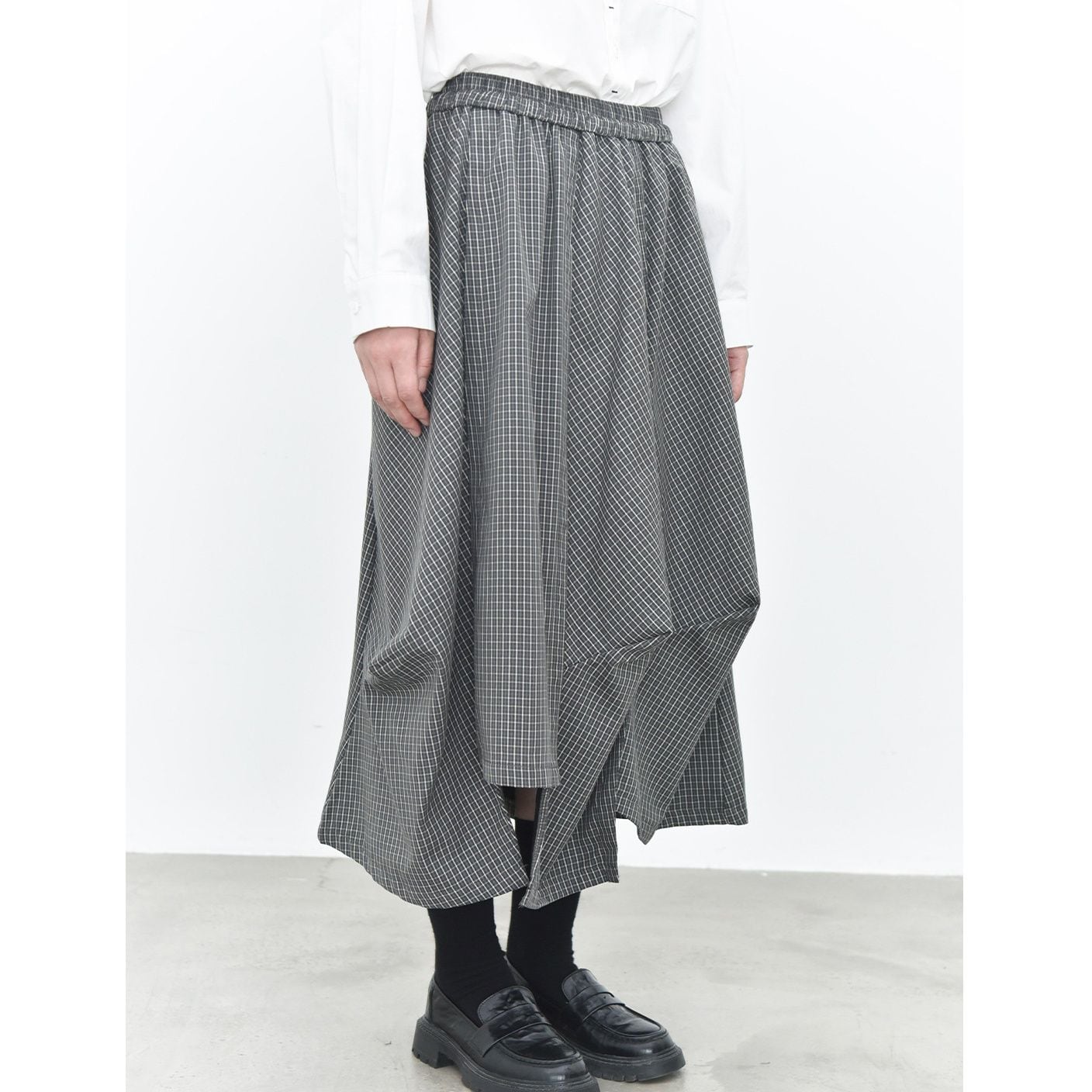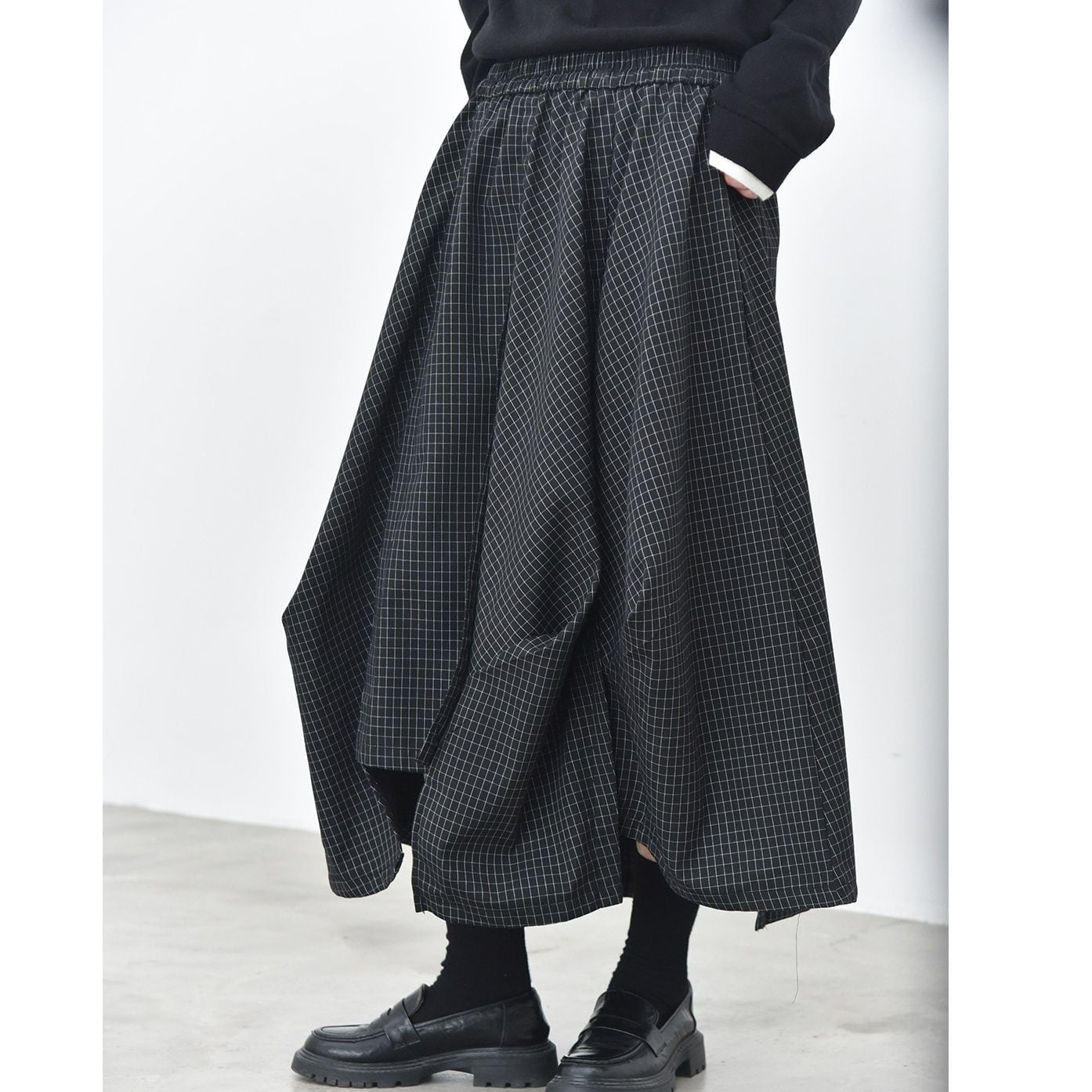 ELASTIC WAIST CHECKERD LONG DESIGN SKIRT 2colors M-16112