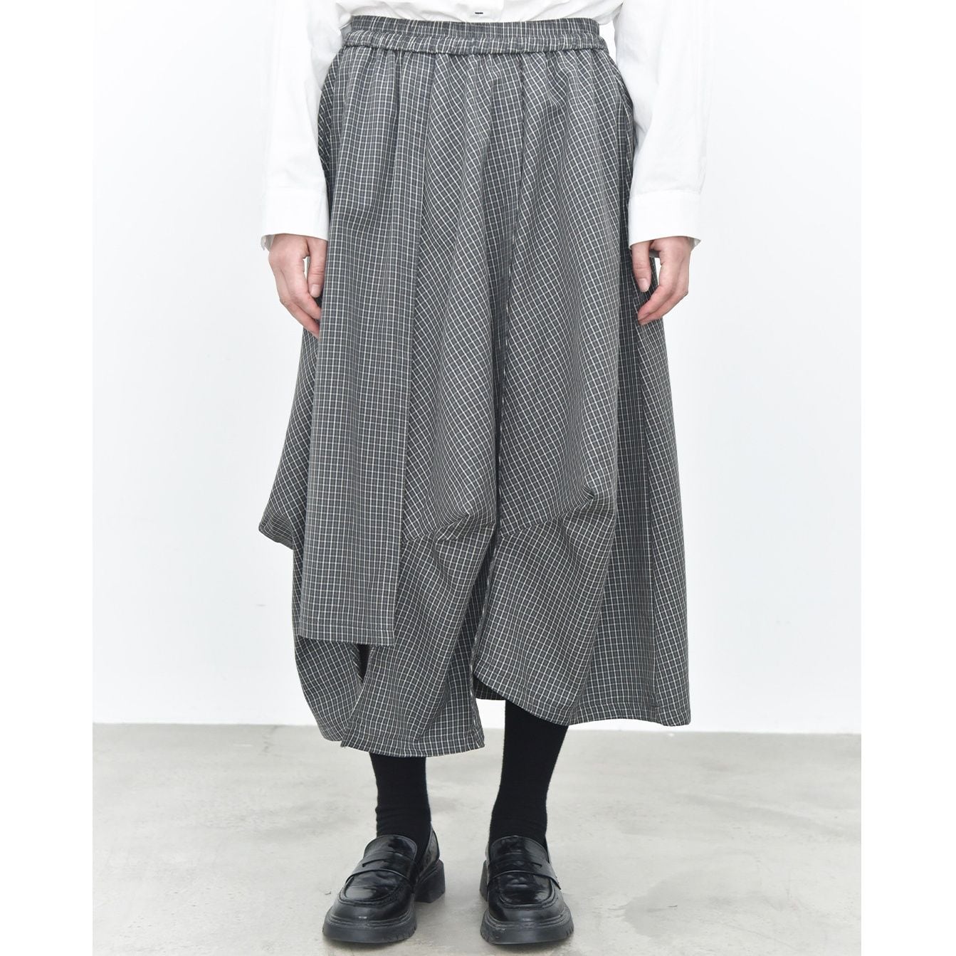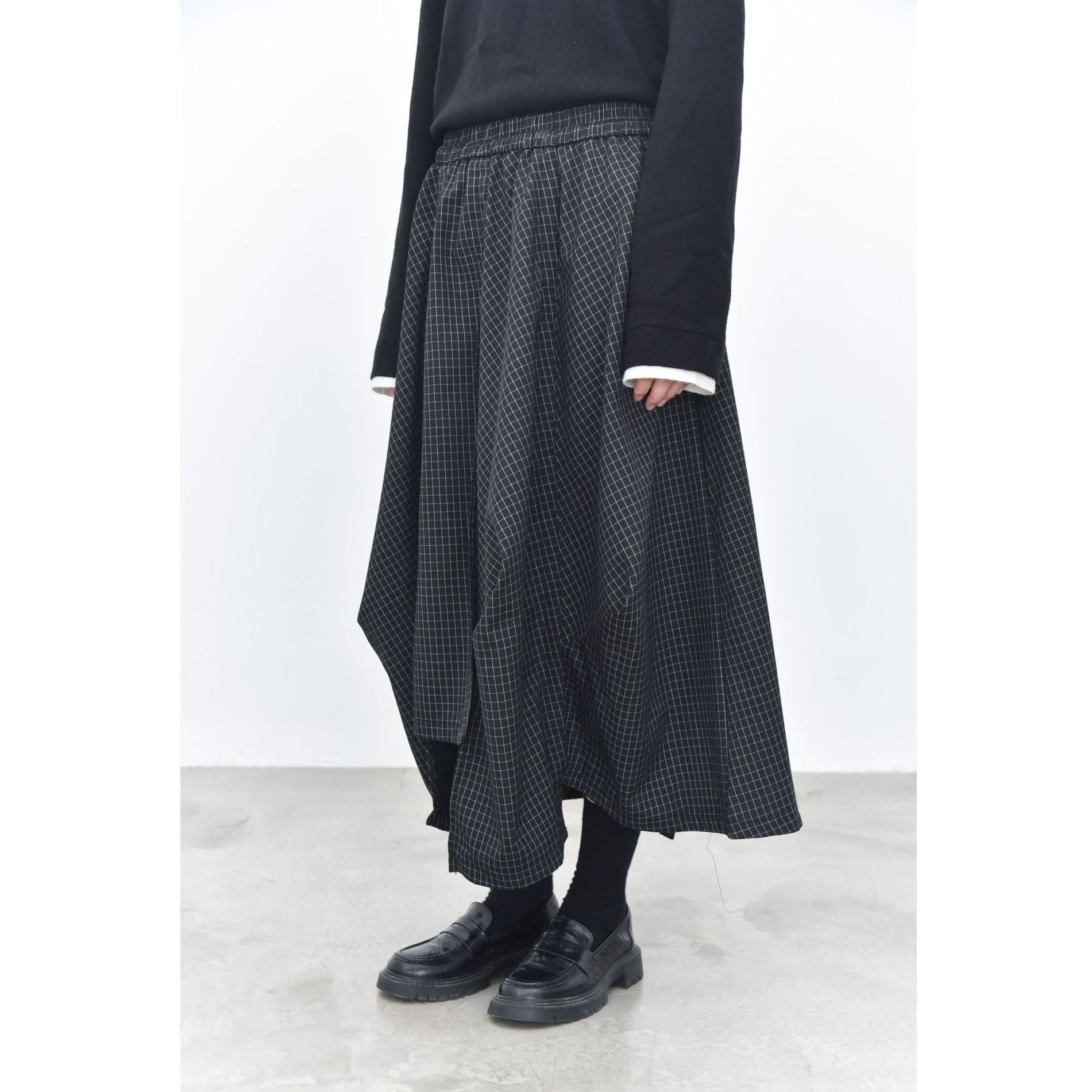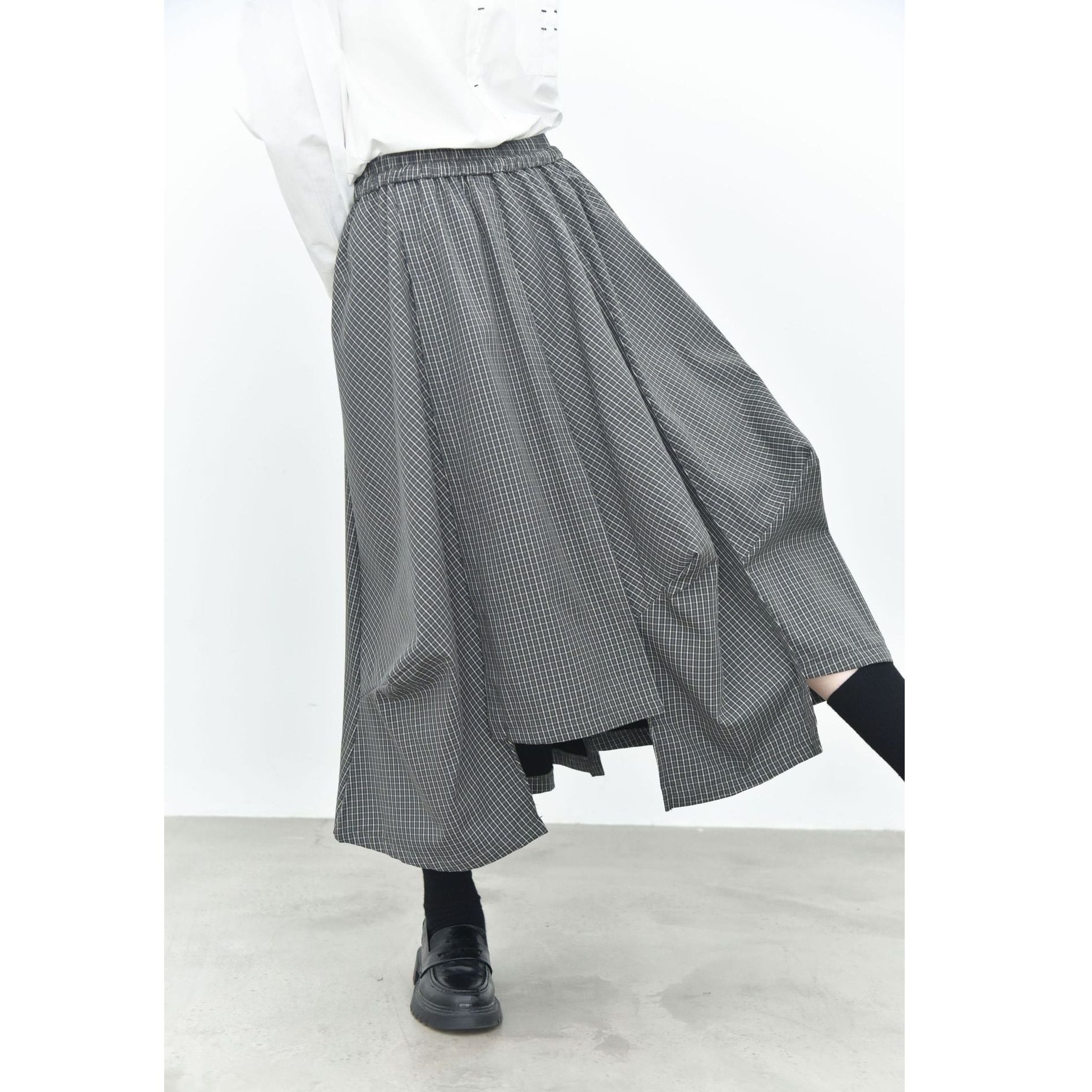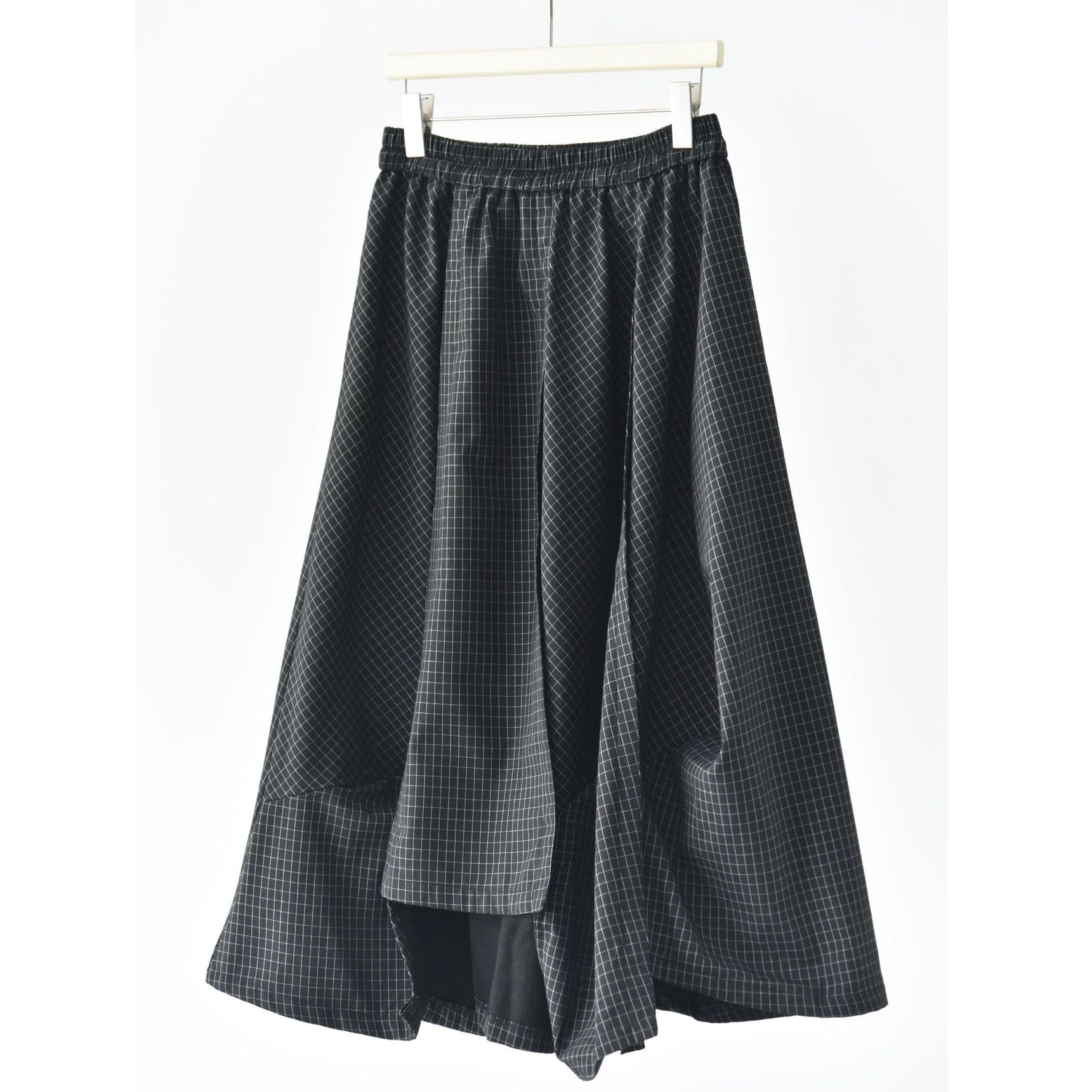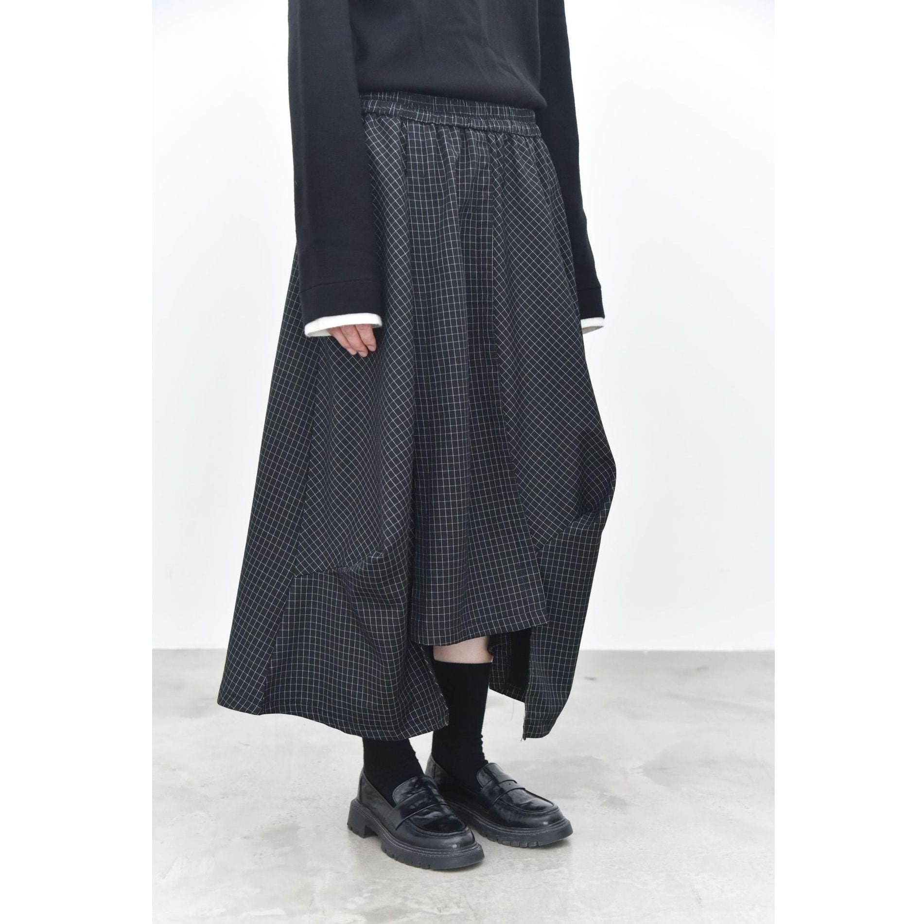 ELASTIC WAIST CHECKERD LONG DESIGN SKIRT 2colors M-16112