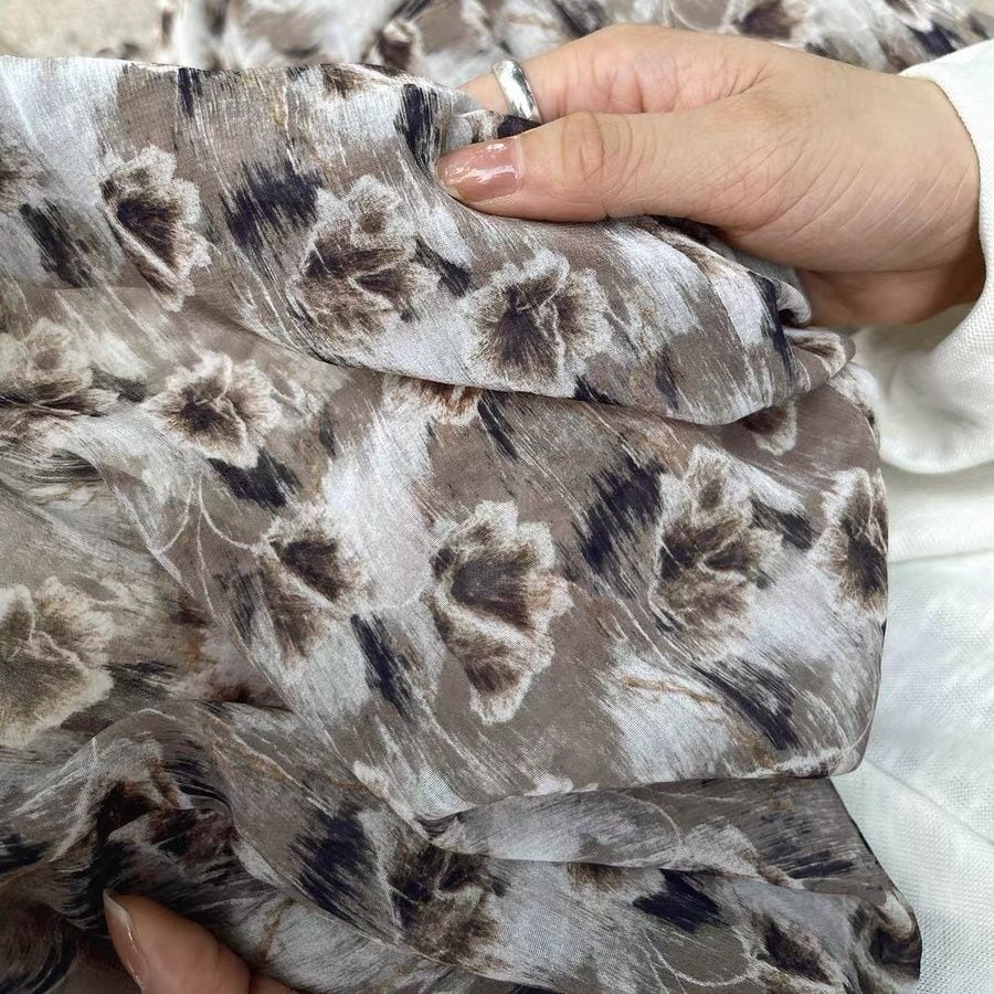 薄くて軽いしわ加工素材でできた、Aライン・マキシ丈のデザインスカートです。アーティスティックな花柄がエレガントで目を惹きます。大きく広がるシルエットが魅力的な、コーディネートの主役になるアイテムです。ブラウンとグリーンの2色から選べます。
