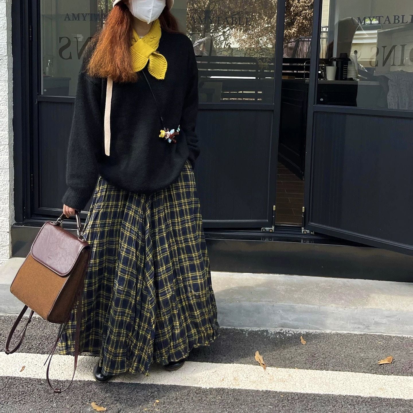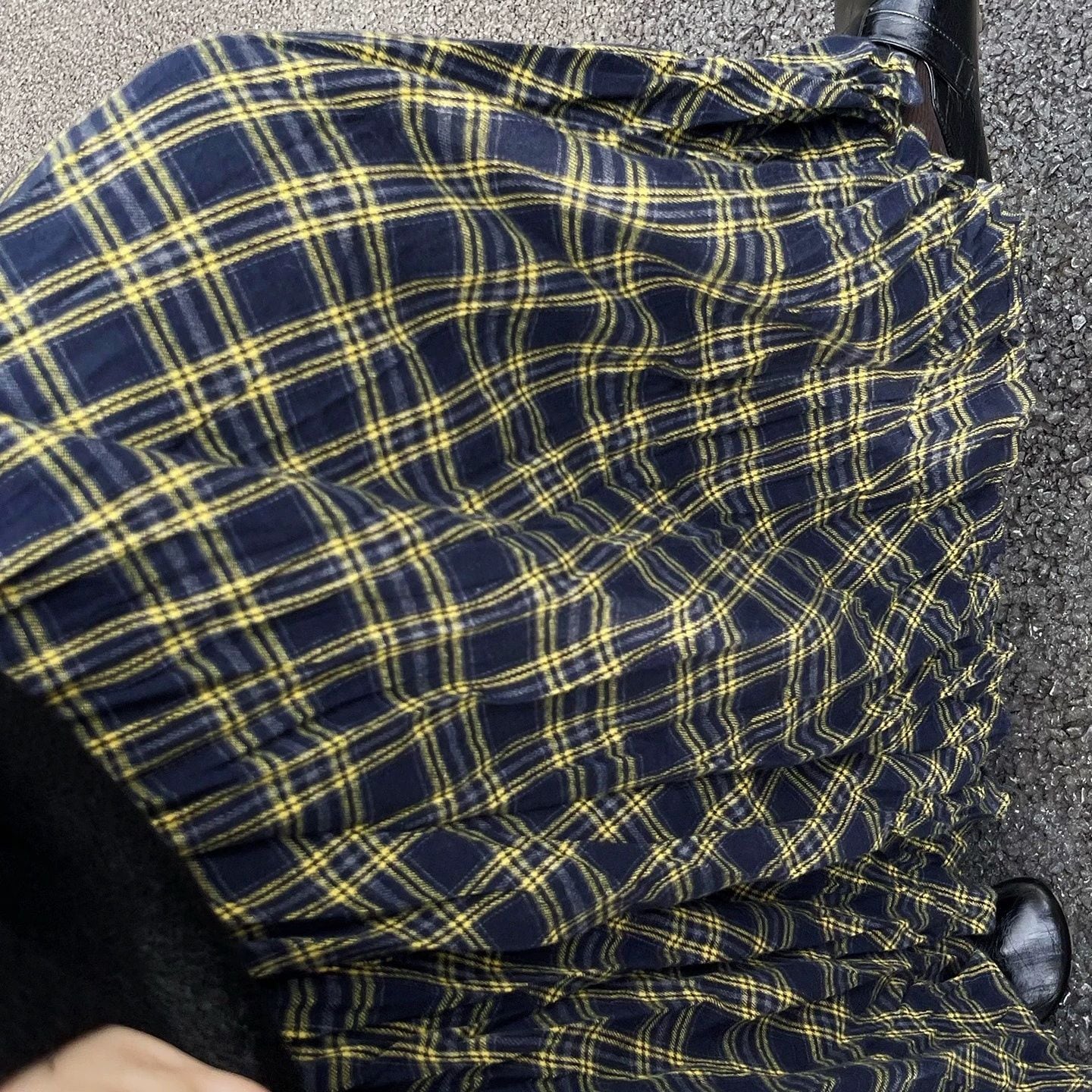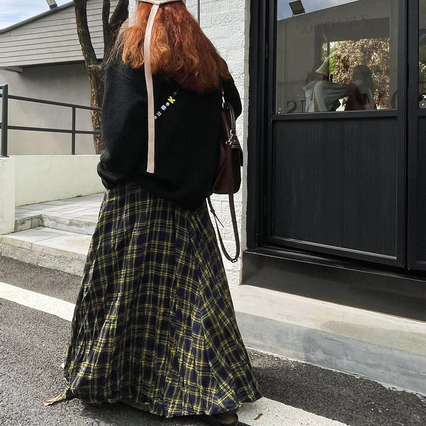 CHECKERED A-LINE WRINKLED MAXI DESIGN SKIRT 3colors M-16132