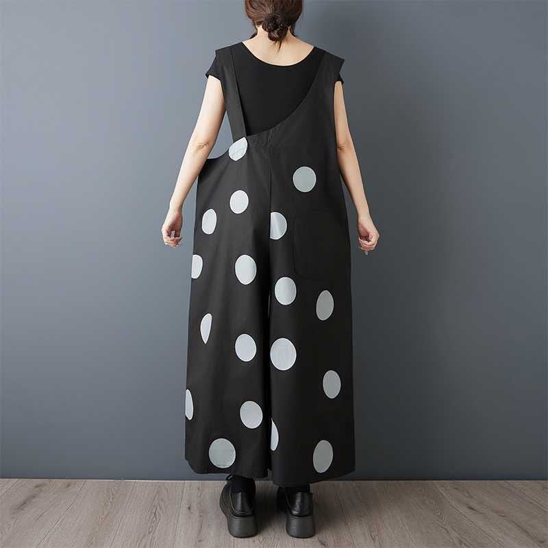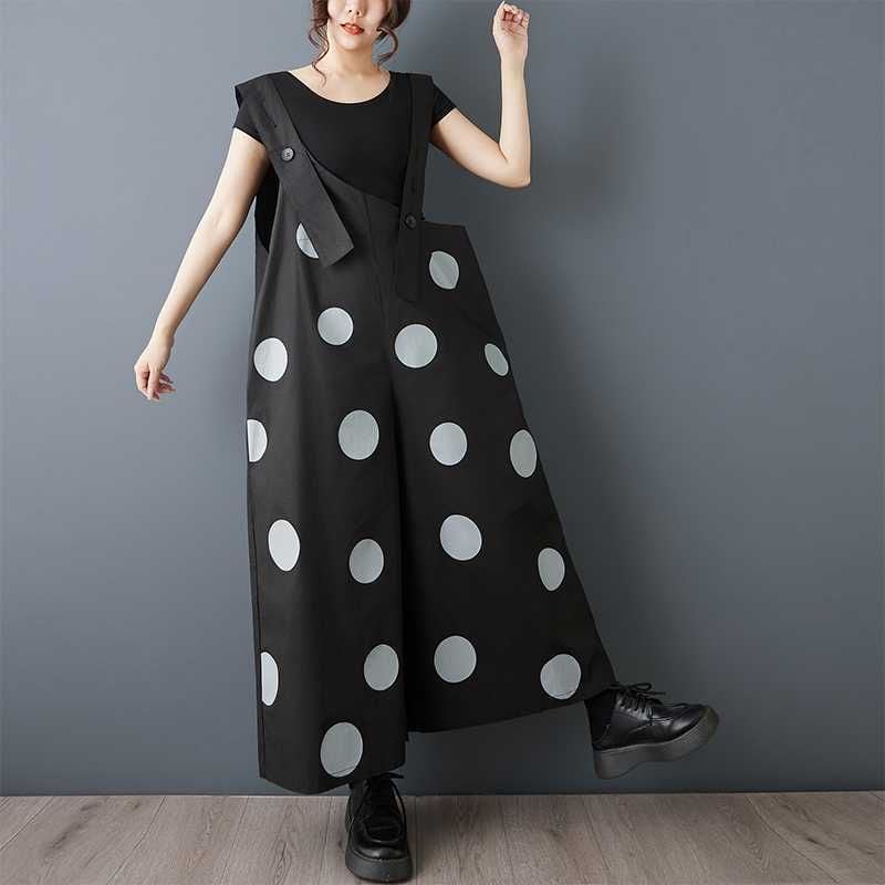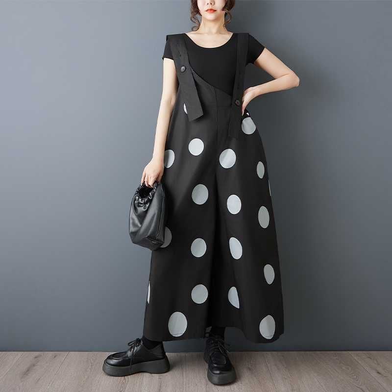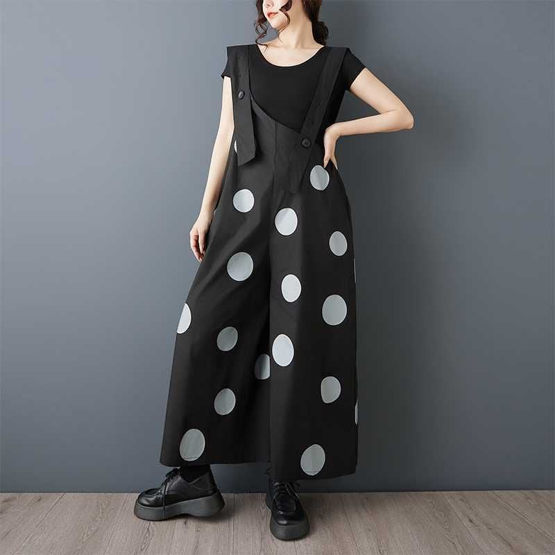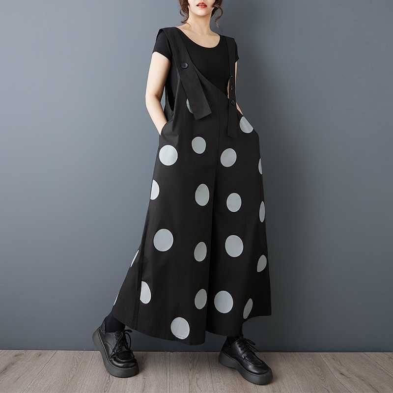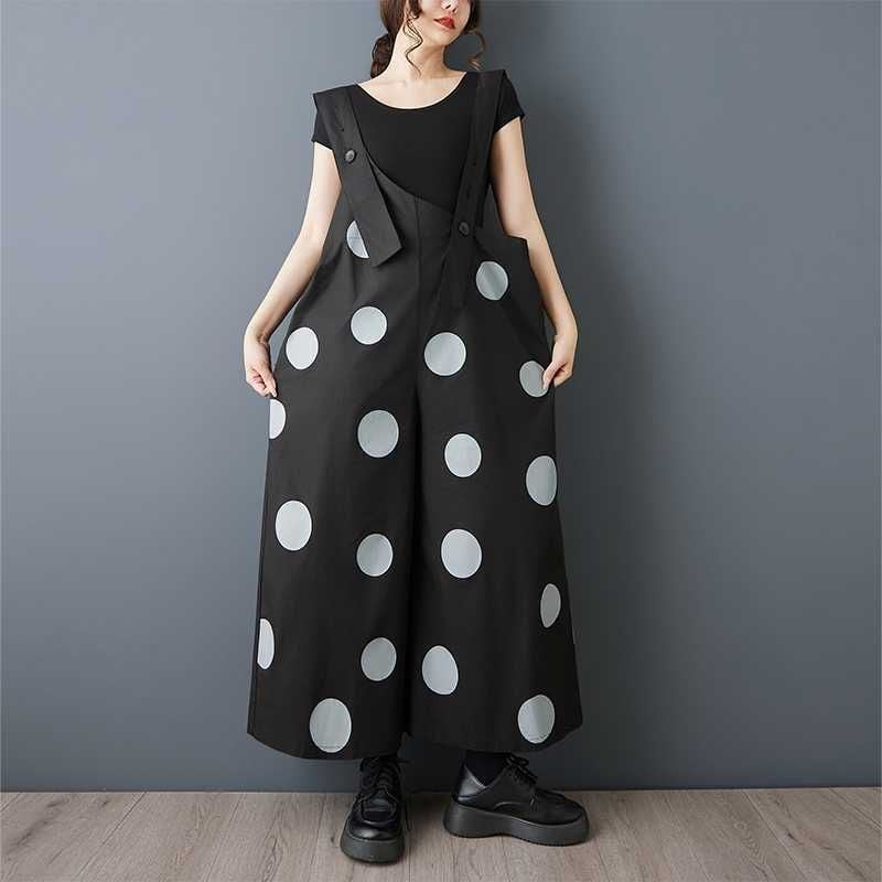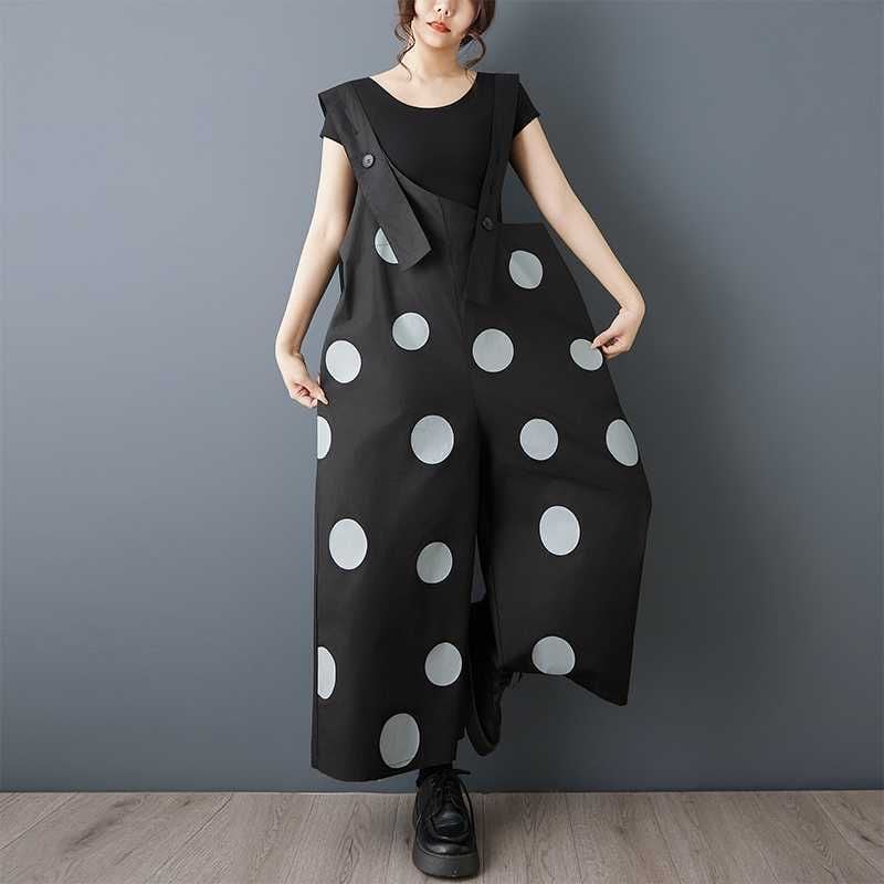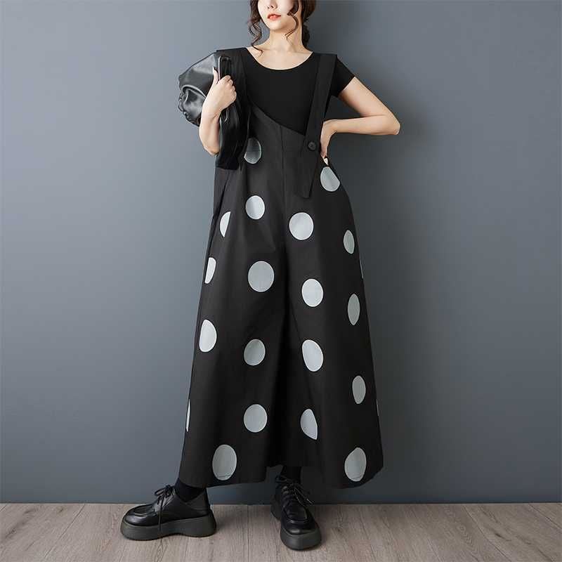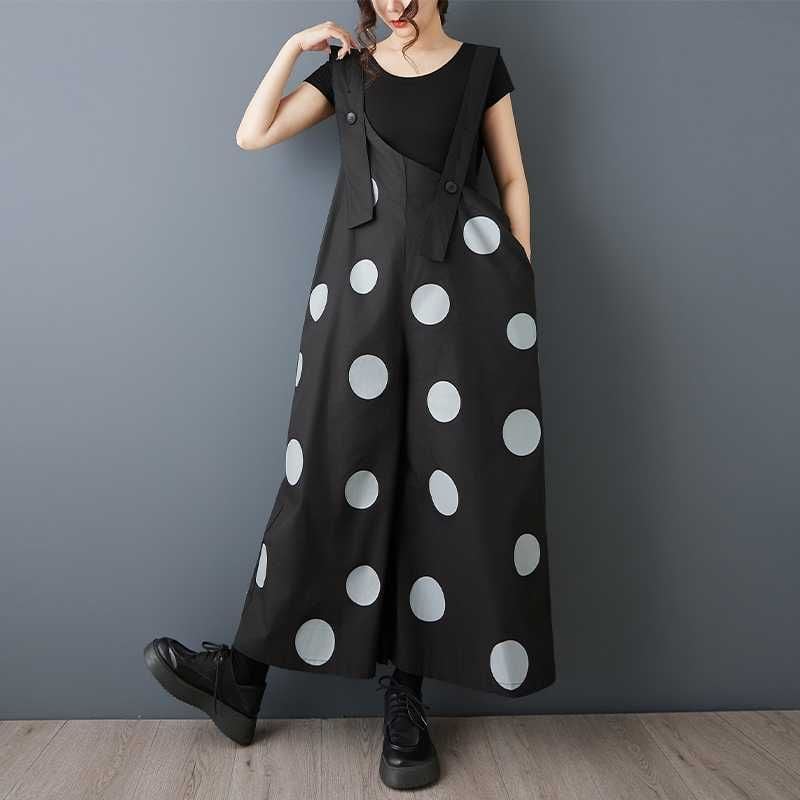 BLACK DOT ASYMMETRIC DESIGN WIDE LEG OVERALL 1color M-16163