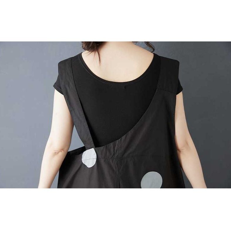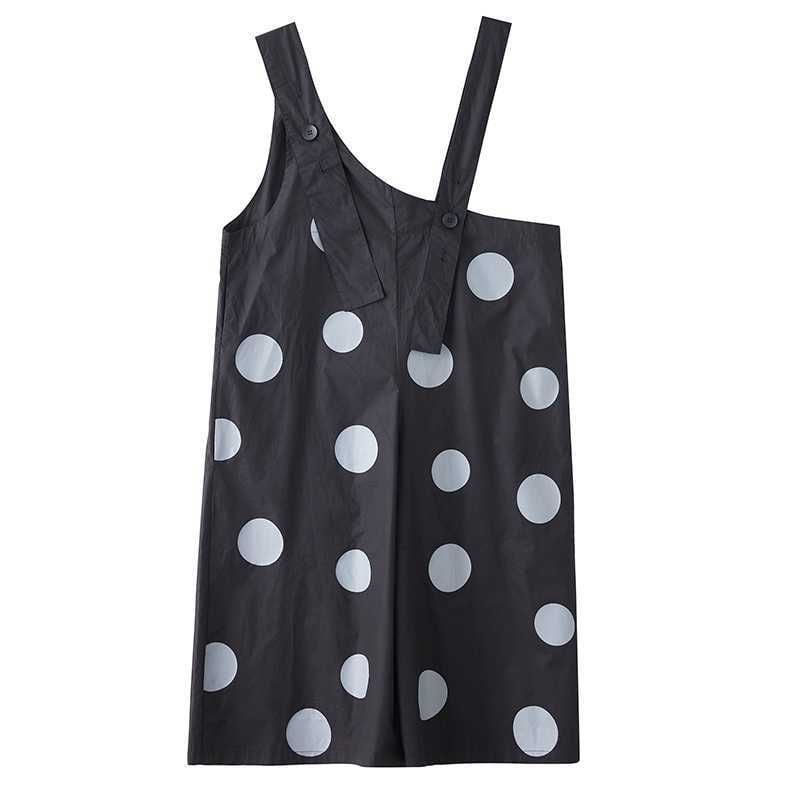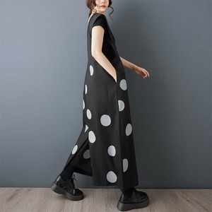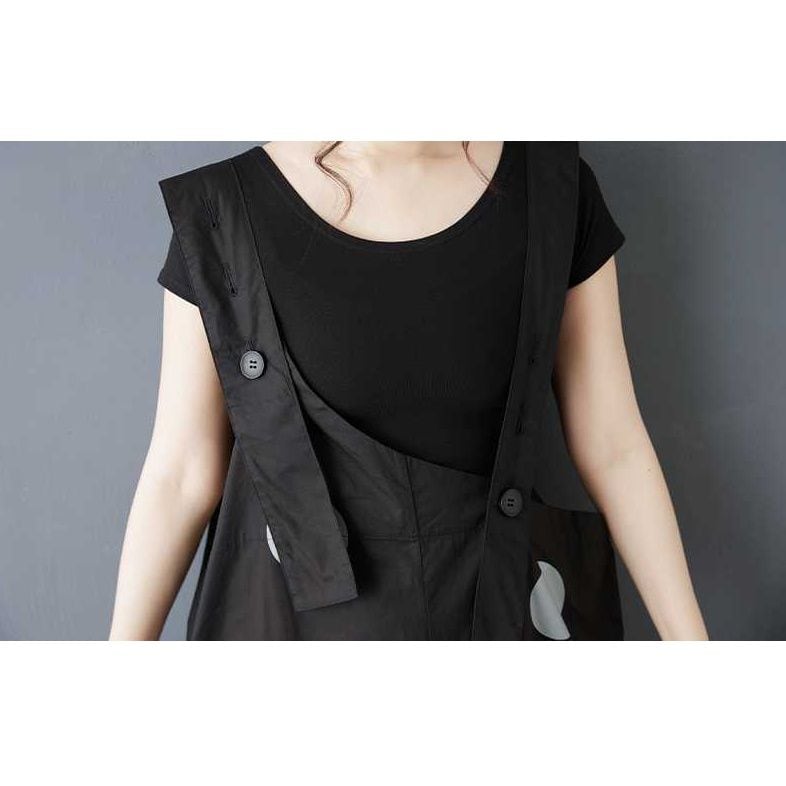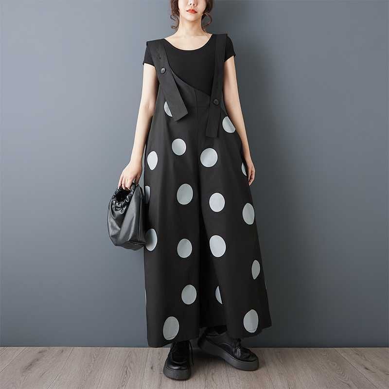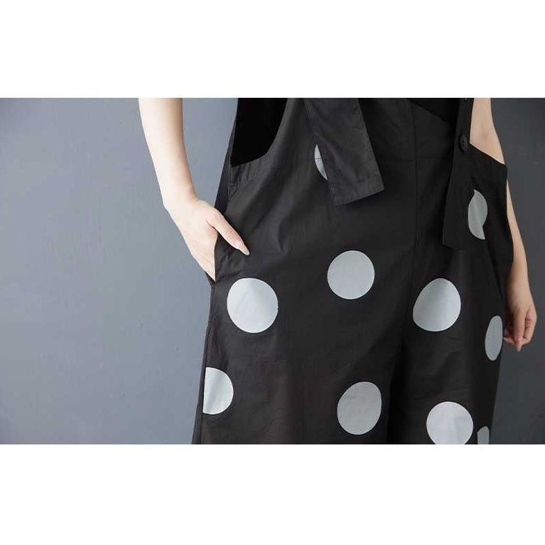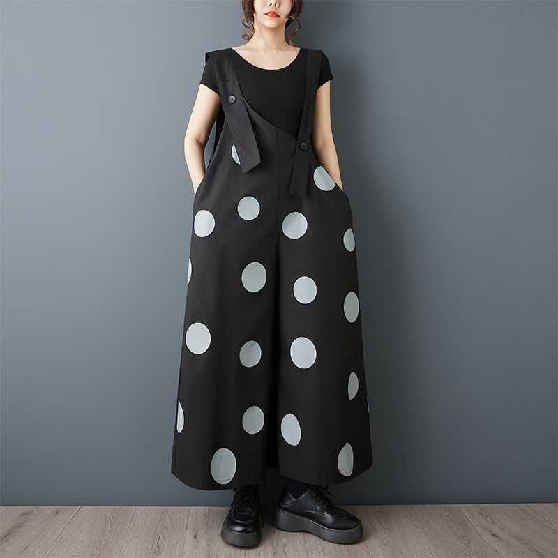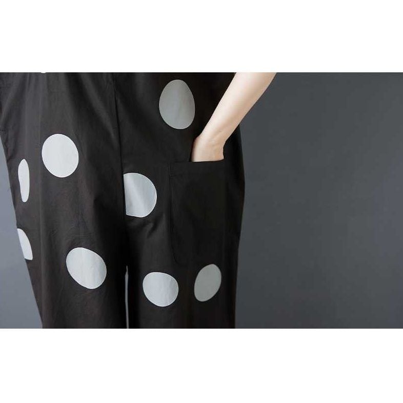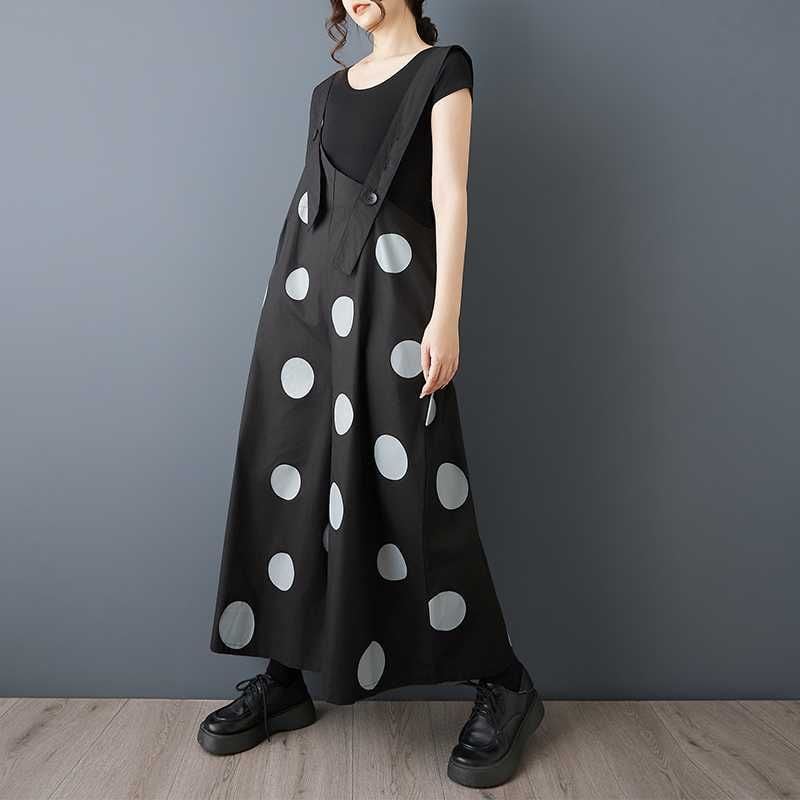 BLACK DOT ASYMMETRIC DESIGN WIDE LEG OVERALL 1color M-16163