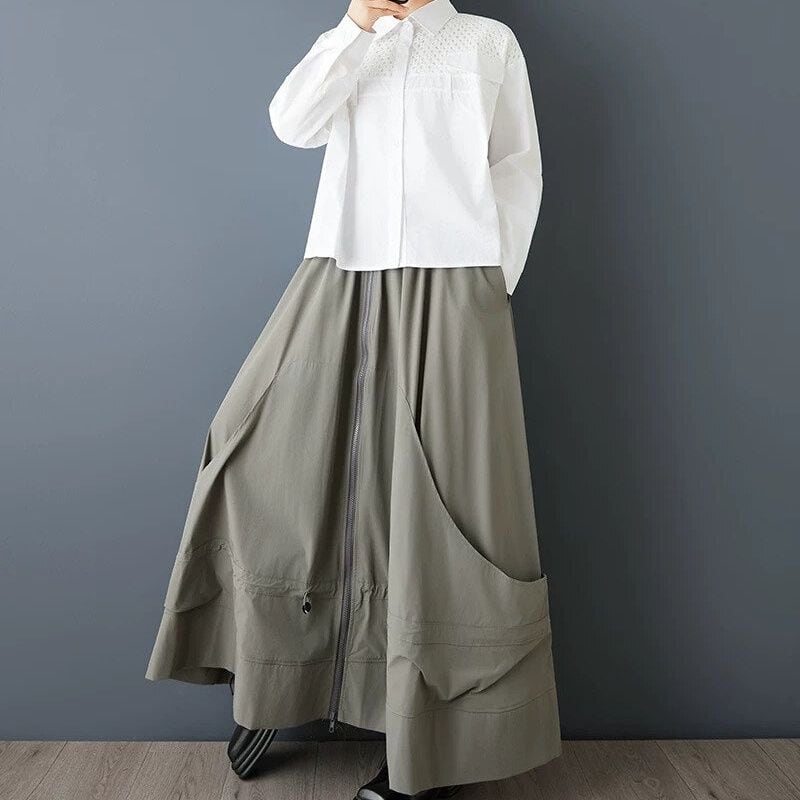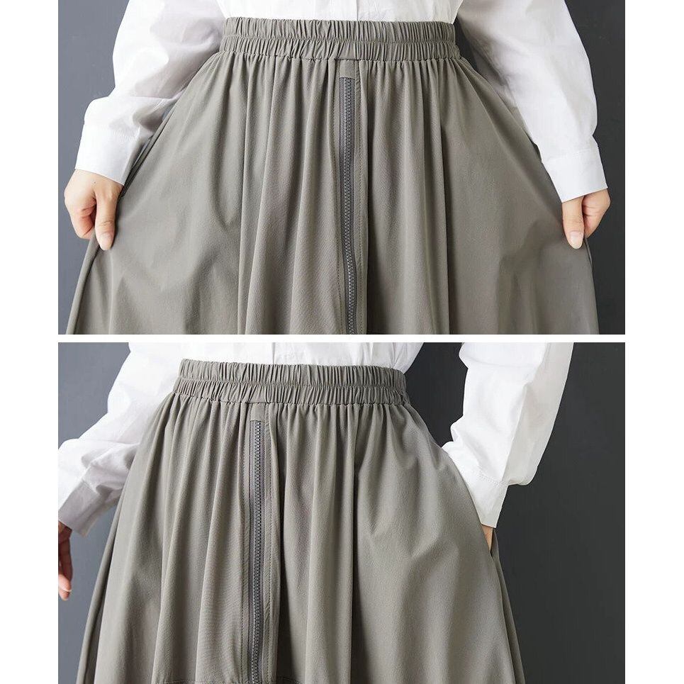 SOLID A-LINE FULLZIP LONG DESIGN SKIRT 1color M-16169