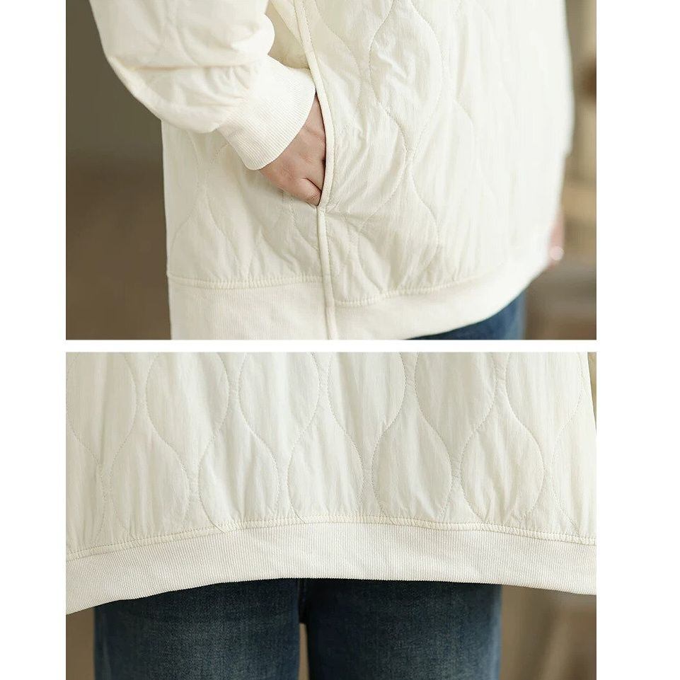 キルティング素材があたたかな、オフスタンドカラー・長袖・プルオーバートップです。単色のシンプルなデザインで合わせやすい、リラックスした印象のカジュアルアイテムです。色はブラックとオフホワイトの2色から選べます。 SIZE:※測り方によって2-3cmの差が生じる場合がございます。 【M】バスト134cm 袖丈73cm 着丈63cm 【L】バスト138cm 袖丈74cm 着丈64cm 【XL】バスト142cm 袖丈75cm 着丈65cm 【2XL】バスト146cm 袖丈76cm 着丈66cm COLOR:Black、Off White 素材:ポリエステル、その他 モデル着用サイズ:L モデル情報:身長161cm 体重49kg STYLE CALENDAR:春◎ 夏〇 秋◎ 冬〇 お届けについて こちらの商品は海外店舗より直接発送となる為、 ご決済から到着までは、多くの場合【10日-2週間前後】でお届けしております。 ※在庫状況や輸送の混雑により、4週間前後かかる場合がございます。 注意事項 ・商品在庫切れにより注文キャンセルとさせていただく恐れもございますので、予めご了承くださいませ。 ・仕入れ工場を変えることがあるため、記載サイズと若干異なる場合がございます。 ・商品の色味は、お手持ちのスマートフォンの画面によって実物と若干異なる場合がございます。 ・イメージ違いやサイズ交換等、お客さまご都合による交換・返品はご遠慮ください。 送料について 全国一律580円(沖縄県は1,500円) ※10,000円以上のご注文で沖縄県を含む全国送料無料。 お支払い方法について ・クレジットカード決済(VISA/Mastercard/JCB/アメリカン・エクスプレス/ Diners Club) ・Amazon Pay ・PayPay ・コンビニ決済/Pay-easy ※前払いのお支払い方法 ・Pay ID あと払い(コンビニ払い、口座振替) ※あと払いのお支払い方法 ・キャリア決済(d払い/au PAY(auかんたん決済)/ソフトバンク・ワイモバイルまとめて支払い) 管理番号:M-16170