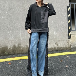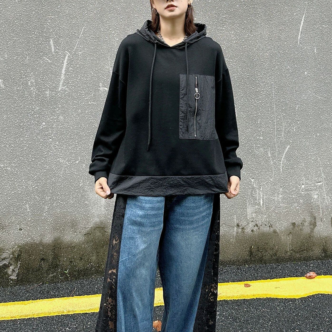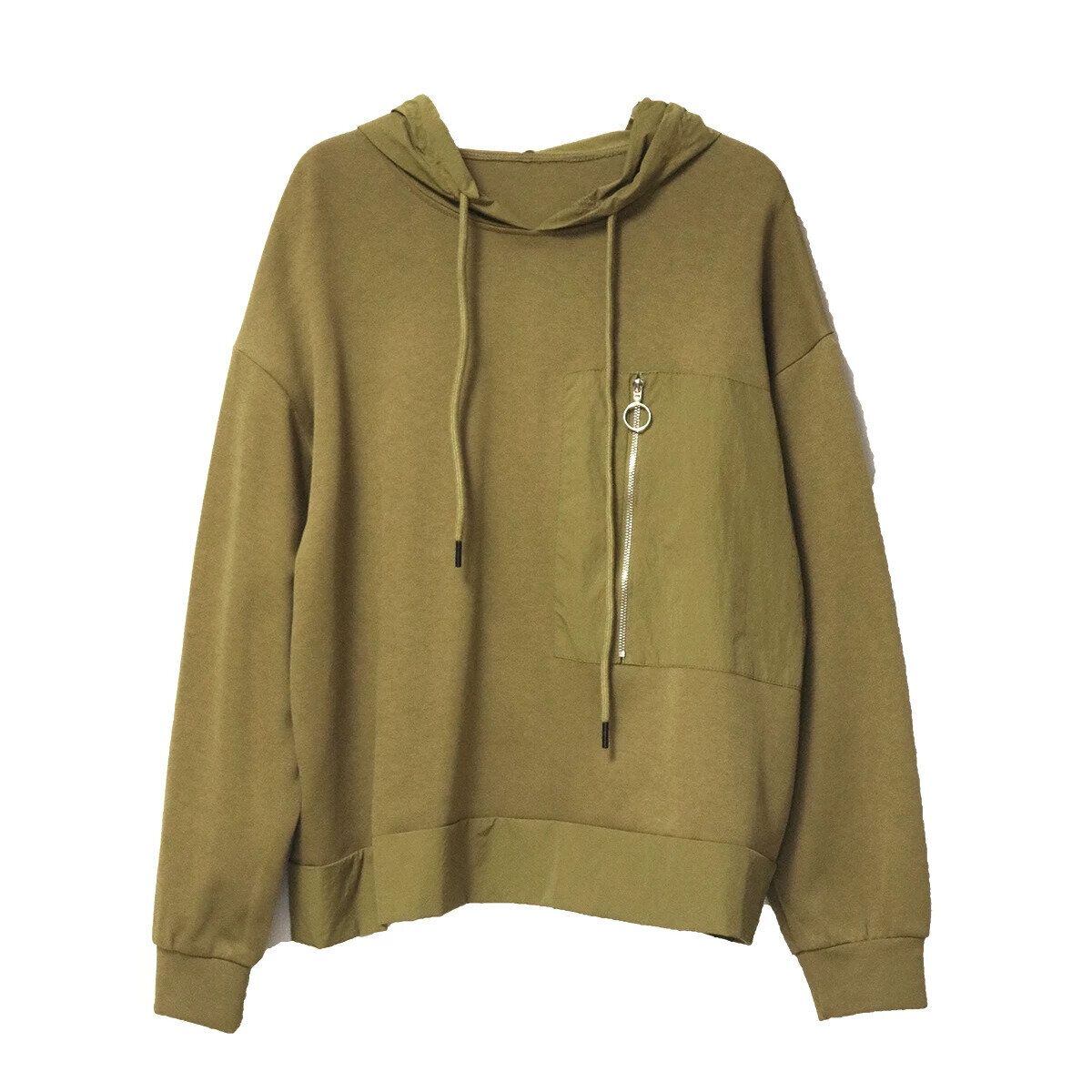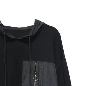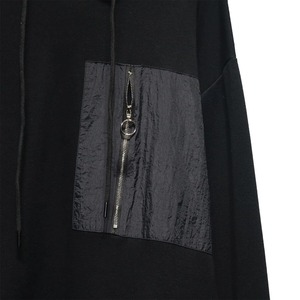 ジップの付いたデザインパッチポケットや異なる素材のスティッチデザインがキュートな、プルオーバー・フーディです。ドロップショルダーのゆったりとしたシルエットで、どんなボトムスとも合わせやすいカジュアルなアイテムです。色は3色から選べます。