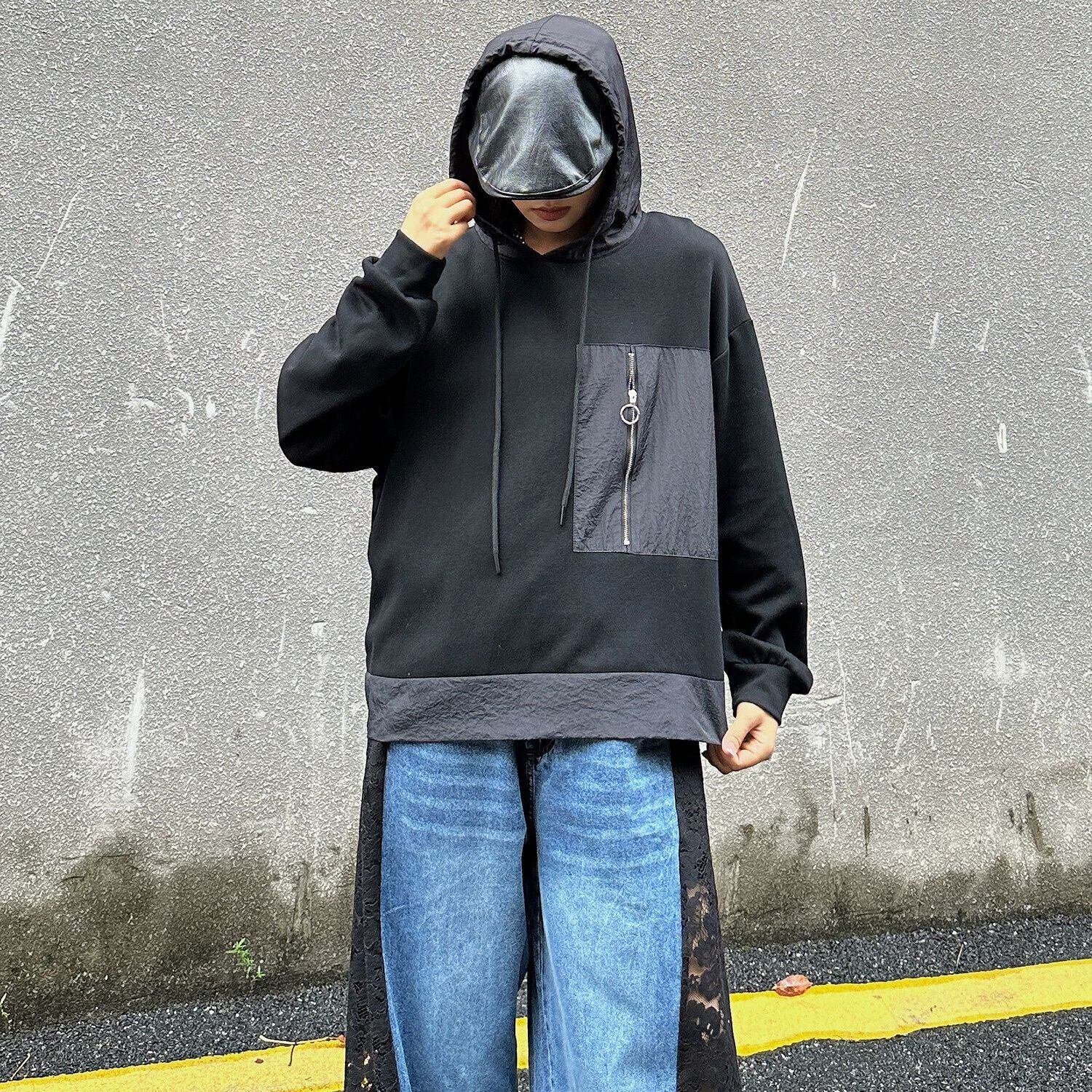 DESIGN POCKET STITCHED PULLOVER HOODIE 3colors M-16226