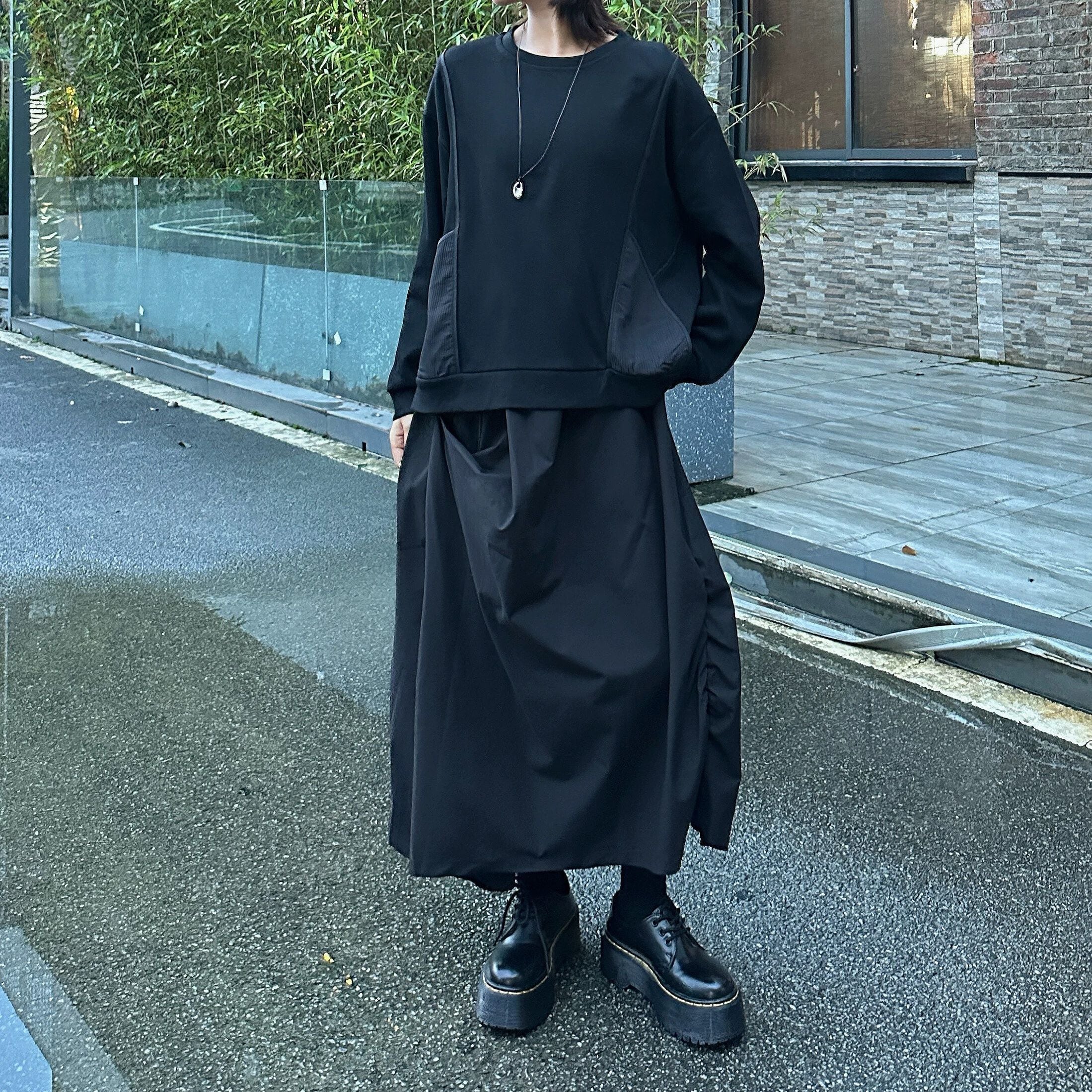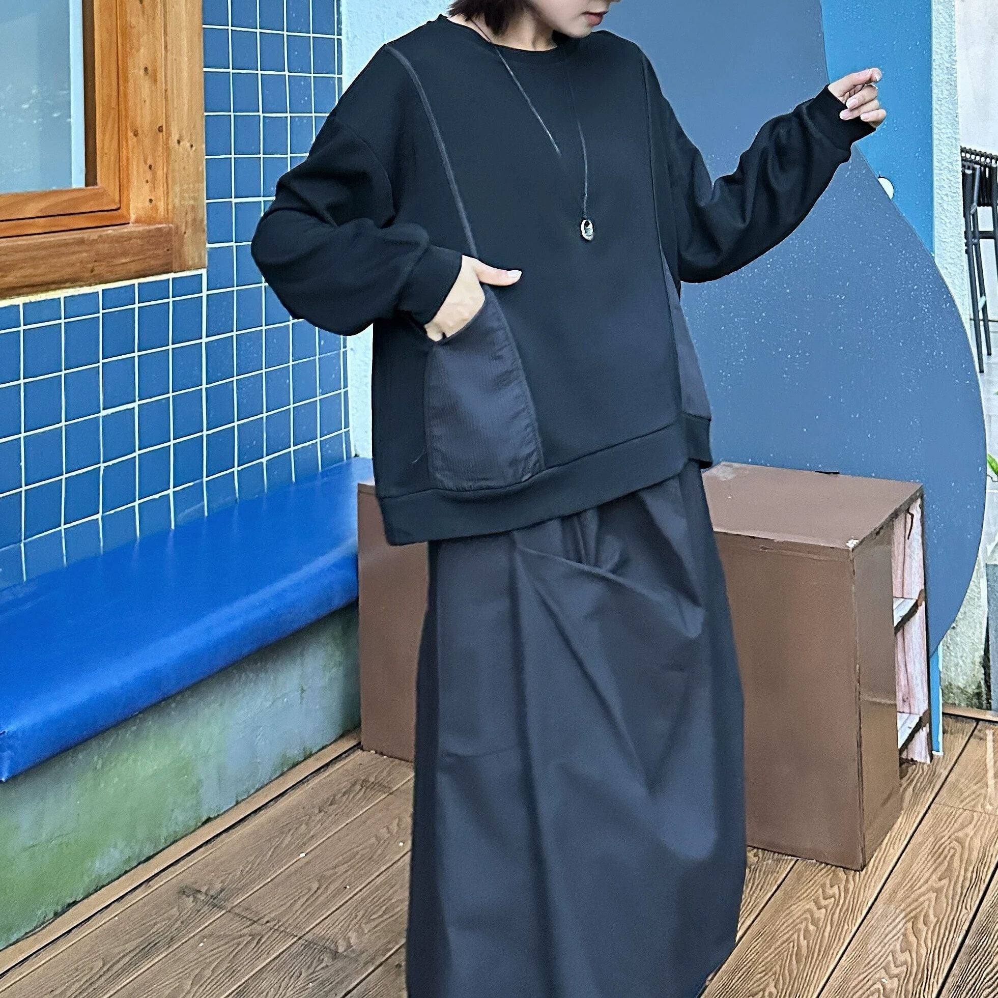 DESIGN POCKET ROUND NECK SWEAT SHIRT 3colors M-16229