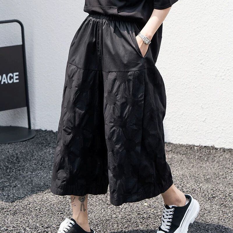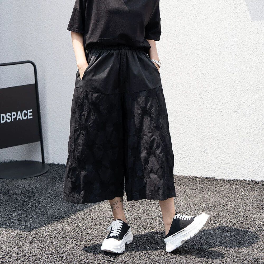 BLACK 3D DOT WIDE LEG CROPPED PANTS 1color M-16246