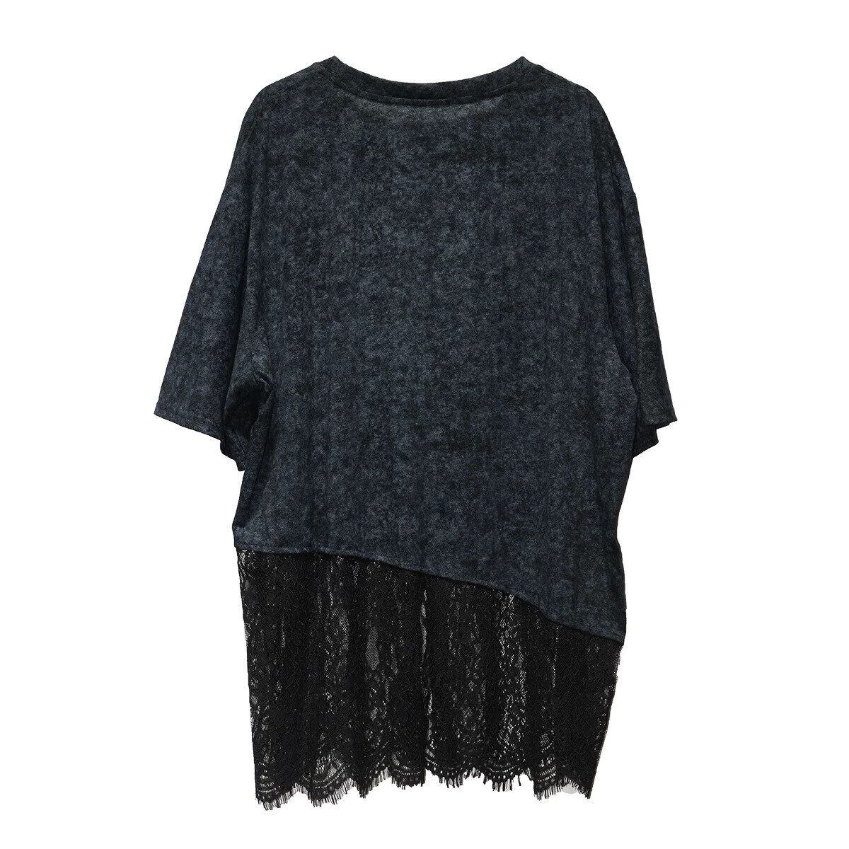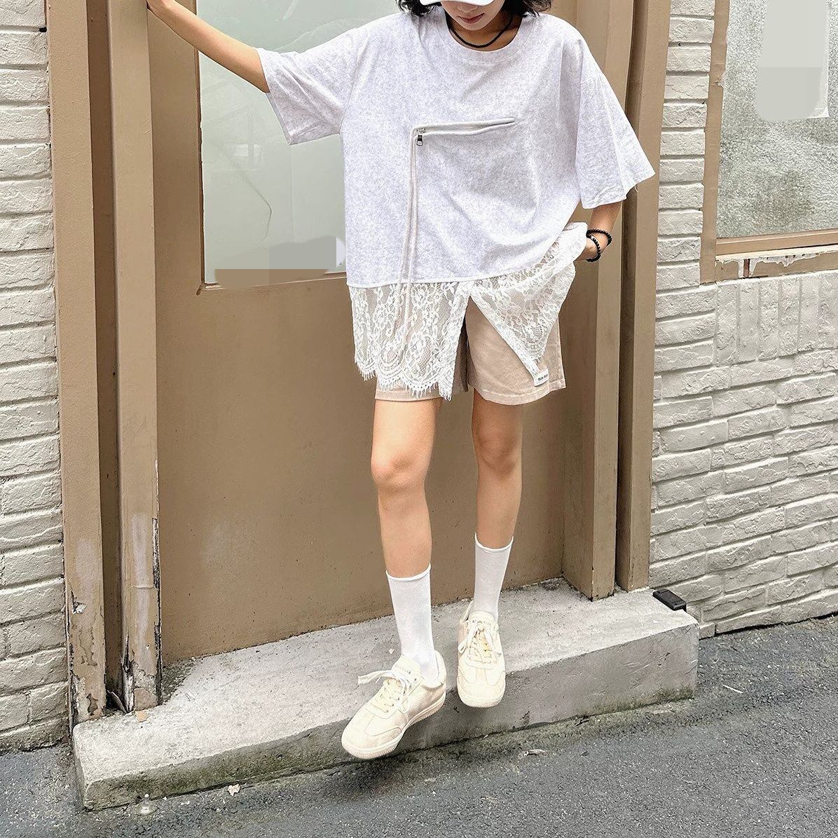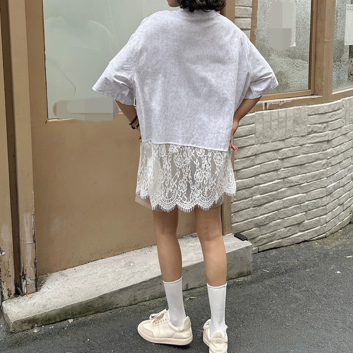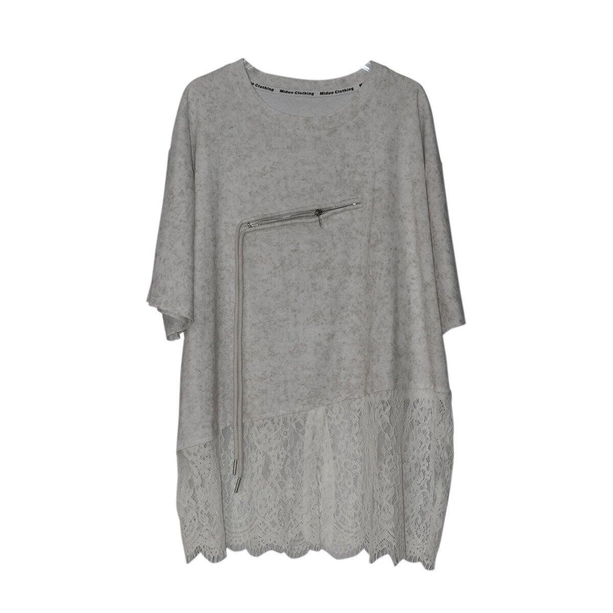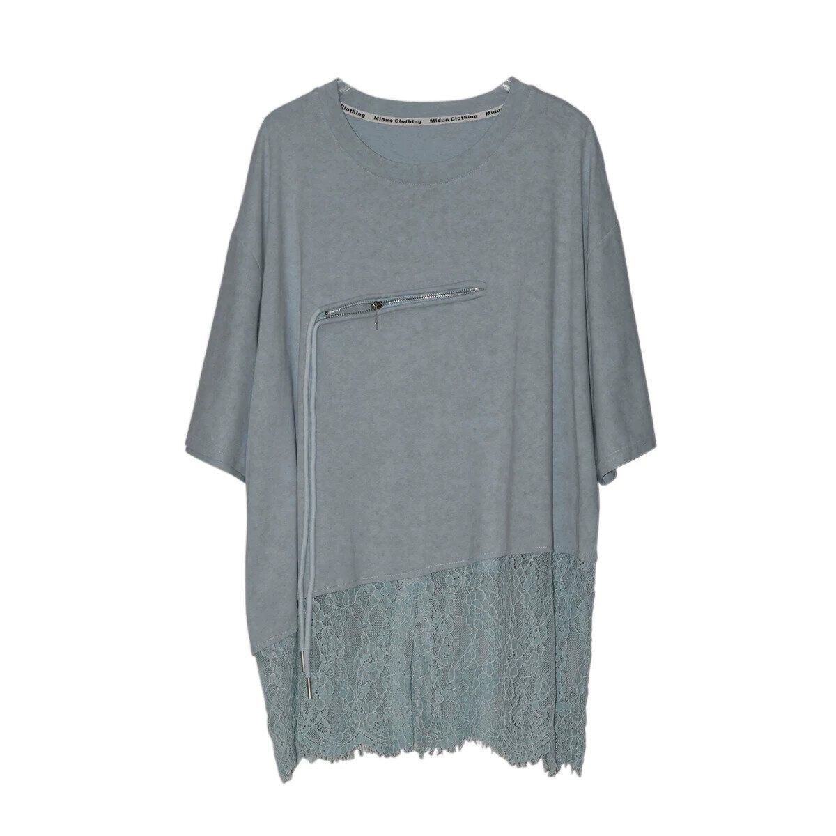 ZIP TRIMMED LACED HEM TUNIC T-SHIRT 3colors M-16247