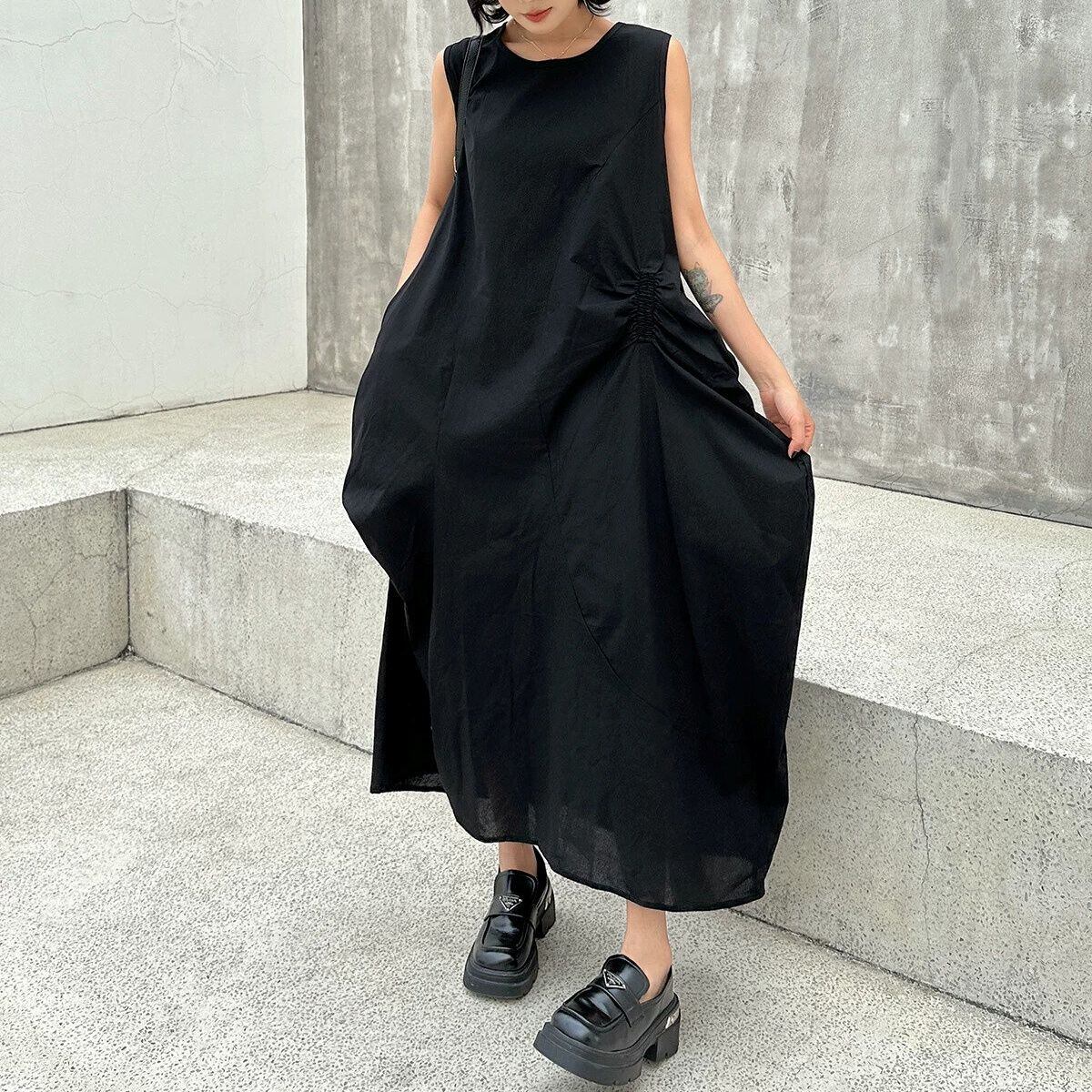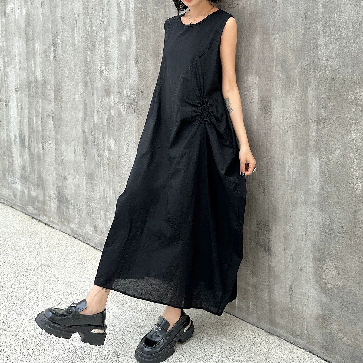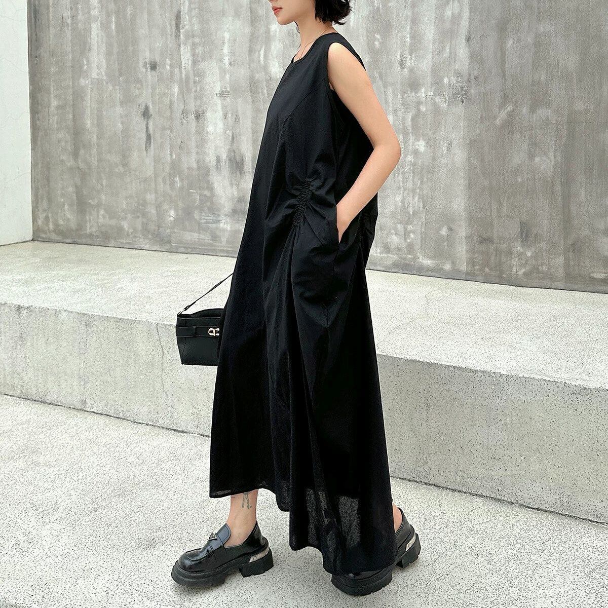 SOLID SLEEVELESS LONG DESIGN PULLOVER DRESS 3colors M-16250