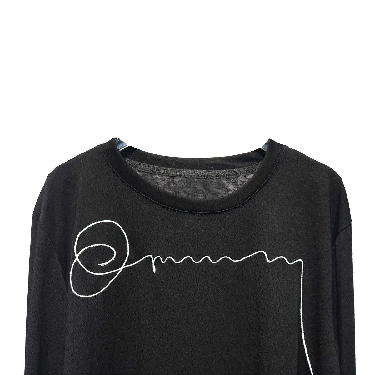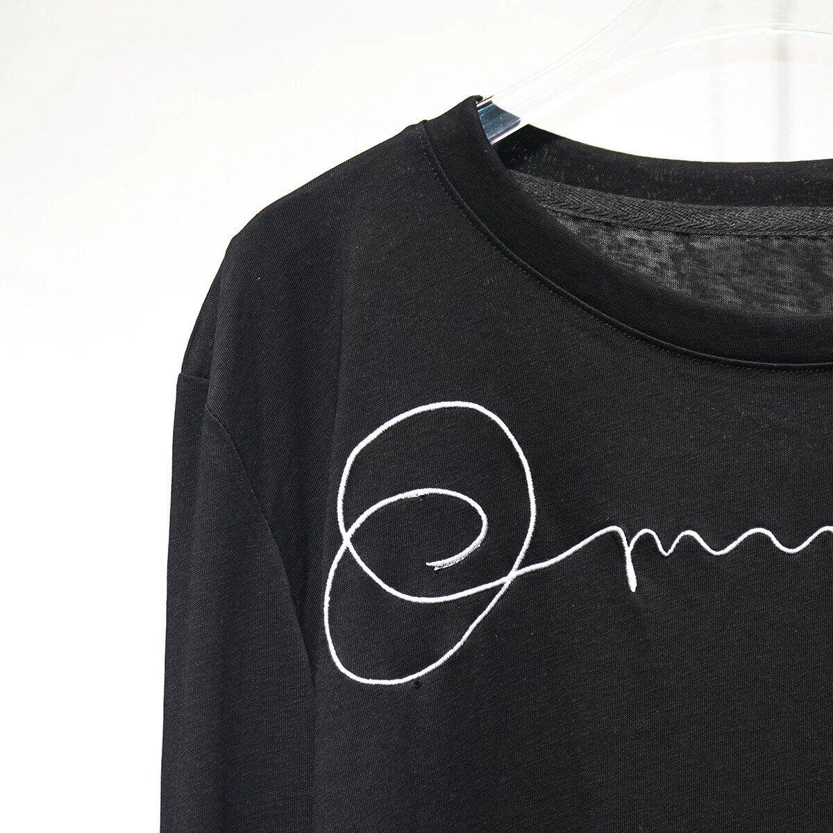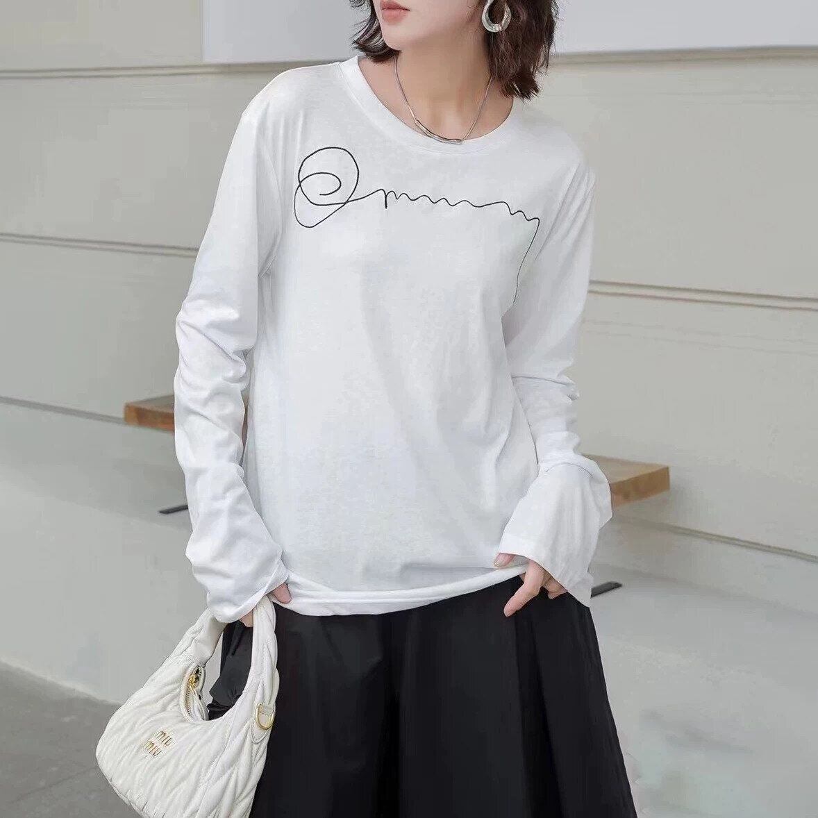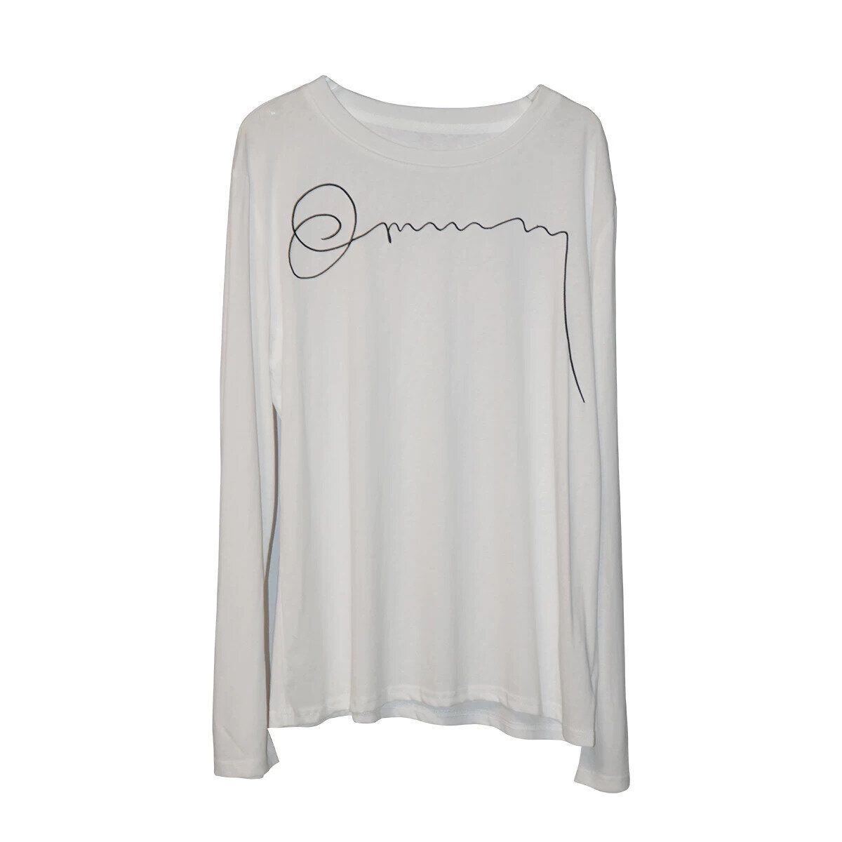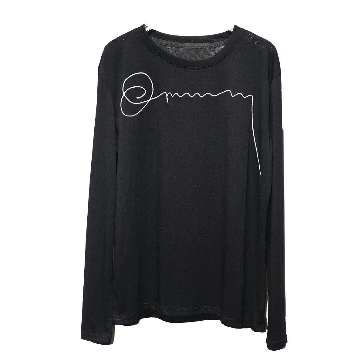 EMBROIDERED ROUND NECK LONG SLEEVES T-SHIRT 2colors M-16259