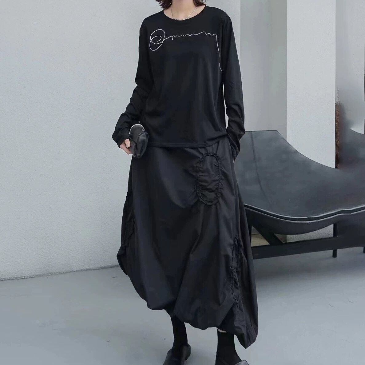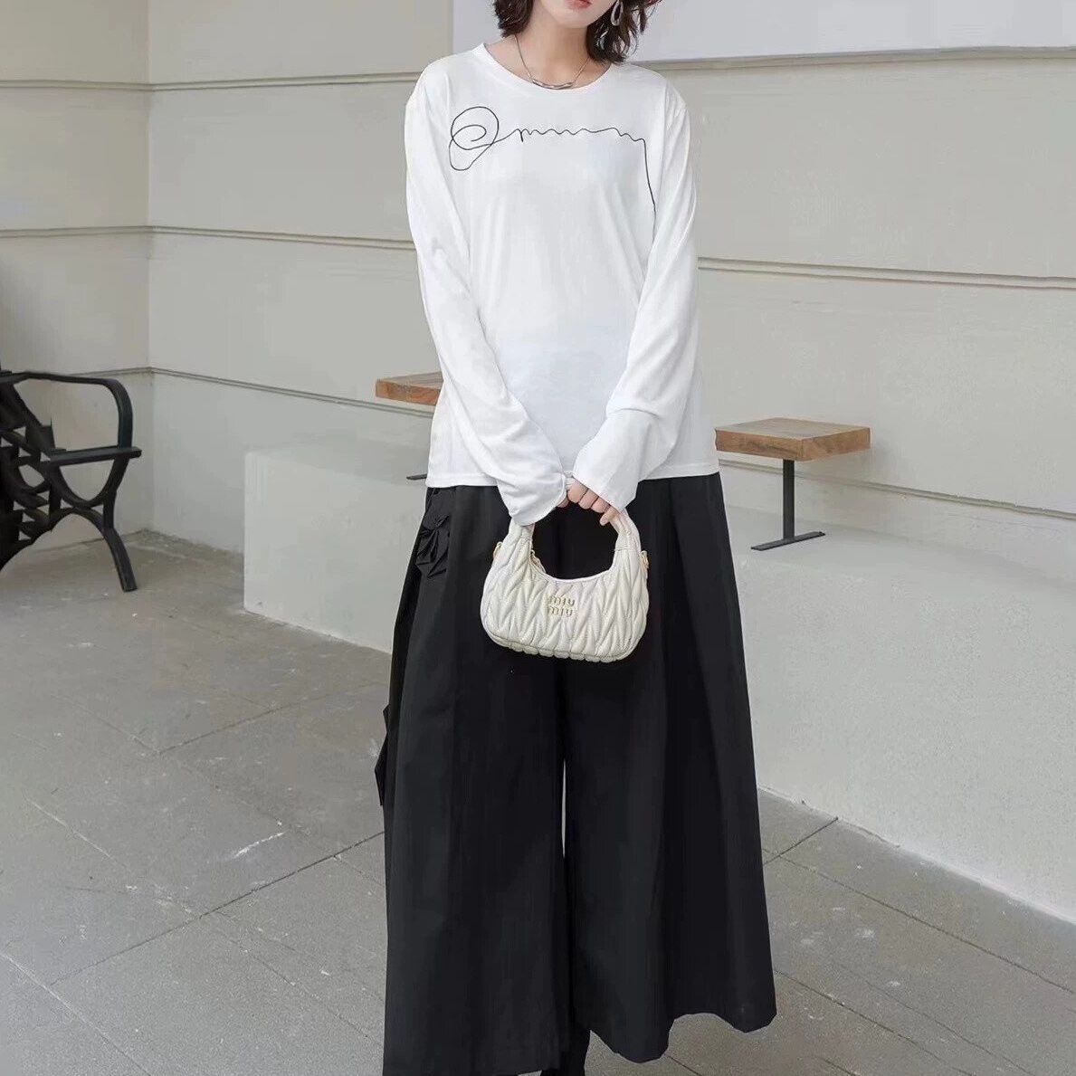 シグネチャーのような刺繍飾りがアクセントになった、ラウンドネックのロングスリーブTシャツです。シンプルなデザインで何にでも合わせやすい、ゆったりとしたシルエットで着心地の良いカジュアルアイテムです。色は2色から選べます。