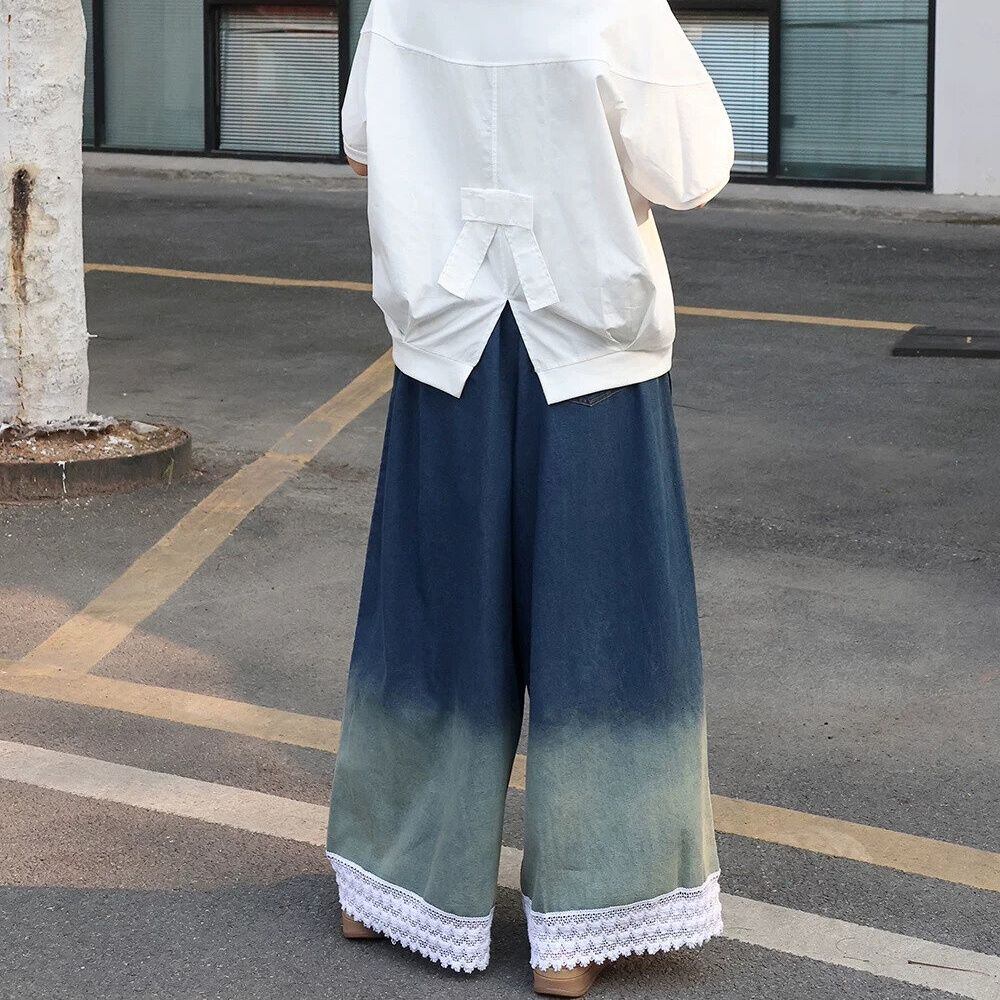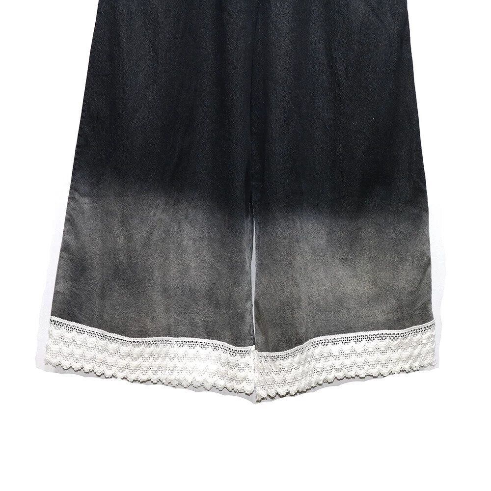 LACED HEM GRADIENT WIDE LEG DENIM PANTS 2colors M-16265