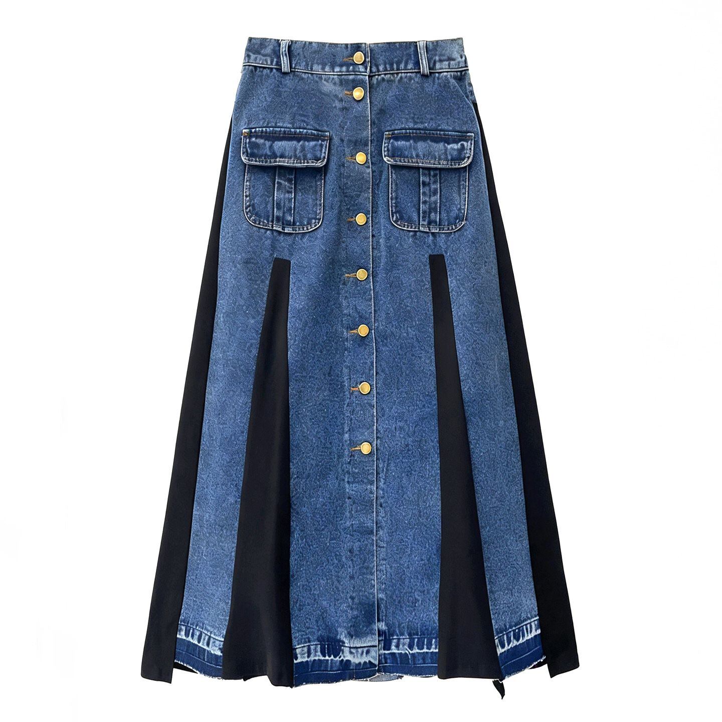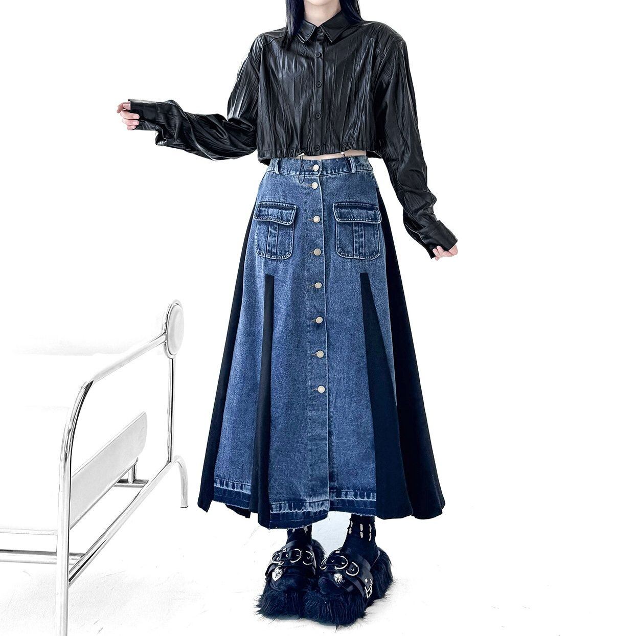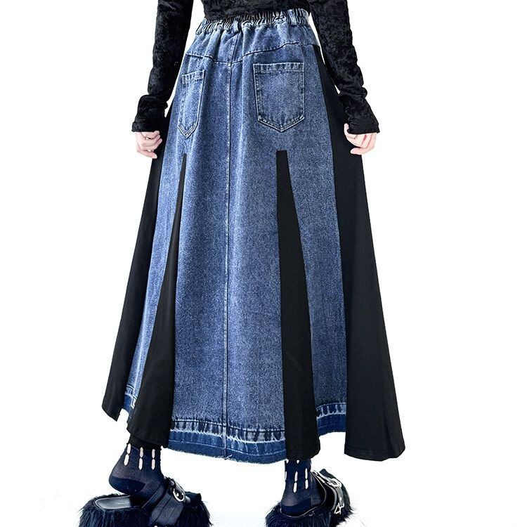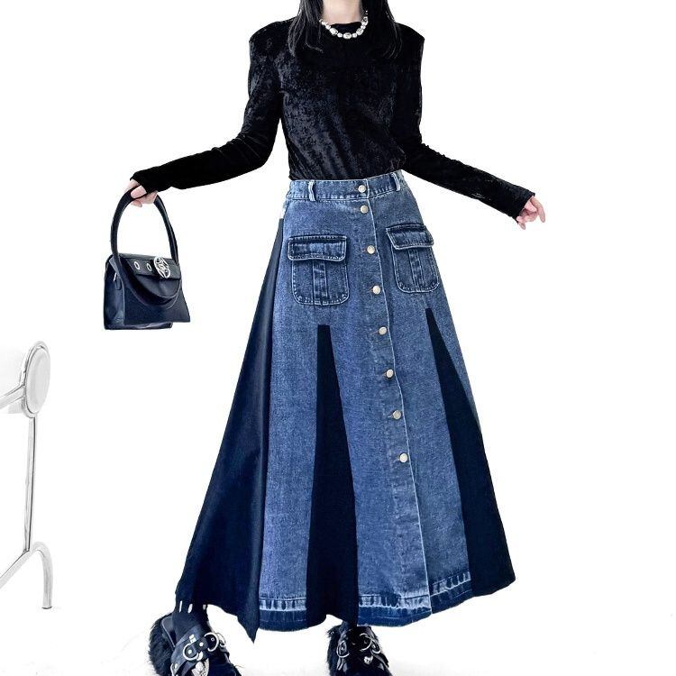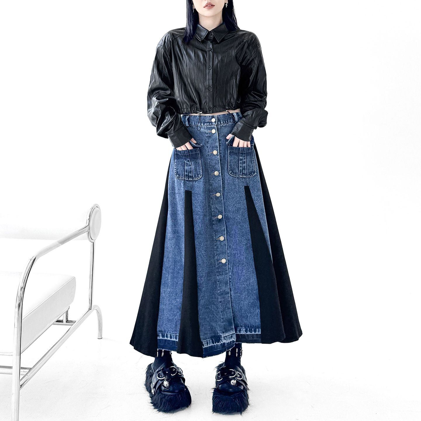 BLACK STITCH A-LINE LONG DENIM SKIRT 1color M-16273