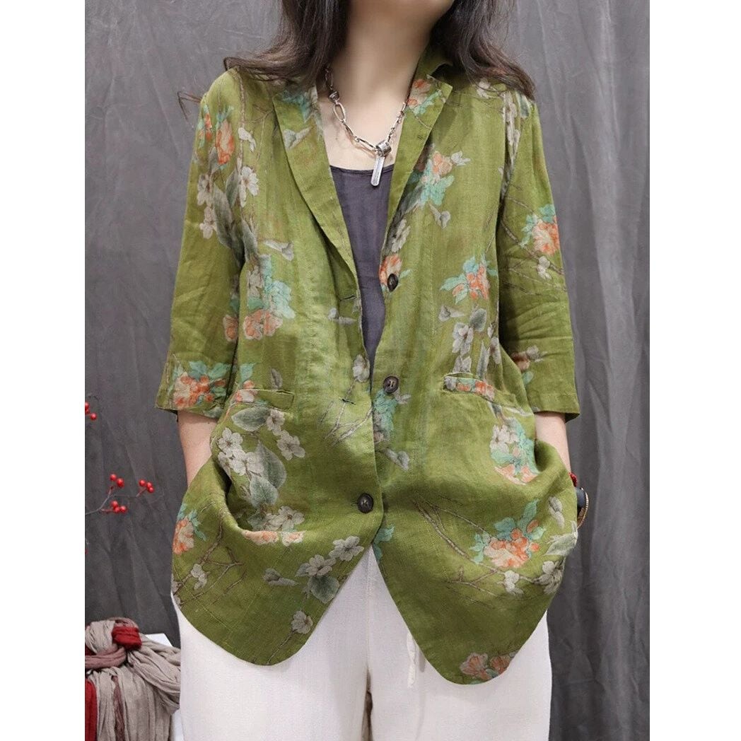 鮮やかな花柄素材が目を惹く、ラペル付きVネック・7分袖・チュニック丈のカジュアルジャケットです。ゆったりとしたシルエットと滑らかな素材が魅力的な、コーディネートの主役になるアイテムです。色は4色から選べます。 SIZE:※測り方によって2-3cmの差が生じる場合がございます。 【M】バスト108cm 肩幅43cm 袖丈37cm 着丈77cm 【L】バスト112cm 肩幅44cm 袖丈38cm 着丈78cm 【XL】バスト116cm 肩幅45cm 袖丈39cm 着丈79cm 【2XL】バスト120cm 肩幅46cm 袖丈40cm 着丈80cm COLOR:Green、RetroBlue、OliveGreen、Cyan 素材:ポリエステル、その他 モデル着用サイズ:L モデル情報:身長161cm 体重49kg STYLE CALENDAR:春〇 夏◎ 秋〇 冬△ お届けについて こちらの商品は海外店舗より直接発送となる為、 ご決済から到着までは、多くの場合【10日-2週間前後】でお届けしております。 ※在庫状況や輸送の混雑により、4週間前後かかる場合がございます。 注意事項 ・商品在庫切れにより注文キャンセルとさせていただく恐れもございますので、予めご了承くださいませ。 ・仕入れ工場を変えることがあるため、記載サイズと若干異なる場合がございます。 ・商品の色味は、お手持ちのスマートフォンの画面によって実物と若干異なる場合がございます。 ・イメージ違いやサイズ交換等、お客さまご都合による交換・返品はご遠慮ください。 送料について 全国一律580円(沖縄県は1,500円) ※10,000円以上のご注文で沖縄県を含む全国送料無料。 お支払い方法について ・クレジットカード決済(VISA/Mastercard/JCB/アメリカン・エクスプレス/ Diners Club) ・Amazon Pay ・PayPay ・コンビニ決済/Pay-easy ※前払いのお支払い方法 ・Pay ID あと払い(コンビニ払い、口座振替) ※あと払いのお支払い方法 ・キャリア決済(d払い/au PAY(auかんたん決済)/ソフトバンク・ワイモバイルまとめて支払い) 管理番号:M-16286