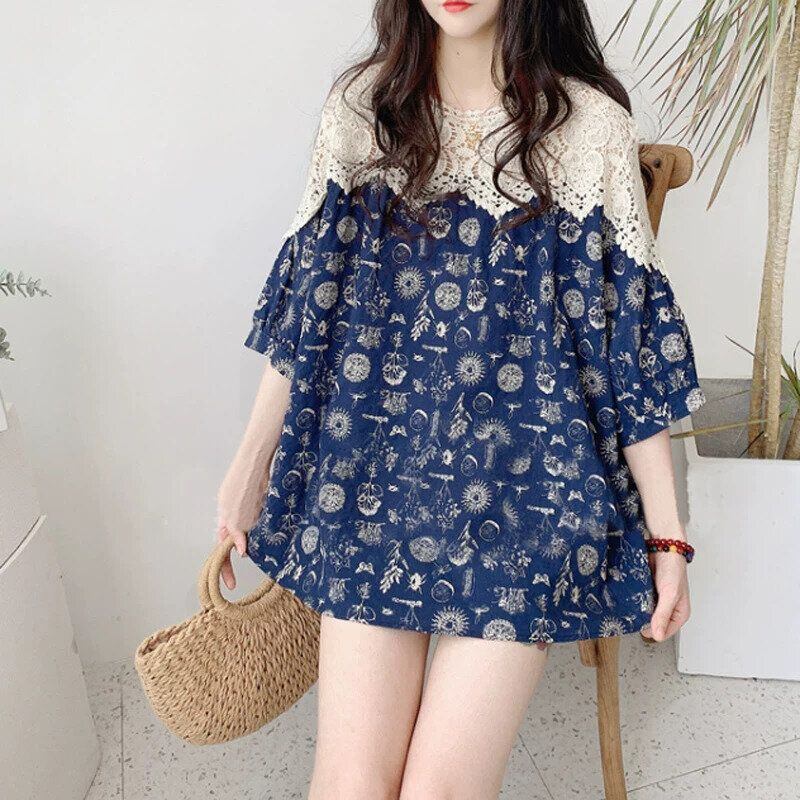 ネックからショルダー部分がカギ網レースでできた、7分袖のプルオーバーシャツです。エスニックなプリント生地とベビードールのようなシルエットが魅力的な、コーディネートの主役になるカジュアルなアイテムです。 SIZE:※測り方によって2-3cmの差が生じる場合がございます。 【M】バスト124cm 裄丈43cm 着丈68cm 【L】バスト128cm 裄丈44cm 着丈69cm 【XL】バスト132cm 裄丈45cm 着丈70cm 【2XL】バスト136cm 裄丈46cm 着丈71cm COLOR:Design 素材:ポリエステル、その他 モデル着用サイズ:L モデル情報:身長161cm 体重49kg STYLE CALENDAR:春◎ 夏◎ 秋〇 冬△ お届けについて こちらの商品は海外店舗より直接発送となる為、 ご決済から到着までは、多くの場合【10日-2週間前後】でお届けしております。 ※在庫状況や輸送の混雑により、4週間前後かかる場合がございます。 注意事項 ・商品在庫切れにより注文キャンセルとさせていただく恐れもございますので、予めご了承くださいませ。 ・仕入れ工場を変えることがあるため、記載サイズと若干異なる場合がございます。 ・商品の色味は、お手持ちのスマートフォンの画面によって実物と若干異なる場合がございます。 ・イメージ違いやサイズ交換等、お客さまご都合による交換・返品はご遠慮ください。 送料について 全国一律580円(沖縄県は1,500円) ※10,000円以上のご注文で沖縄県を含む全国送料無料。 お支払い方法について ・クレジットカード決済(VISA/Mastercard/JCB/アメリカン・エクスプレス/ Diners Club) ・Amazon Pay ・PayPay ・コンビニ決済/Pay-easy ※前払いのお支払い方法 ・Pay ID あと払い(コンビニ払い、口座振替) ※あと払いのお支払い方法 ・キャリア決済(d払い/au PAY(auかんたん決済)/ソフトバンク・ワイモバイルまとめて支払い) 管理番号:M-16289