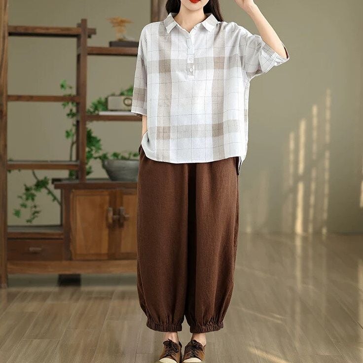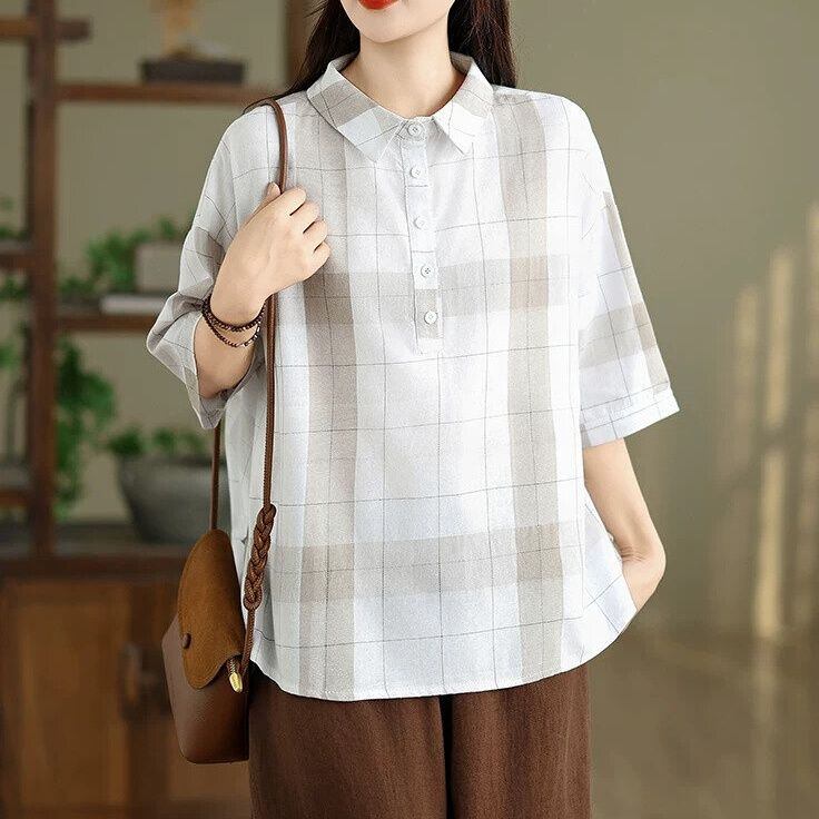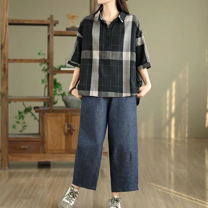レトロなチェック柄素材でできた、ポロ襟・7分袖・プルオーバーシャツです。ハーフボタンのゆったりとしたシルエットで、裾はバックのほうがやや長めになっています。何にでも合わせやすい、着まわし力の高いカジュアルアイテムです。オフホワイトとブラックの2色から選べます。 SIZE:※測り方によって2-3cmの差が生じる場合がございます。 【M】バスト118cm 裄丈38cm 裾周り120cm 着丈70cm 【L】バスト122cm 裄丈39cm 裾周り124cm 着丈71cm 【XL】バスト126cm 裄丈40cm 裾周り128cm 着丈72cm 【2XL】バスト130cm 裄丈41cm 裾周り132cm 着丈73cm COLOR:Off White、Black 素材:ポリエステル、その他 モデル着用サイズ:L モデル情報:身長161cm 体重49kg STYLE CALENDAR:春〇 夏◎ 秋〇 冬△ お届けについて こちらの商品は海外店舗より直接発送となる為、 ご決済から到着までは、多くの場合【10日-2週間前後】でお届けしております。 ※在庫状況や輸送の混雑により、4週間前後かかる場合がございます。 注意事項 ・商品在庫切れにより注文キャンセルとさせていただく恐れもございますので、予めご了承くださいませ。 ・仕入れ工場を変えることがあるため、記載サイズと若干異なる場合がございます。 ・商品の色味は、お手持ちのスマートフォンの画面によって実物と若干異なる場合がございます。 ・イメージ違いやサイズ交換等、お客さまご都合による交換・返品はご遠慮ください。 送料について 全国一律580円(沖縄県は1,500円) ※10,000円以上のご注文で沖縄県を含む全国送料無料。 お支払い方法について ・クレジットカード決済(VISA/Mastercard/JCB/アメリカン・エクスプレス/ Diners Club) ・Amazon Pay ・PayPay ・コンビニ決済/Pay-easy ※前払いのお支払い方法 ・Pay ID あと払い(コンビニ払い、口座振替) ※あと払いのお支払い方法 ・キャリア決済(d払い/au PAY(auかんたん決済)/ソフトバンク・ワイモバイルまとめて支払い) 管理番号:M-16291