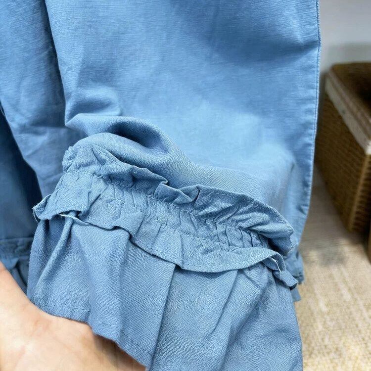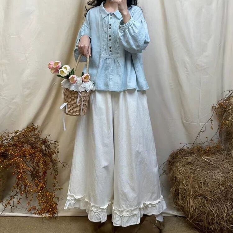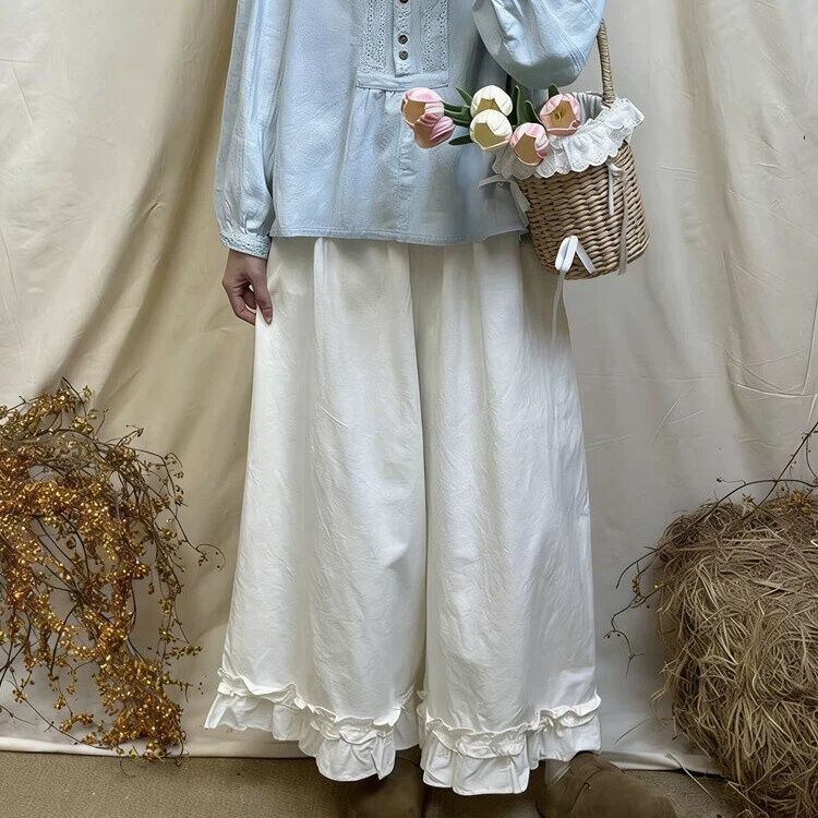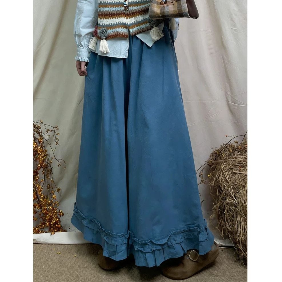 裾のフリルやスカートのようなAラインシルエットがキュートな、ワイドレッグ・カジュアルパンツです。ウエストはゴムなので、着脱が簡単で履き心地が良いです。単色のシンプルなデザインで何にでも合わせやすい、着まわし力の高いアイテムです。色はブルーとホワイトの2色から選べます。 SIZE:※測り方によって2-3cmの差が生じる場合がございます。 【M】ウエスト66-100cm ヒップ114cm 着丈86cm 【L】ウエスト68-104cm ヒップ118cm 着丈87cm 【XL】ウエスト70-108cm ヒップ122cm 着丈88cm 【2XL】ウエスト72-112cm ヒップ126cm 着丈89cm ※ウエストはゴム仕様のため伸縮性がございます。 COLOR:Blue、White 素材:ポリエステル、その他 モデル着用サイズ:L モデル情報:身長161cm 体重49kg STYLE CALENDAR:春◎ 夏◎ 秋〇 冬△ お届けについて こちらの商品は海外店舗より直接発送となる為、 ご決済から到着までは、多くの場合【10日-2週間前後】でお届けしております。 ※在庫状況や輸送の混雑により、4週間前後かかる場合がございます。 注意事項 ・商品在庫切れにより注文キャンセルとさせていただく恐れもございますので、予めご了承くださいませ。 ・仕入れ工場を変えることがあるため、記載サイズと若干異なる場合がございます。 ・商品の色味は、お手持ちのスマートフォンの画面によって実物と若干異なる場合がございます。 ・イメージ違いやサイズ交換等、お客さまご都合による交換・返品はご遠慮ください。 送料について 全国一律580円(沖縄県は1,500円) ※10,000円以上のご注文で沖縄県を含む全国送料無料。 お支払い方法について ・クレジットカード決済(VISA/Mastercard/JCB/アメリカン・エクスプレス/ Diners Club) ・Amazon Pay ・PayPay ・コンビニ決済/Pay-easy ※前払いのお支払い方法 ・Pay ID あと払い(コンビニ払い、口座振替) ※あと払いのお支払い方法 ・キャリア決済(d払い/au PAY(auかんたん決済)/ソフトバンク・ワイモバイルまとめて支払い) 管理番号:M-16294