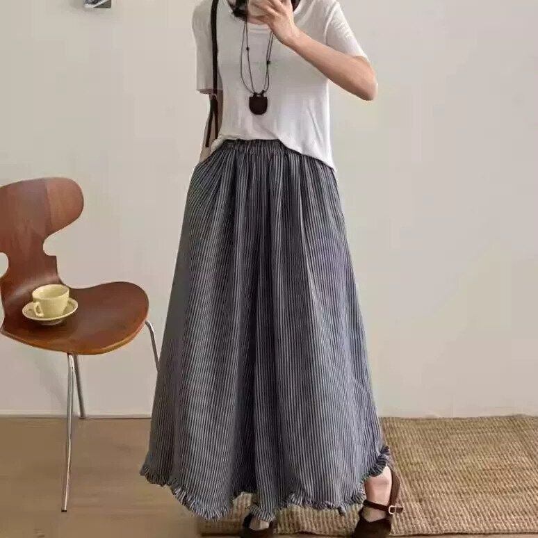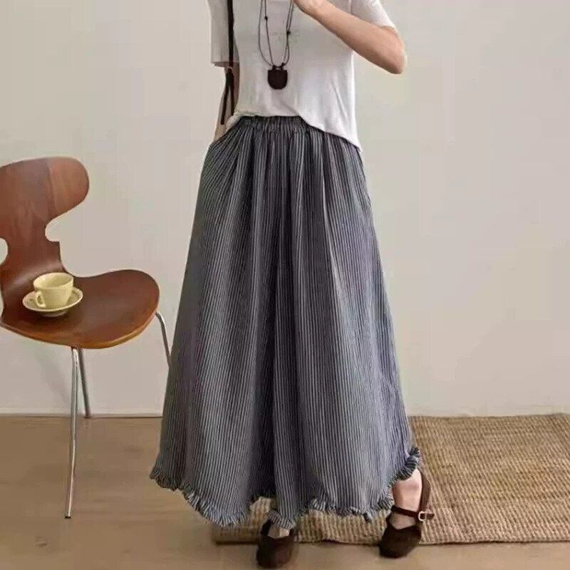 グレーとブラックのストライプ素材でできた、ワイドレッグ・カジュアルパンツです。ウエストはゴムなので、着脱が簡単で履き心地が良いです。スカートのようなAラインにフリルの裾がキュートな、コーディネートしやすいアイテムです。 SIZE:※測り方によって2-3cmの差が生じる場合がございます。 【M】ウエスト62-86cm ヒップ116cm 着丈83cm 【L】ウエスト64-88cm ヒップ120cm 着丈84cm 【XL】ウエスト66-90cm ヒップ124cm 着丈85cm 【2XL】ウエスト68-92cm ヒップ128cm 着丈86cm ※ウエストはゴム仕様のため伸縮性がございます。 COLOR:Stripe 素材:ポリエステル、その他 モデル着用サイズ:L モデル情報:身長161cm 体重49kg STYLE CALENDAR:春◎ 夏〇 秋〇 冬〇 お届けについて こちらの商品は海外店舗より直接発送となる為、 ご決済から到着までは、多くの場合【10日-2週間前後】でお届けしております。 ※在庫状況や輸送の混雑により、4週間前後かかる場合がございます。 注意事項 ・商品在庫切れにより注文キャンセルとさせていただく恐れもございますので、予めご了承くださいませ。 ・仕入れ工場を変えることがあるため、記載サイズと若干異なる場合がございます。 ・商品の色味は、お手持ちのスマートフォンの画面によって実物と若干異なる場合がございます。 ・イメージ違いやサイズ交換等、お客さまご都合による交換・返品はご遠慮ください。 送料について 全国一律580円(沖縄県は1,500円) ※10,000円以上のご注文で沖縄県を含む全国送料無料。 お支払い方法について ・クレジットカード決済(VISA/Mastercard/JCB/アメリカン・エクスプレス/ Diners Club) ・Amazon Pay ・PayPay ・コンビニ決済/Pay-easy ※前払いのお支払い方法 ・Pay ID あと払い(コンビニ払い、口座振替) ※あと払いのお支払い方法 ・キャリア決済(d払い/au PAY(auかんたん決済)/ソフトバンク・ワイモバイルまとめて支払い) 管理番号:M-16295